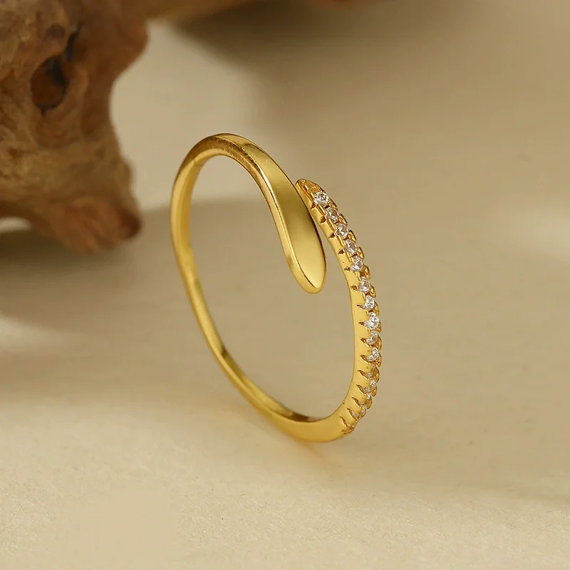 Wholesale Fashion 18K Gold Plated Cubic Zirconia Snake Ring 925 Sterling Silver Rings for Women