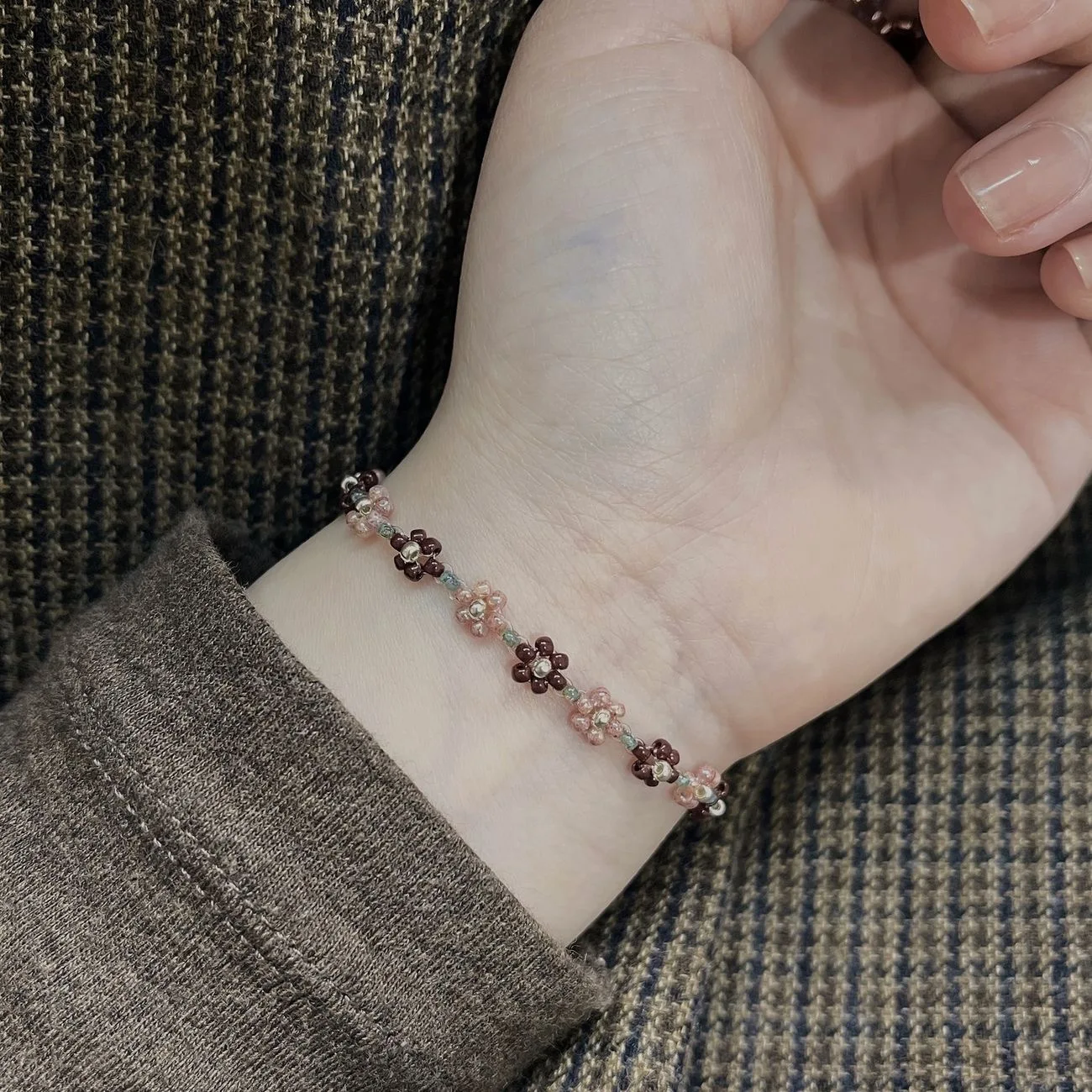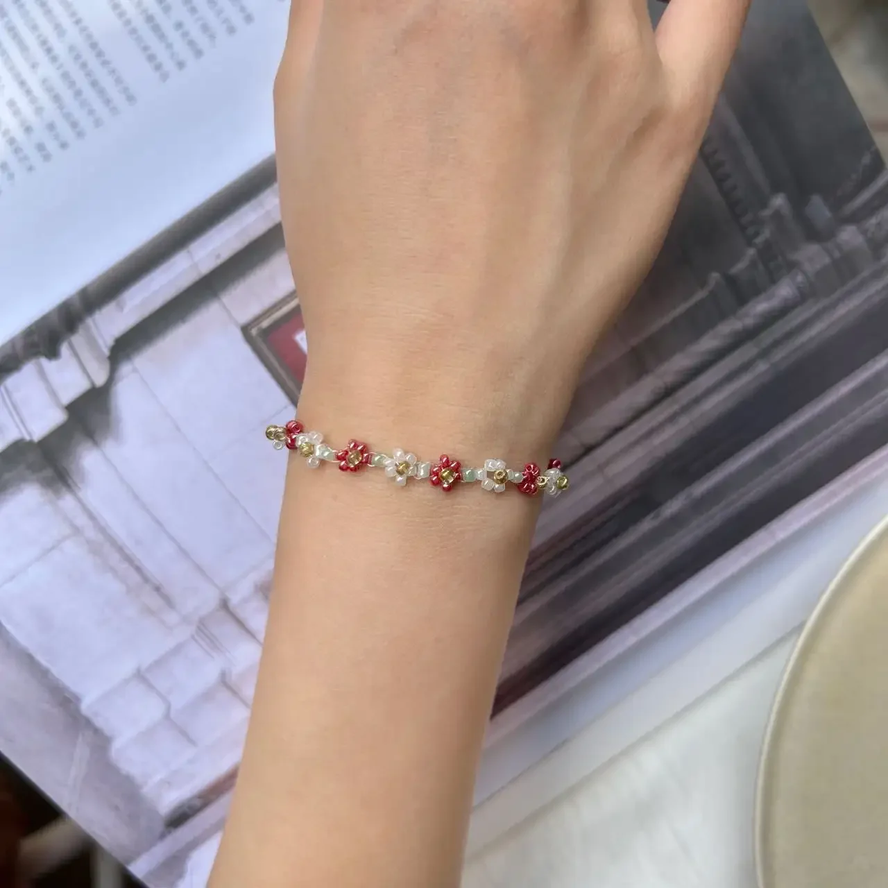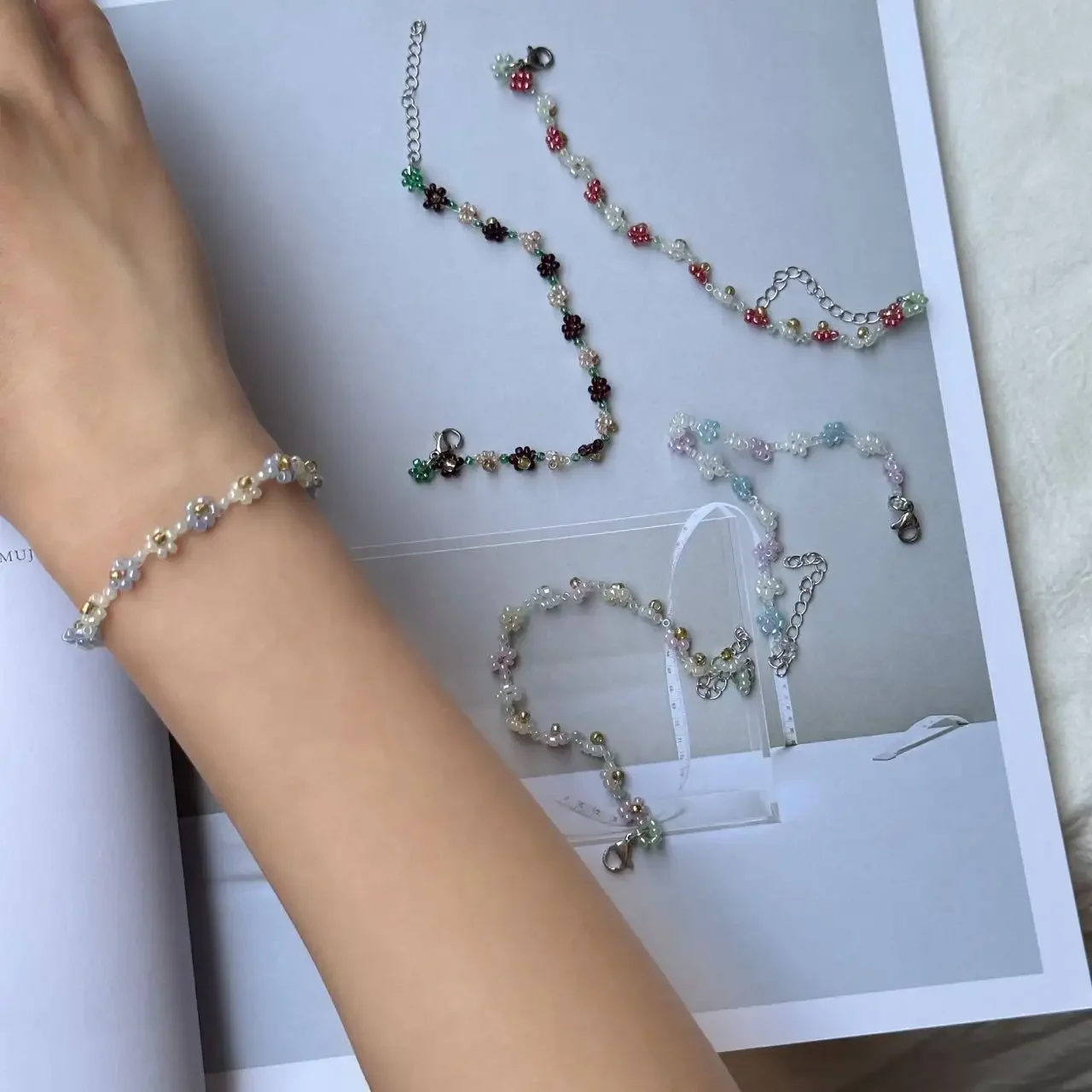 INS Colorful Small Flowers Rice Beads Bracelet Sweet Creative Handmade Bracelets High Quality Adjustable Bracelets for Women