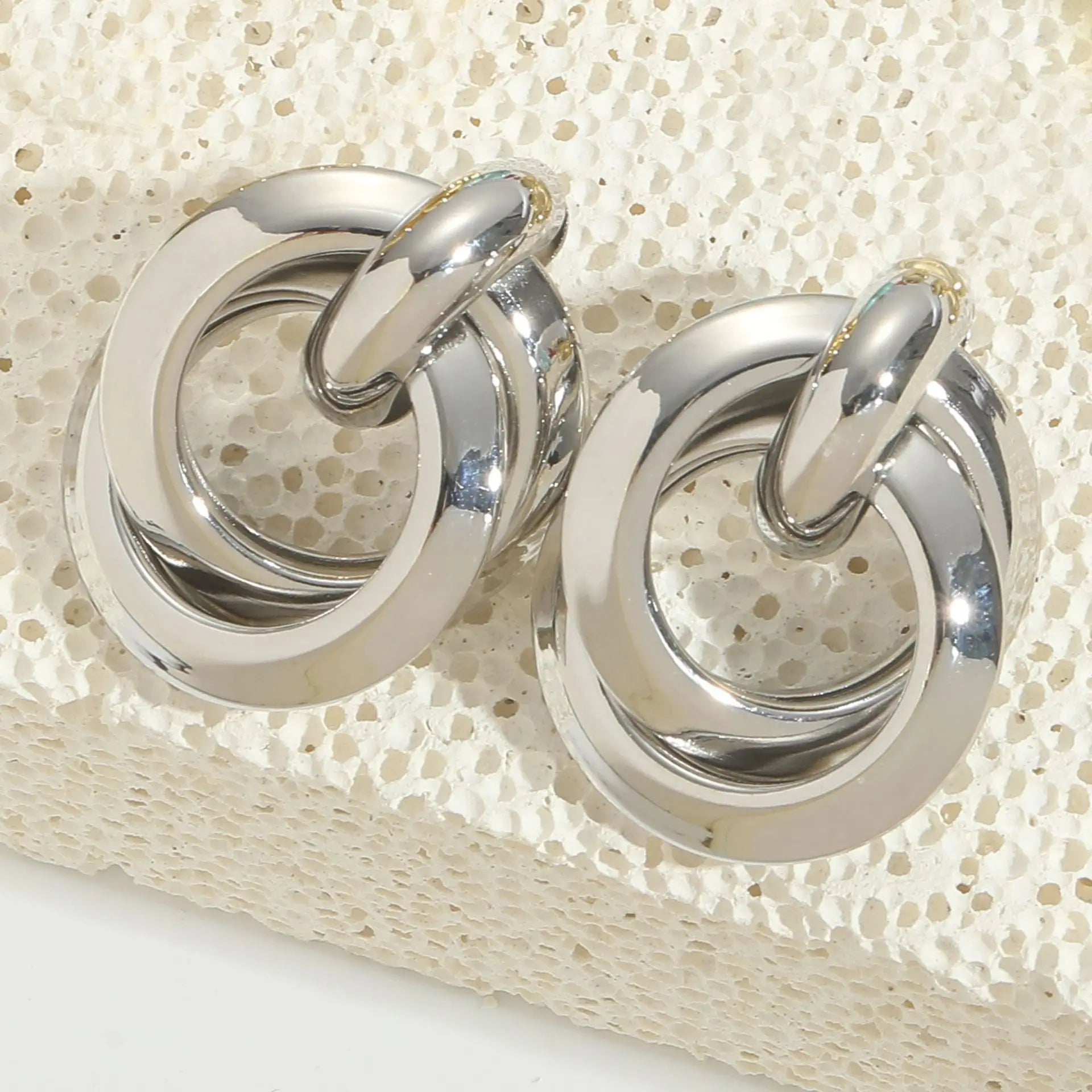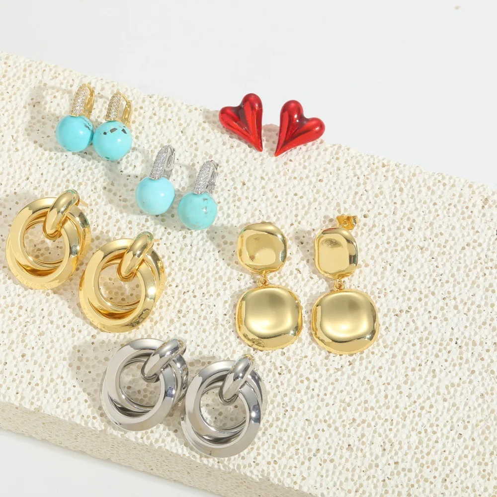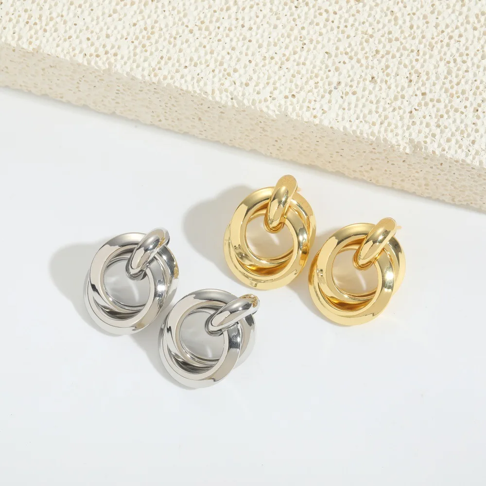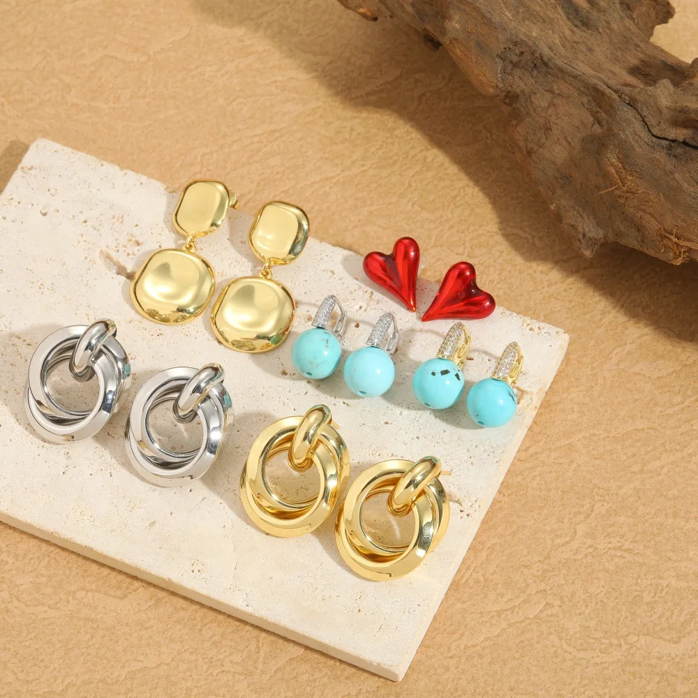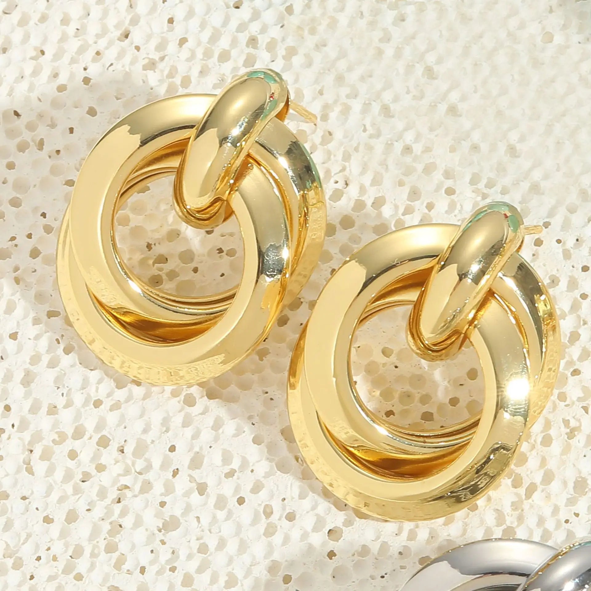 Vintage Double-Tone Geometric Gold Hoop Earrings Copper for Women Zircon Stone Classic Style for Daily Wear and Gifts