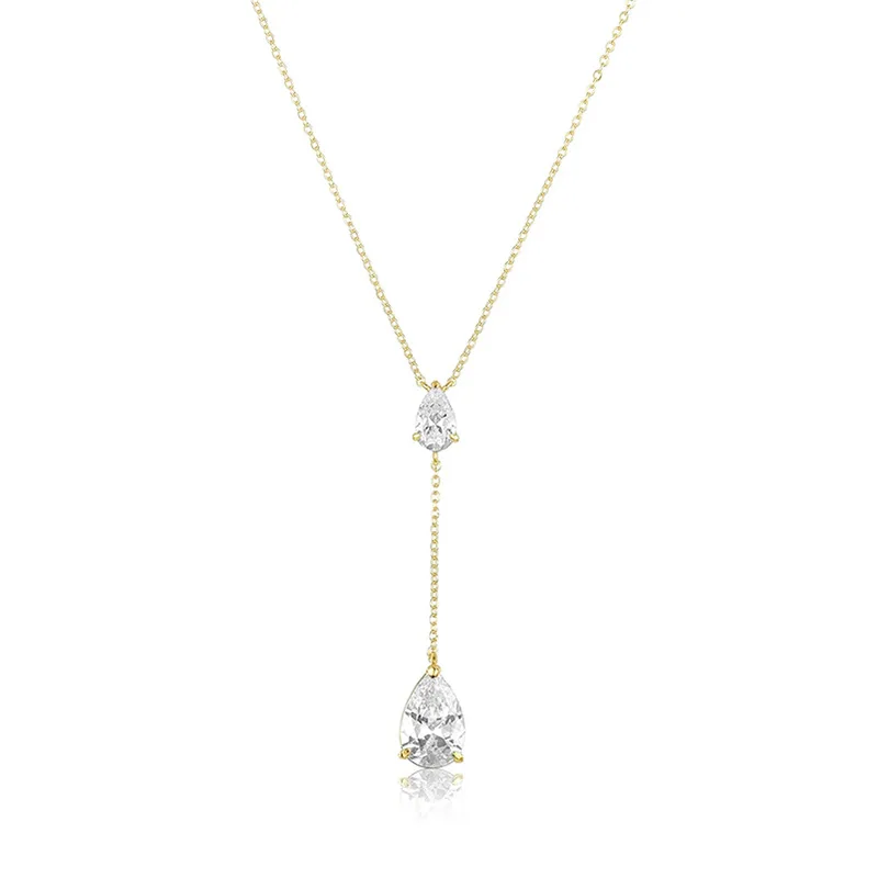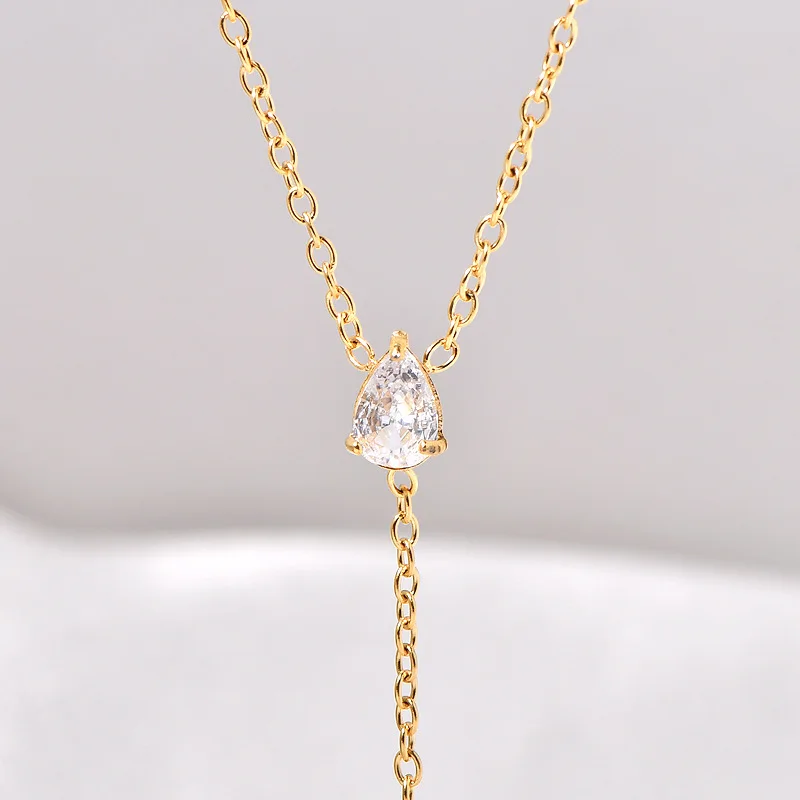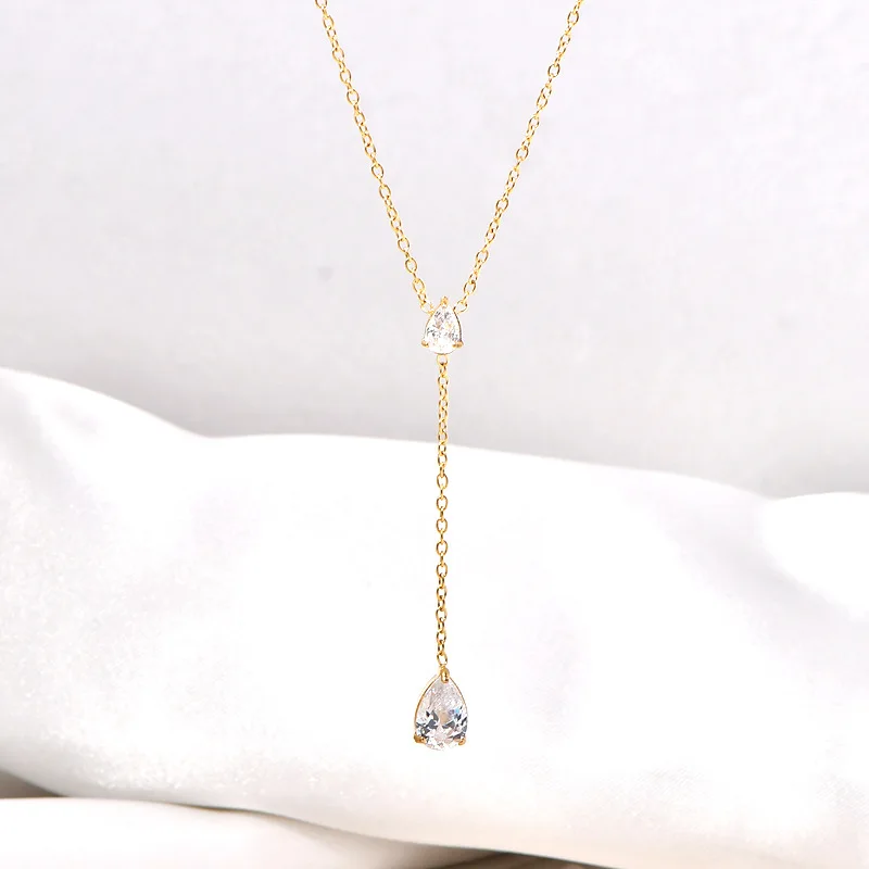 Wholesale Fine Jewelry 925 Silver Gold Plated Zircon Y-Necklace Dainty Custom Tear Drop Necklace for Women