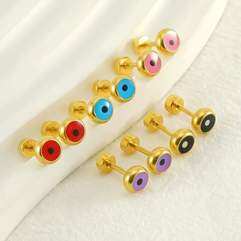 Ins Style 2025 18K Gold Plated Colorful Turkish Stud Earrings for Women's Party