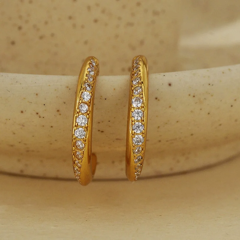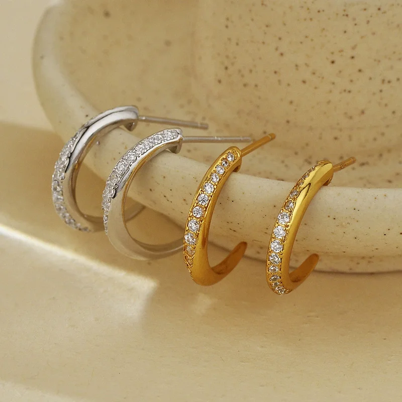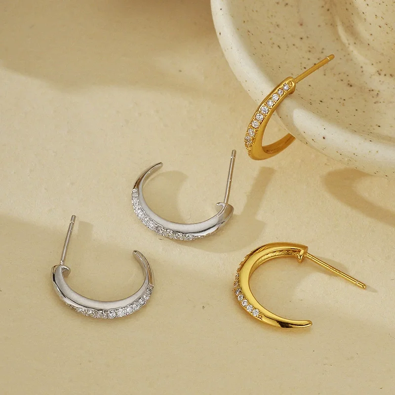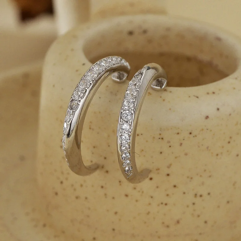 Minimalist C Shaped Hoop Earrings Sterling Silver Zircon Jewelry for Women Modern Daily Wear Office Earrings