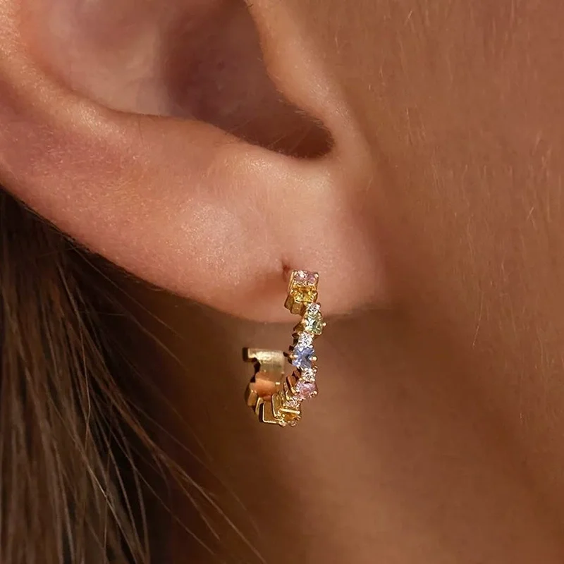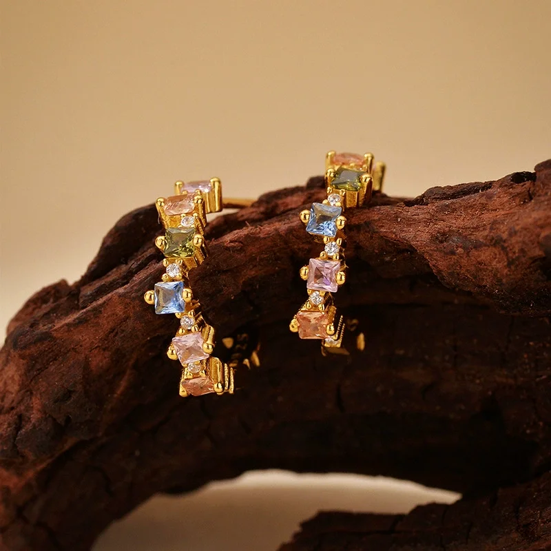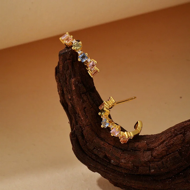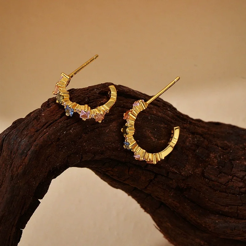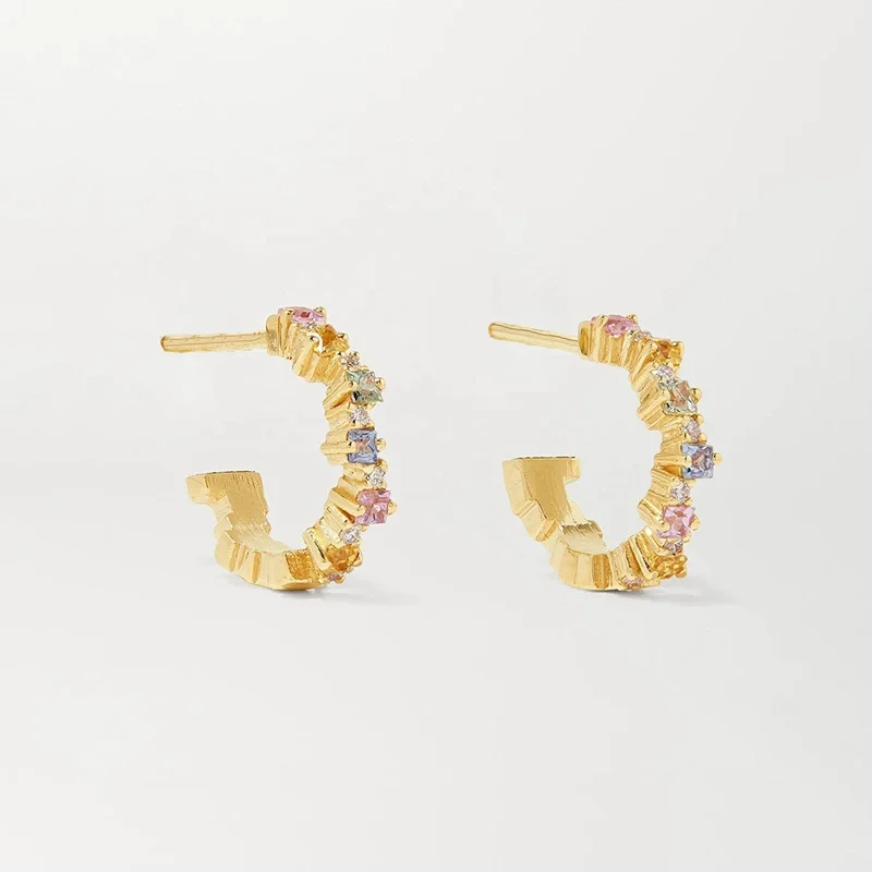 Blossom CS Luxury Gold Plated 925 Silver Wedding EarringsIrregular Colored Zircon Thick Hoop Studs