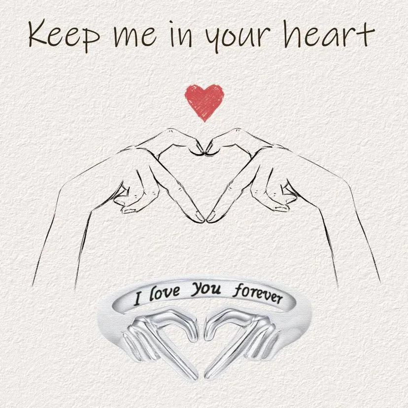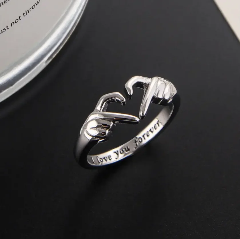 Couple'S Hand to Heart Shape Silver Hug Ring Creative Open Adjustable Couple I Love You Forever Ring for Women Men