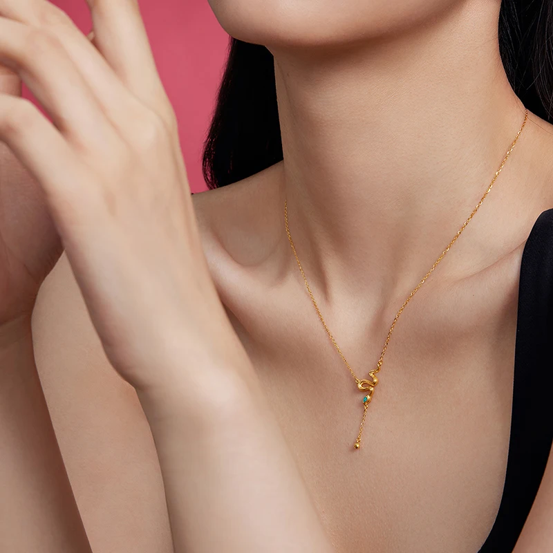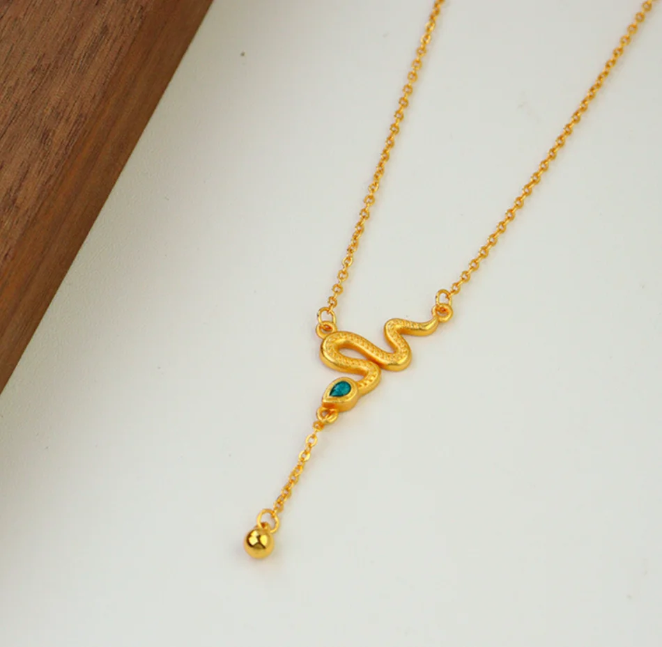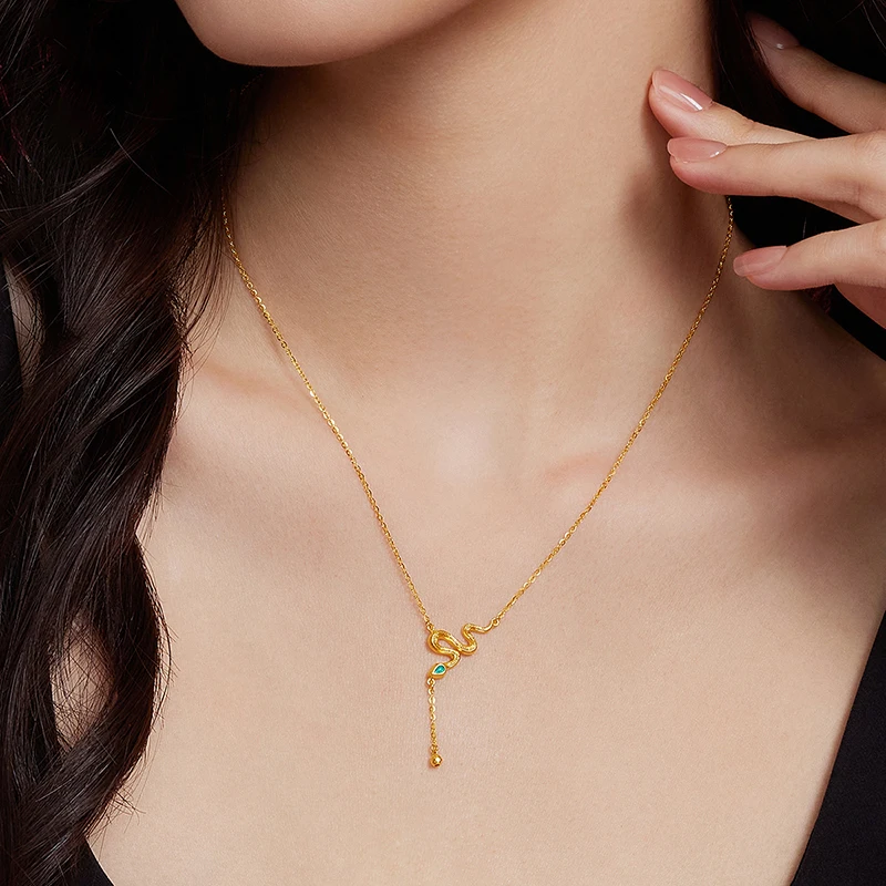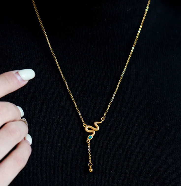 Luxury Fashion Gold Spirit Snake Pendant Niche Copper Plated Animal Ladies Necklace for New Year Gift