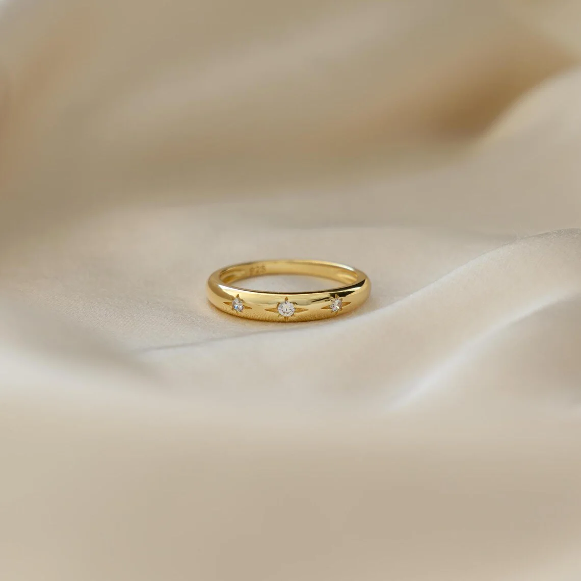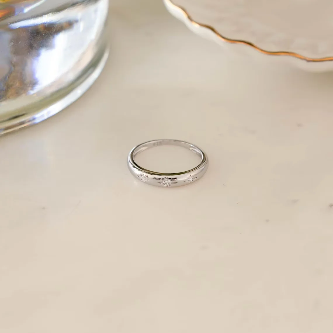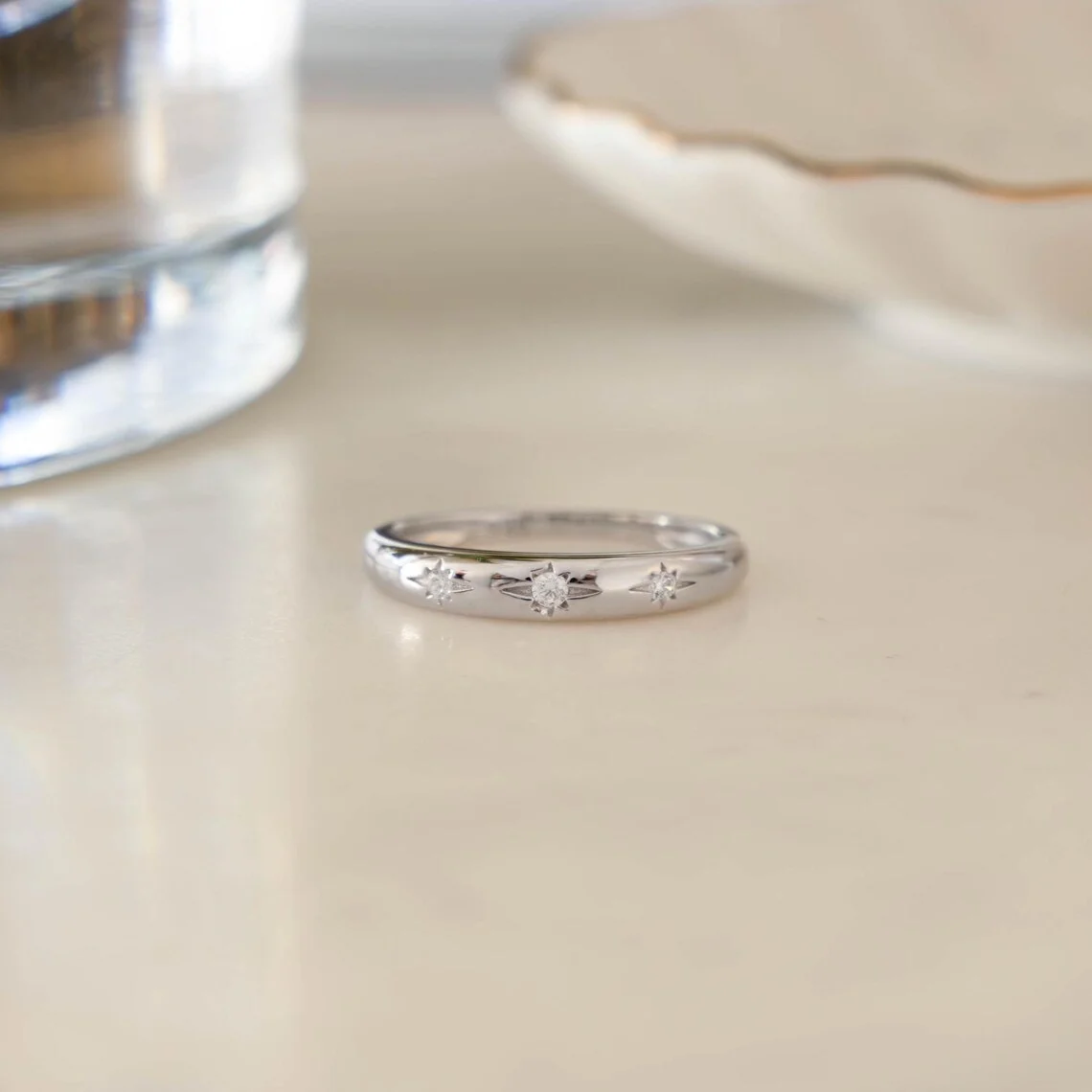 Vintage Thin Starburst Diamond Ring Womens Jewelry Silver Star Setting Chunky Ring Fashion Minimalist Jewelry