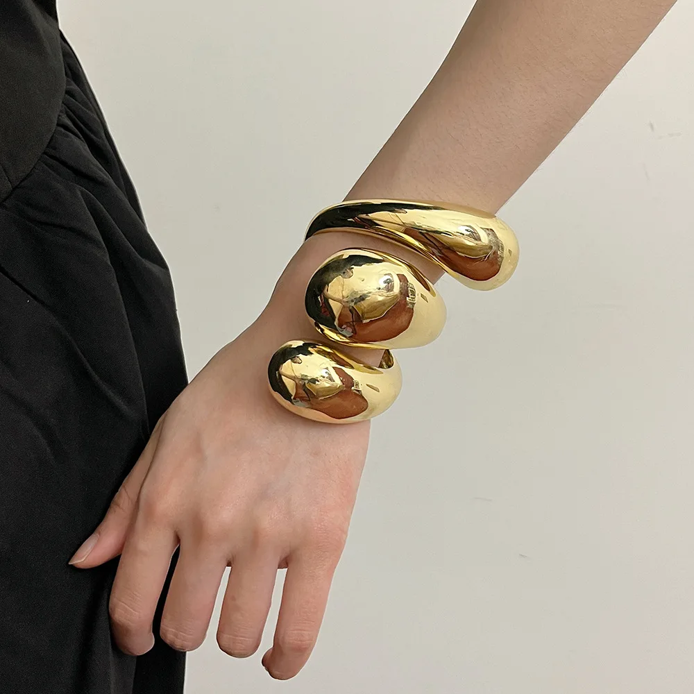 New Hot Fashion 18k Gold Spiral Teardrop Punk Style Open Cuff Bracelets for Women Trendy Bangles