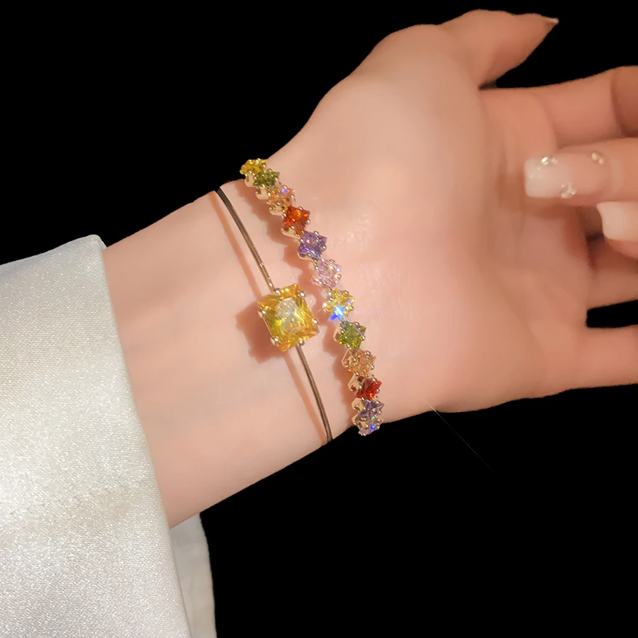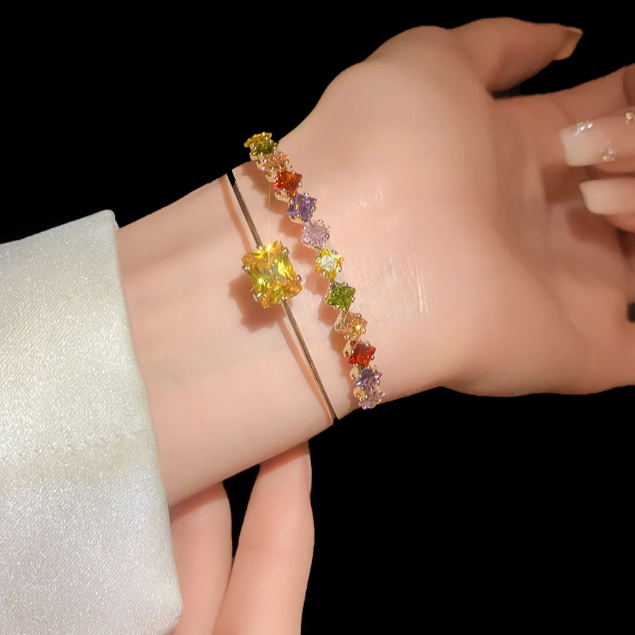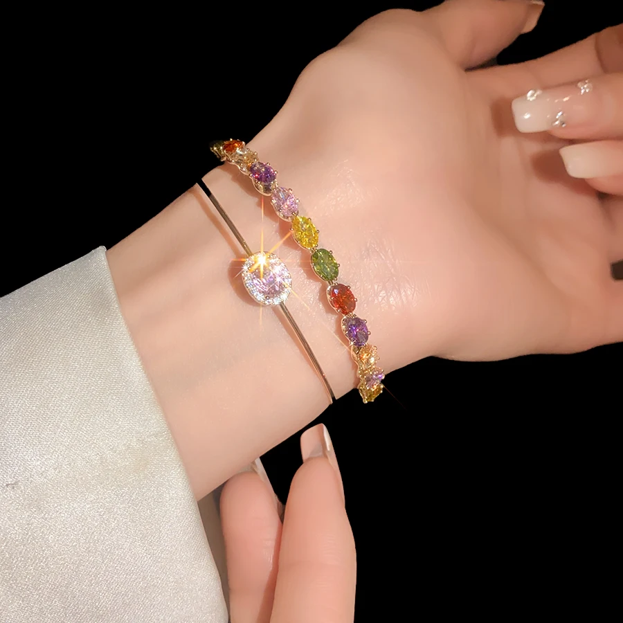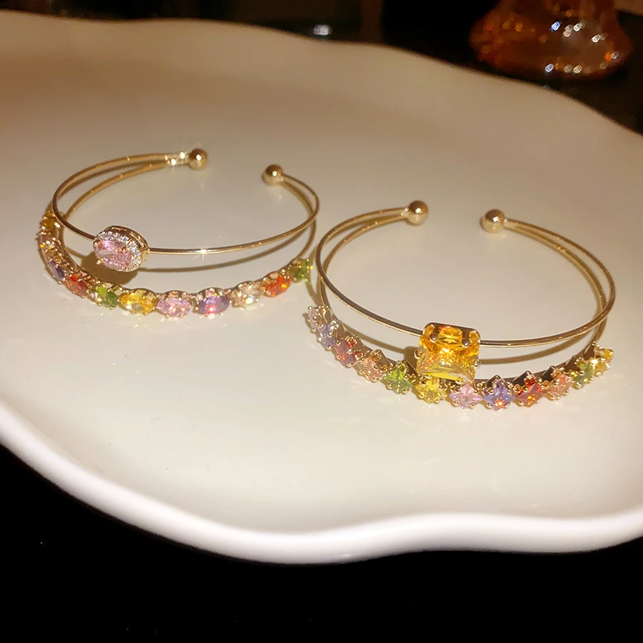 Trendy 18k Gold Plated Open Bracelet Colored Double Layer Zircon Charm Bracelet for Women Gift