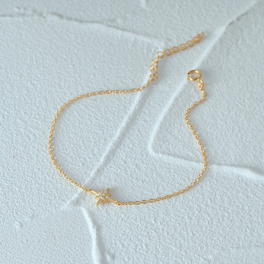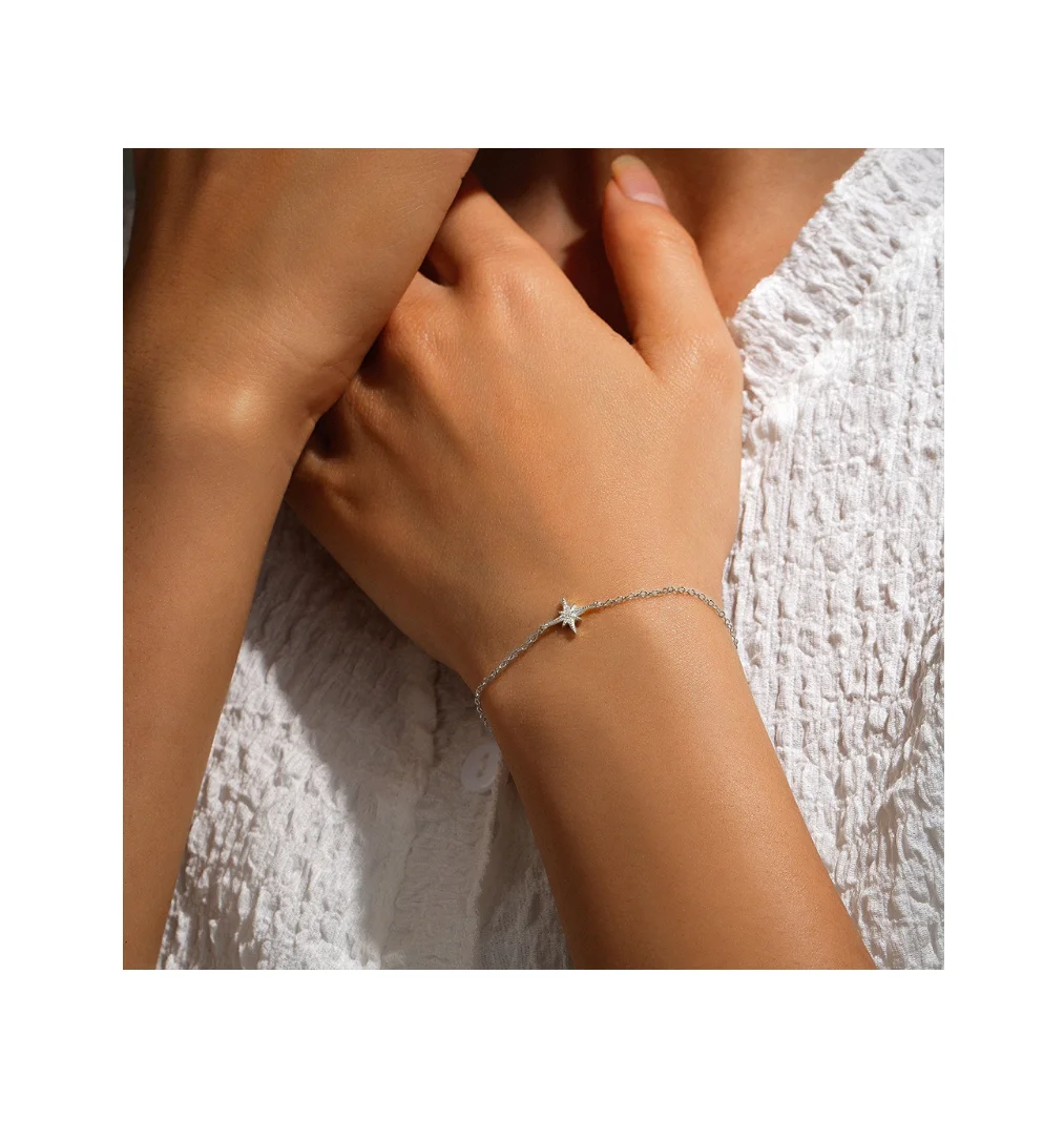 Hot Selling Sterling Silver Octagonal Star Zircon Bracelet Dainty Fashion Charm Star Bracelet for Women