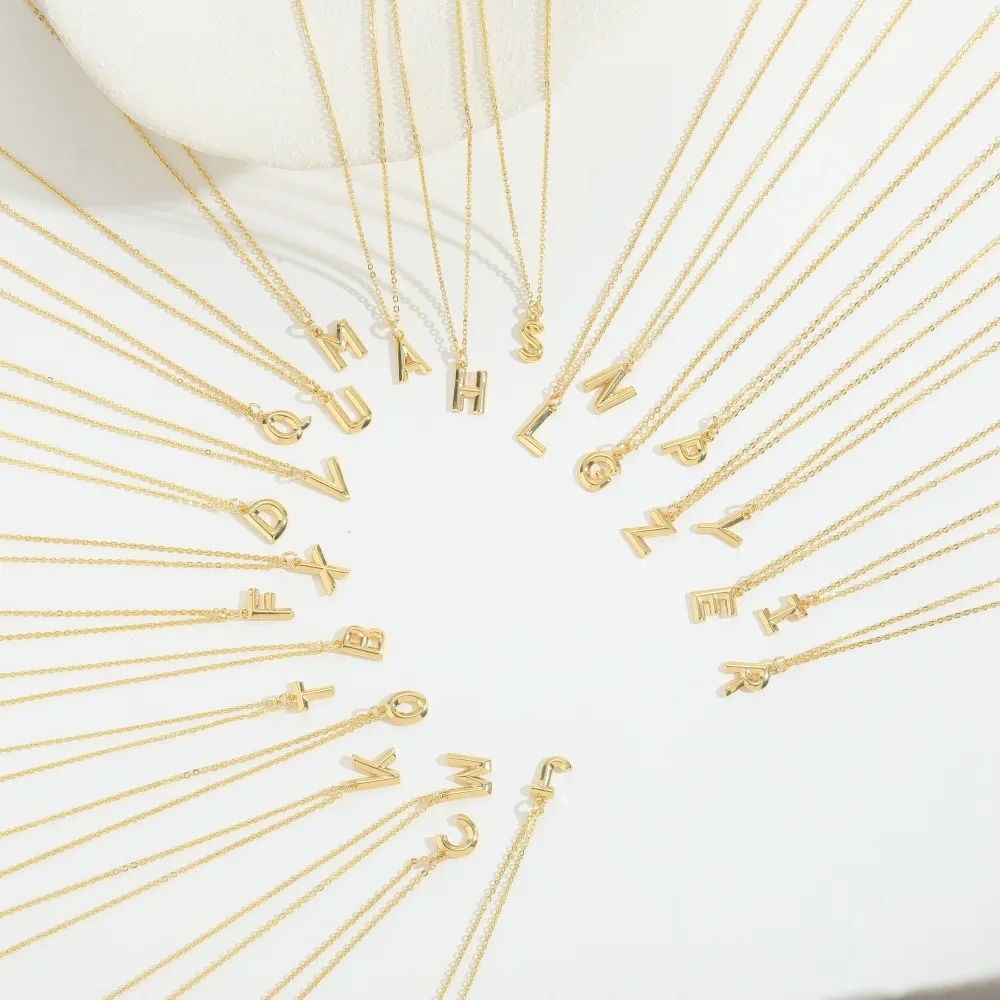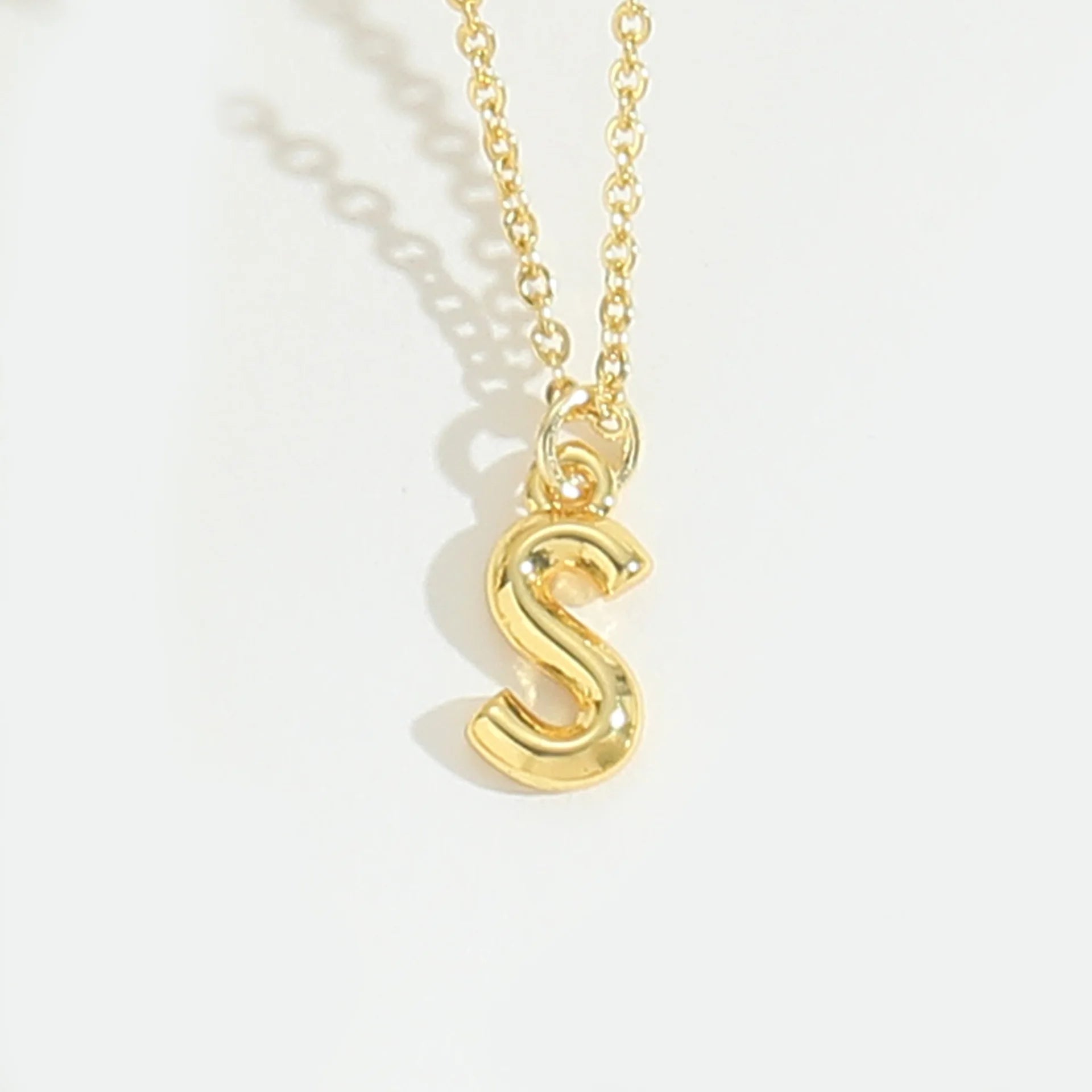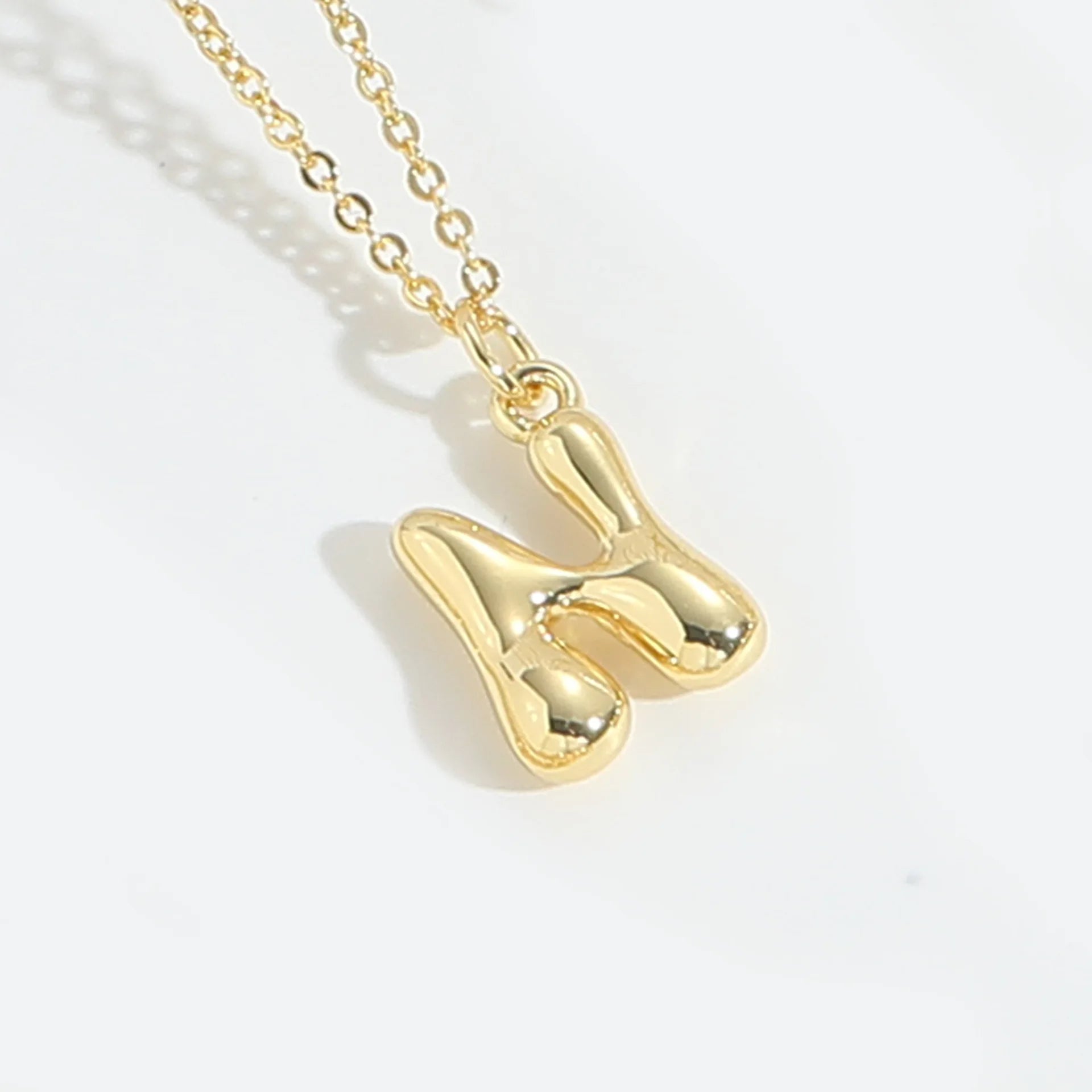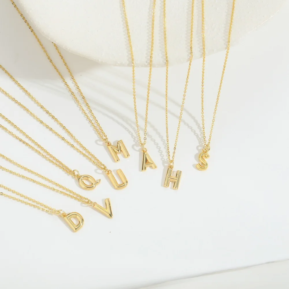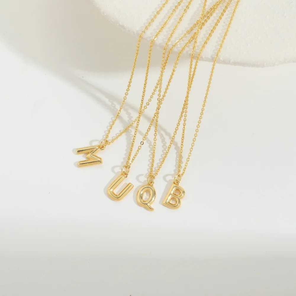 Adjustable Women's Copper Bubble Letter Initial Necklace with Antioxidant Coating Custom Name Box Chain Jewelry Gift