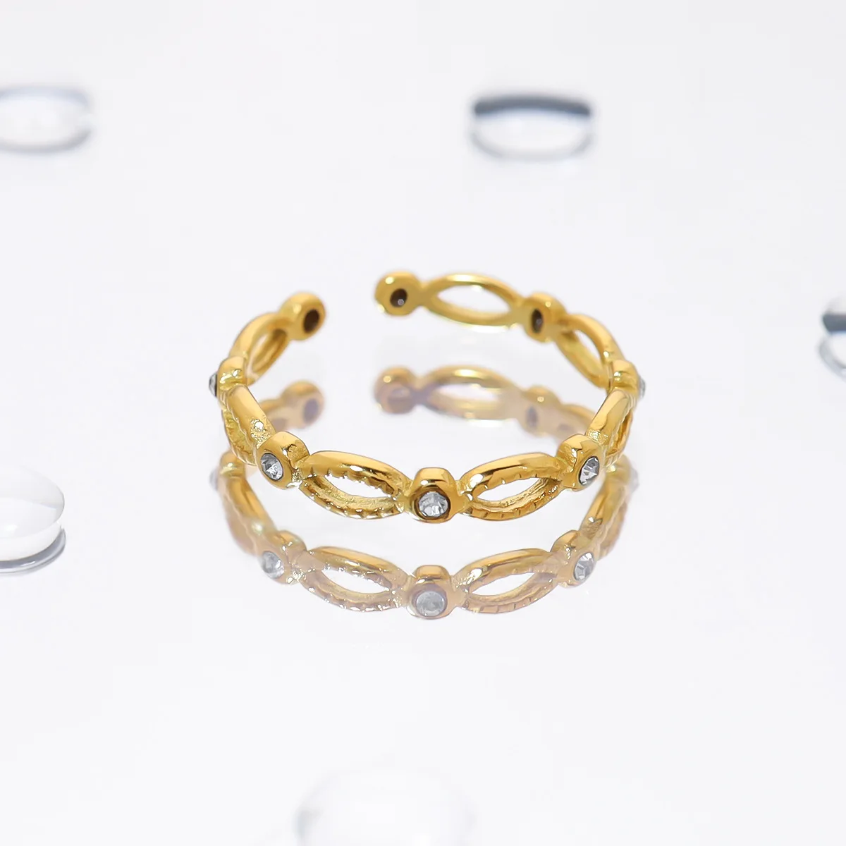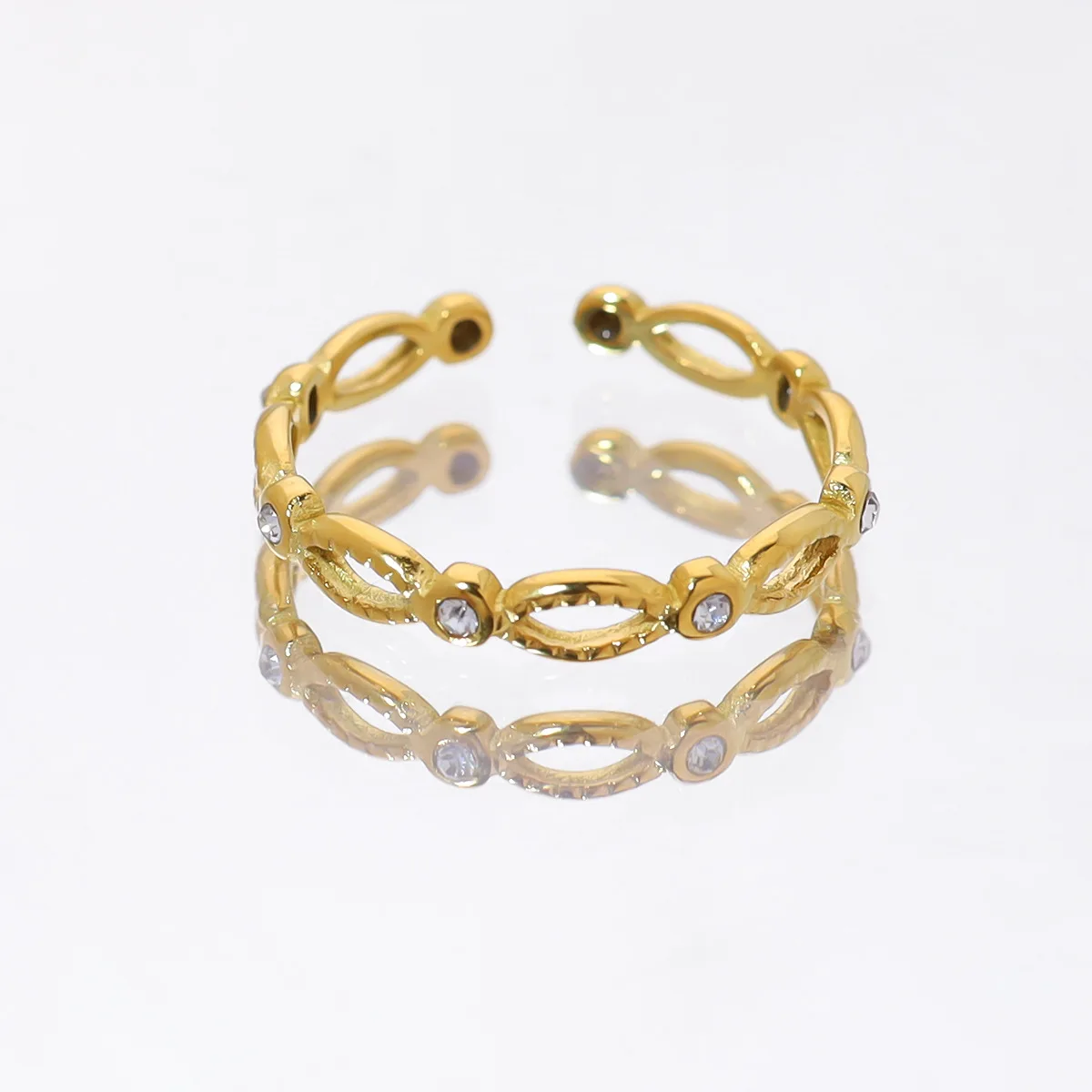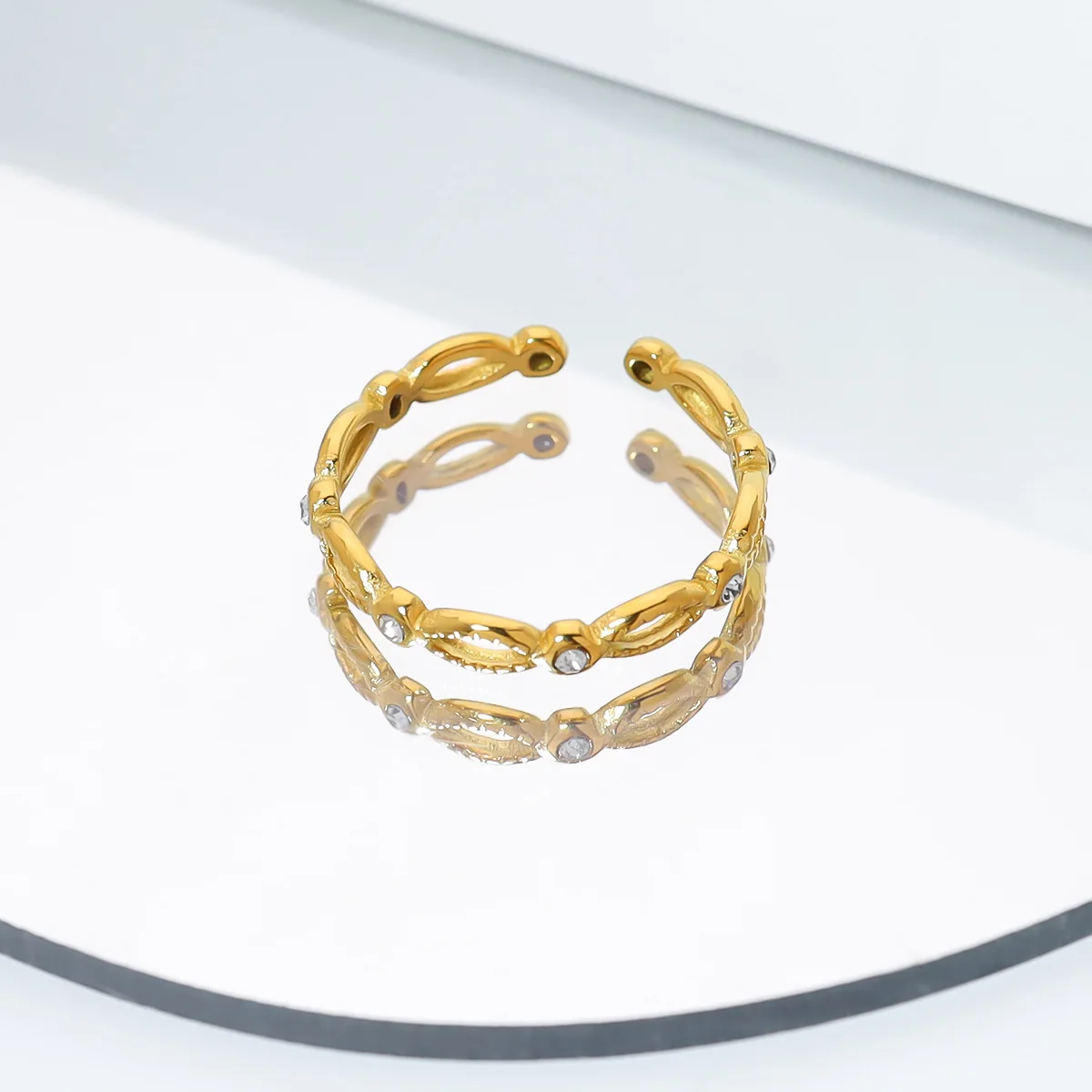 High Quality Gold Plated Open Adjustable Sample Engagement Rings Stainless Steel Zircon Ring for Girl Valentine'S Day Gifts