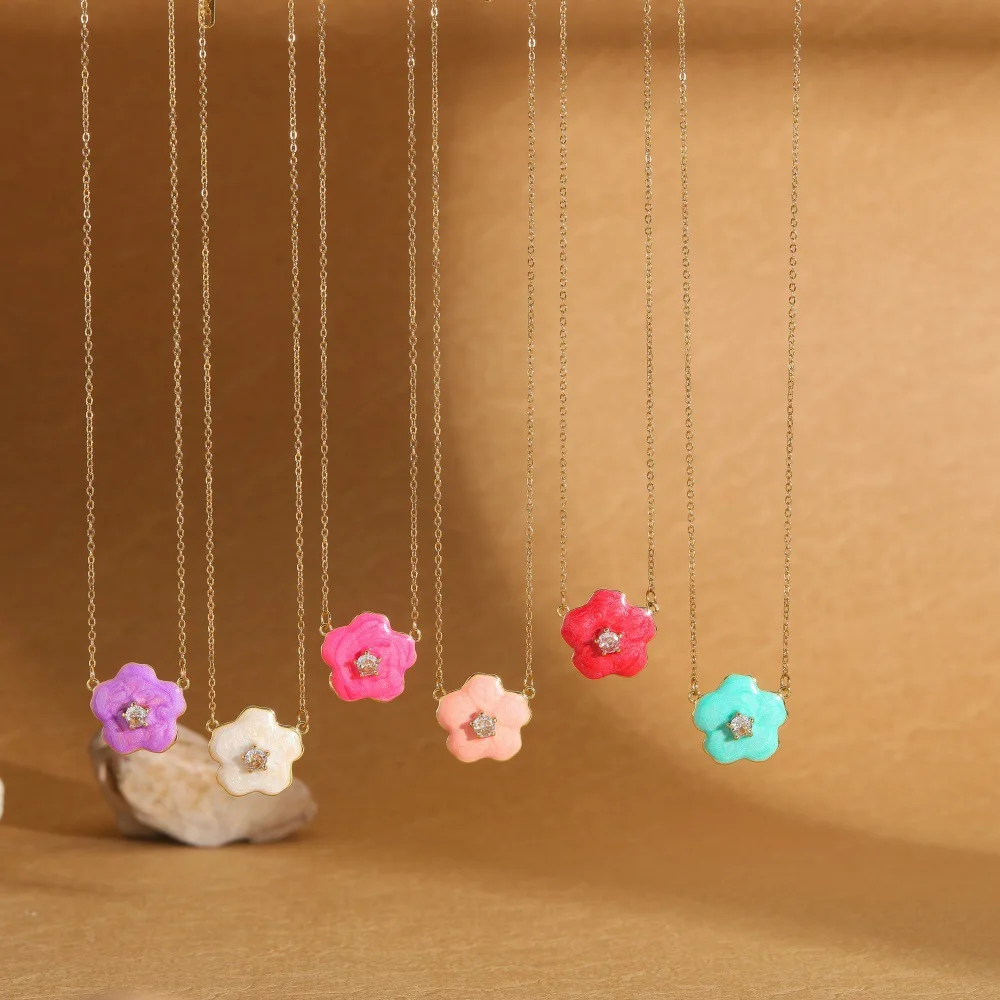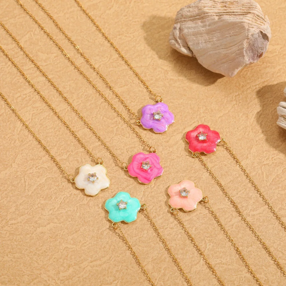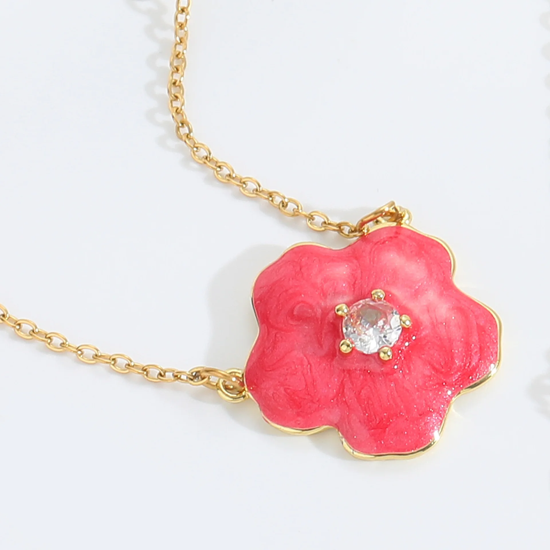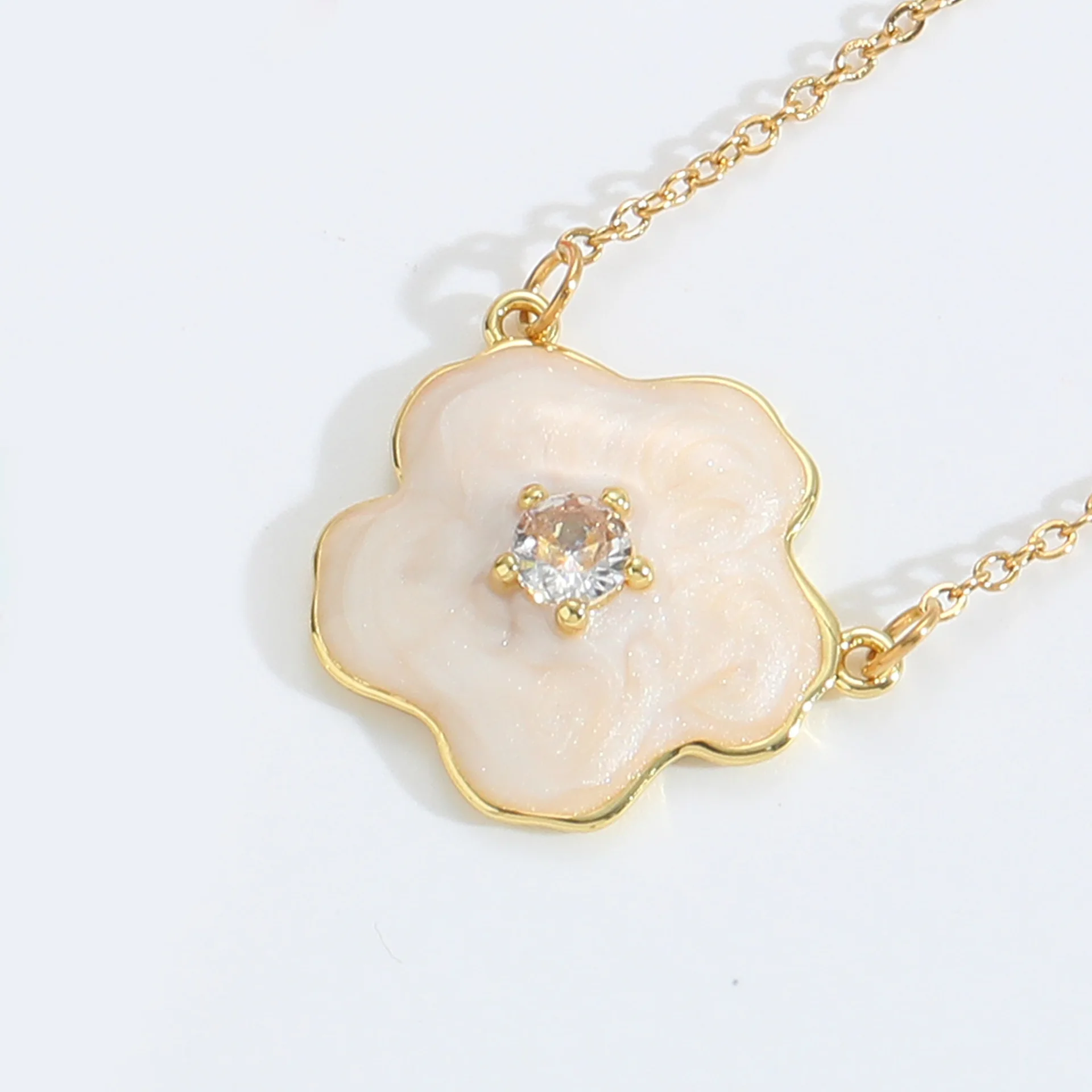 High Quality Women's Resin Flower Necklace with Zircon Copper Beaded Bracelet Inspired Europe United States Frangipani Jewelry