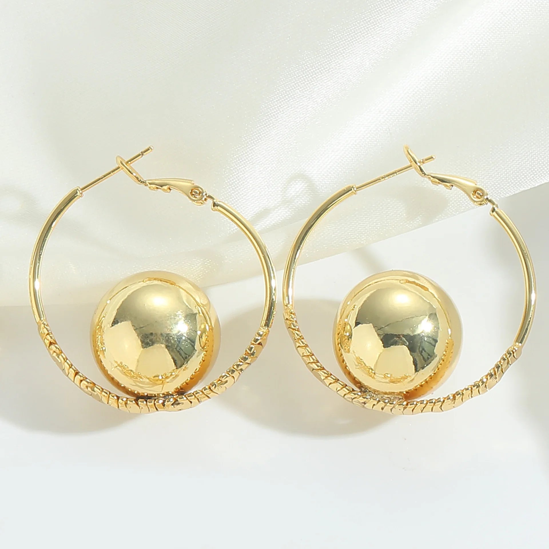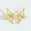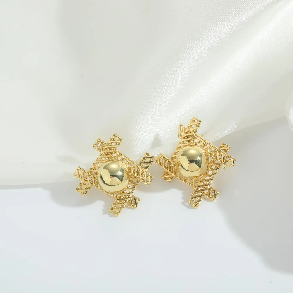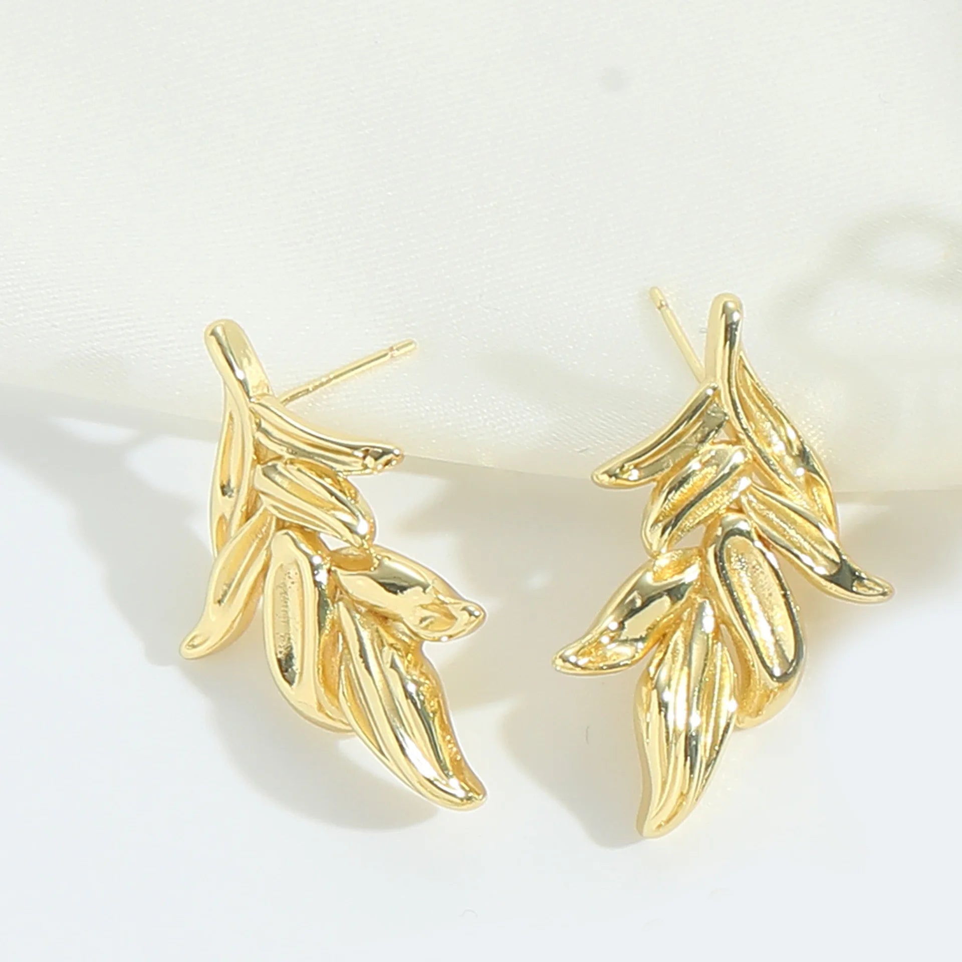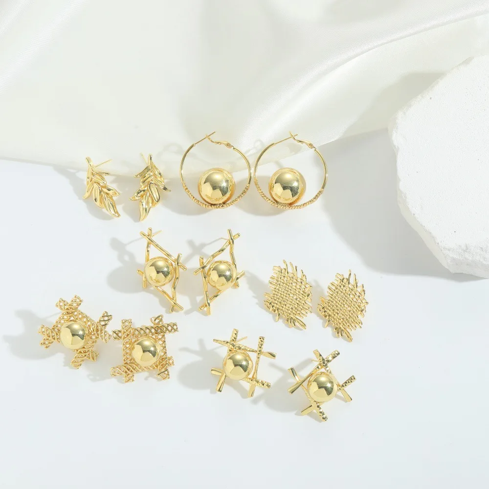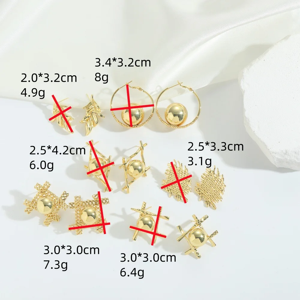 Fashion Copper Crossover Design Earrings Geometric Leaf Ball Studs Women Jewelry Minimalist Everyday Wear