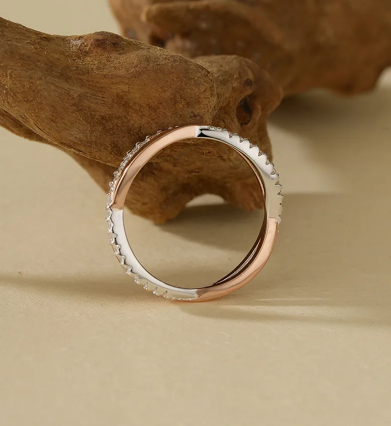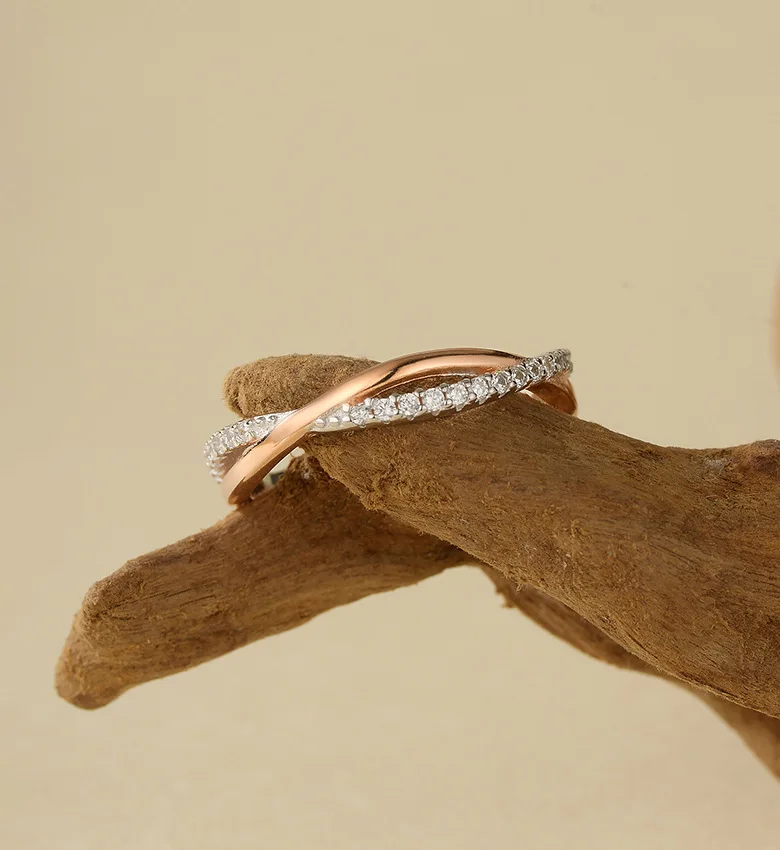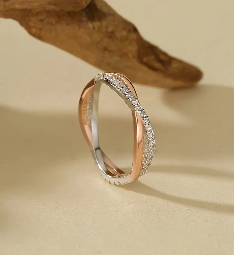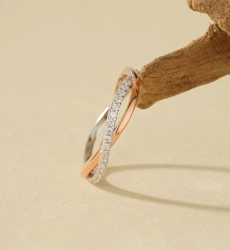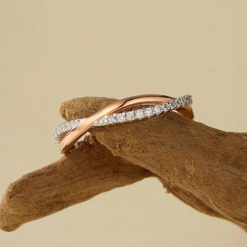 Wholesale S925 Sterling Silver Double Loop Ring for Women - Two-Tone Stackable Minimalist Ring with Micro-Pavé Diamonds