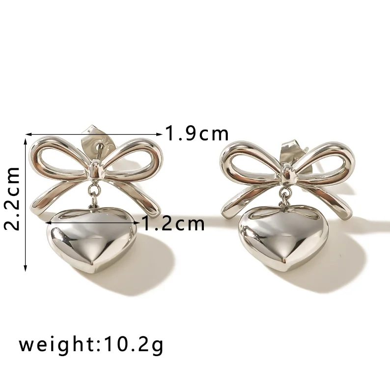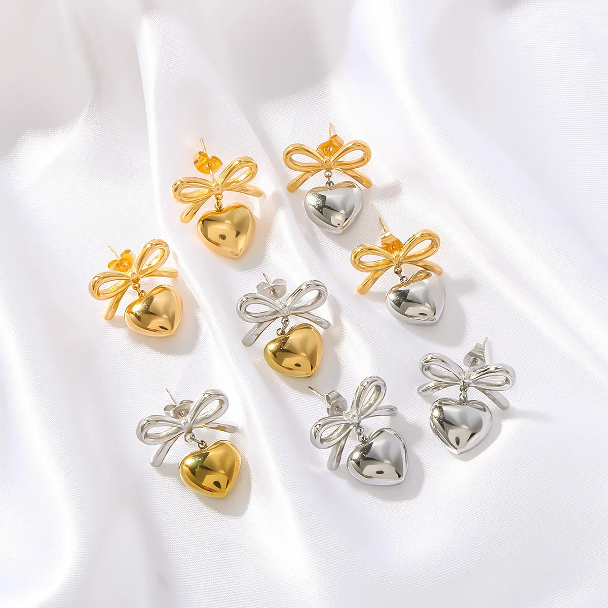 Dainty Gold Plated Heart Dangle Earrings Gifts for Valentines Day Stainless Steel Bowknot Drop Earrings Fashion Jewelry