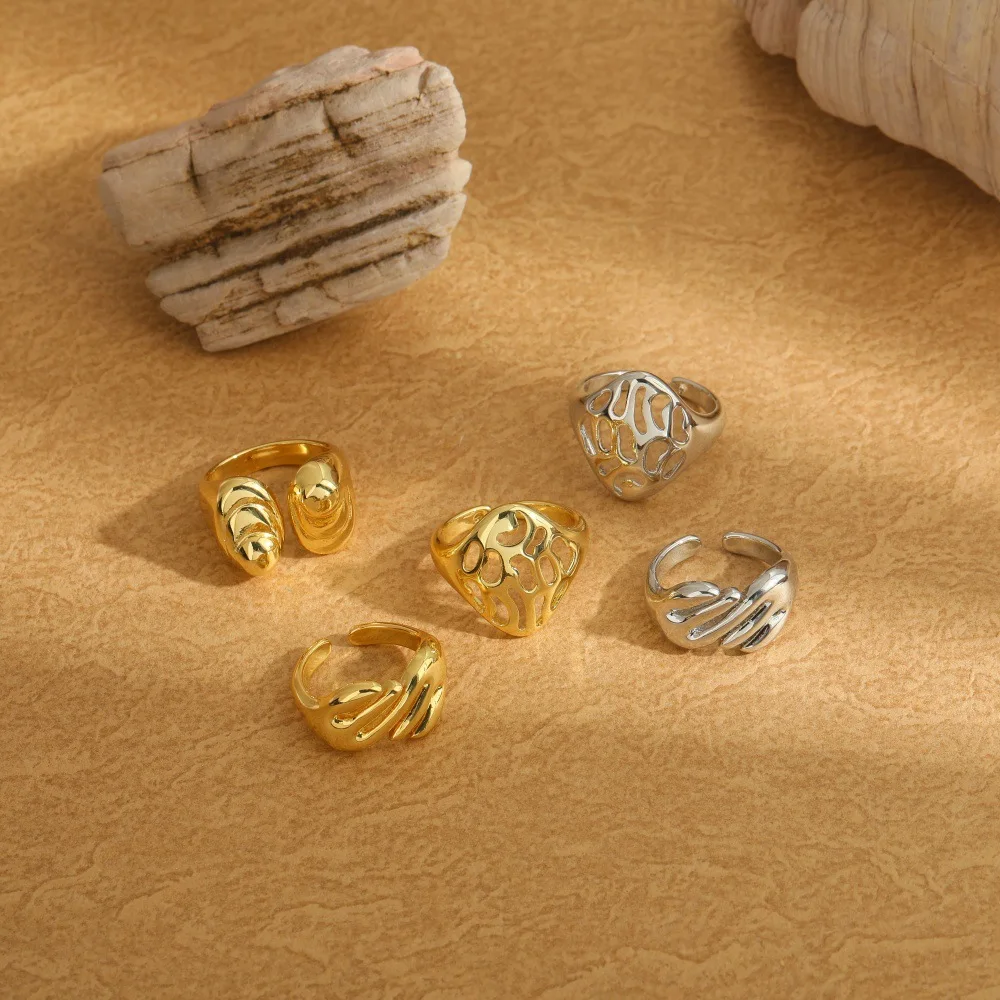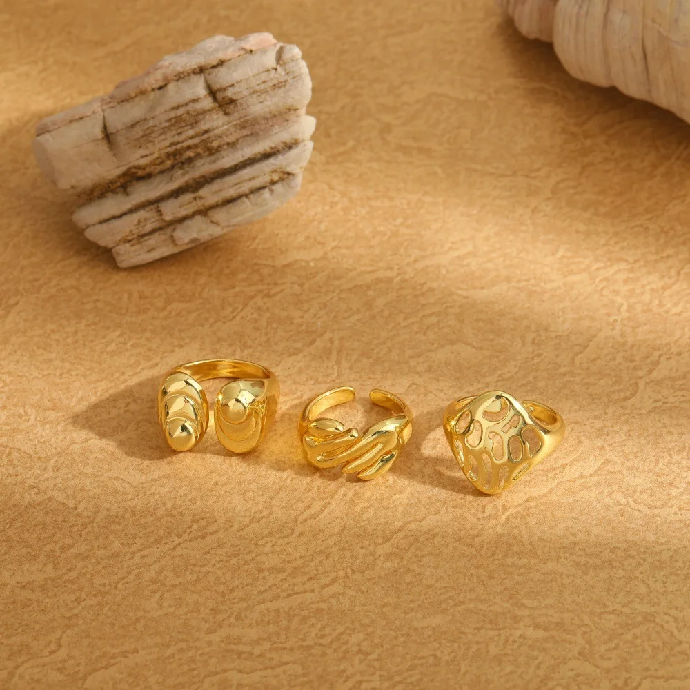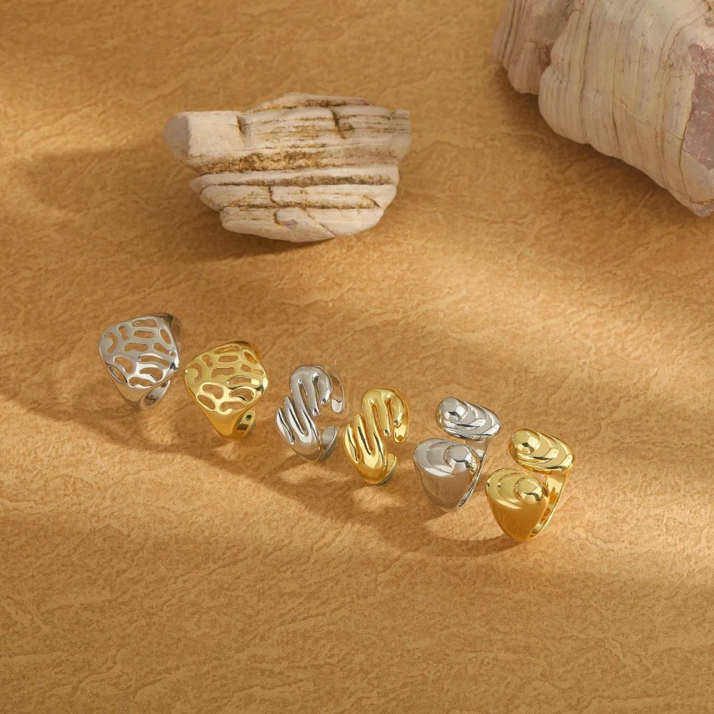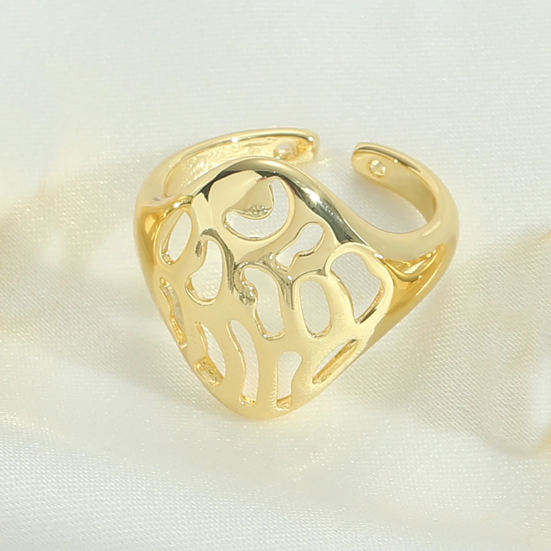 Trendy Vintage Minimalist Open Ring for Women 14K Gold Plated Copper Unique Hollow Design Adjustable 18K Gold Plated Jewelry