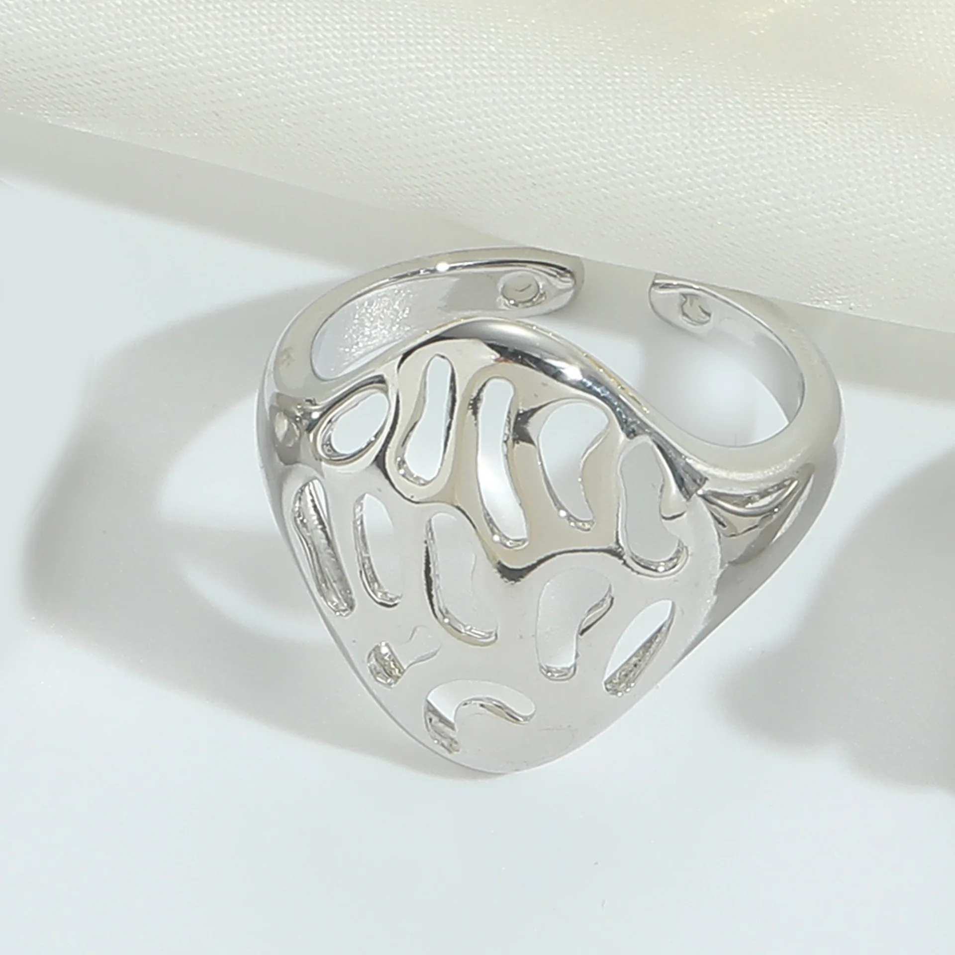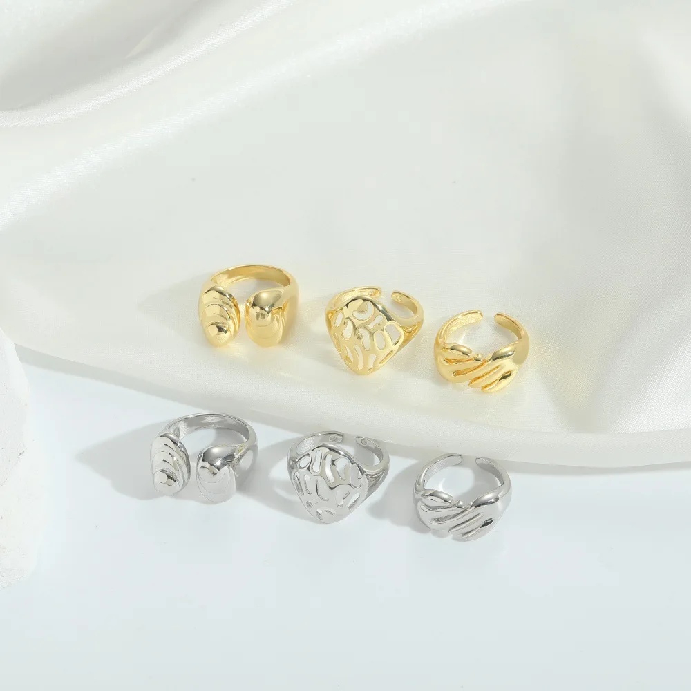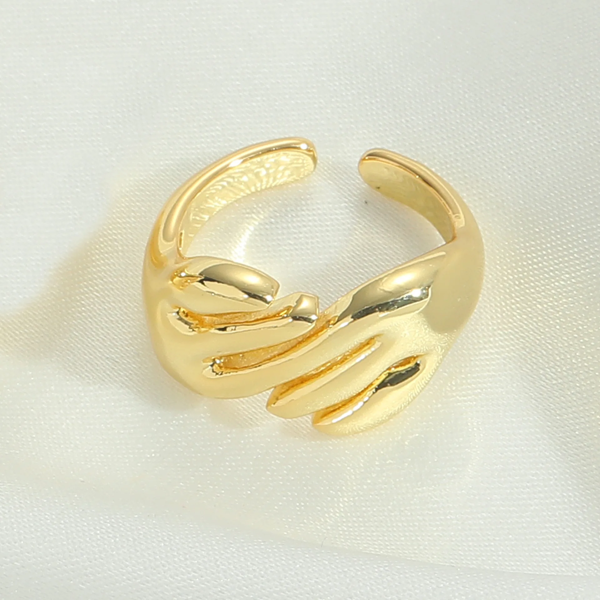 Trendy Vintage Minimalist Open Ring for Women 14K Gold Plated Copper Unique Hollow Design Adjustable 18K Gold Plated Jewelry