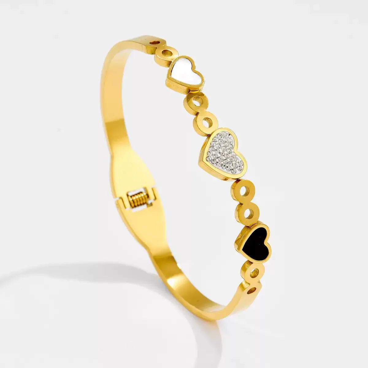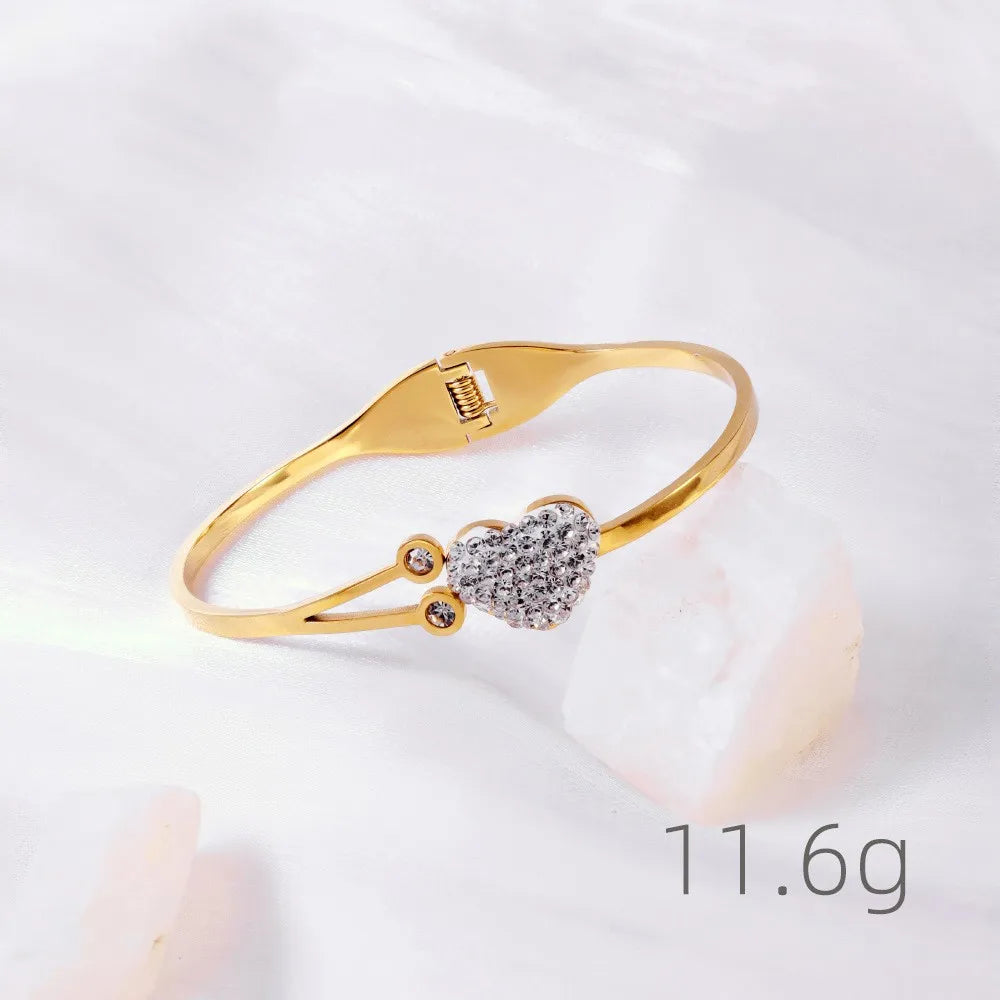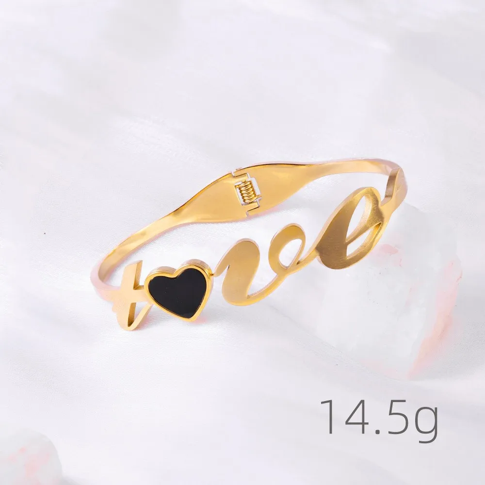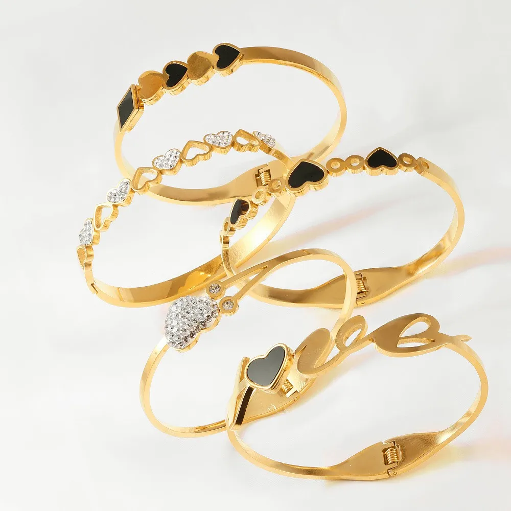 Wholesale 18K Gold PVD Coated Heart Shaped Bracelet Stainless Steel Round Open Cuff Bangle Fashion Jewelry for Women
