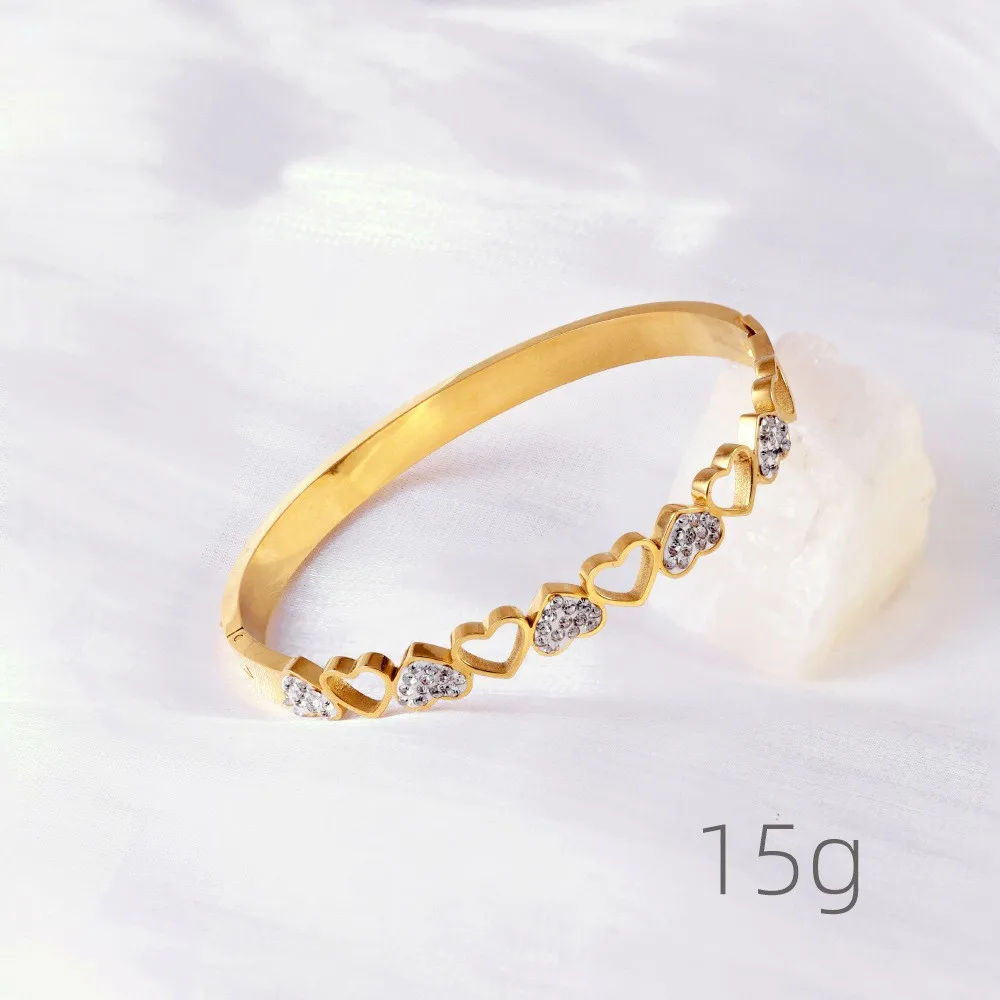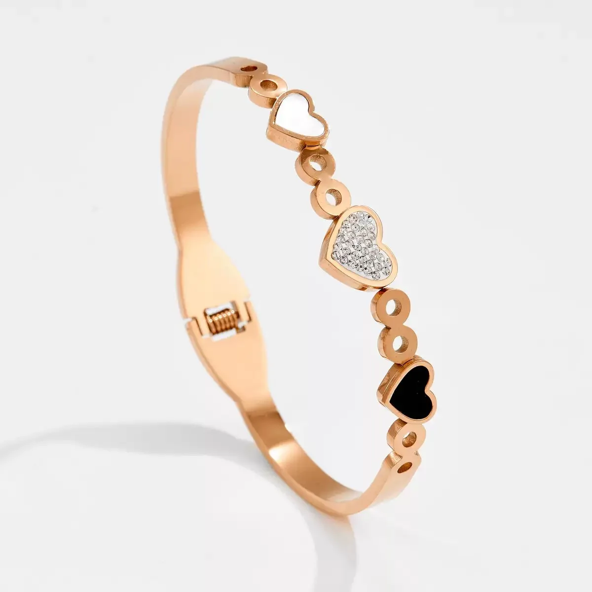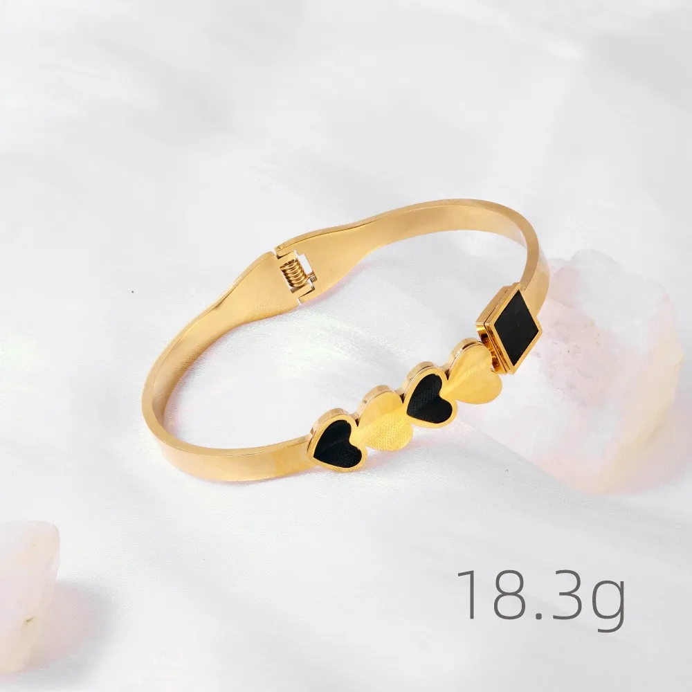 Wholesale 18K Gold PVD Coated Heart Shaped Bracelet Stainless Steel Round Open Cuff Bangle Fashion Jewelry for Women