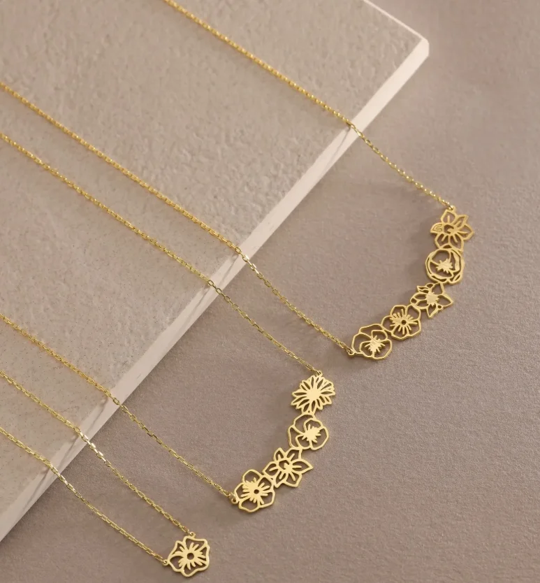 Personalized Charm Stainless Steel Birth Flower Necklace for Her Fashion Minimalist 18k Gold Plated Necklace Jewelry Gift