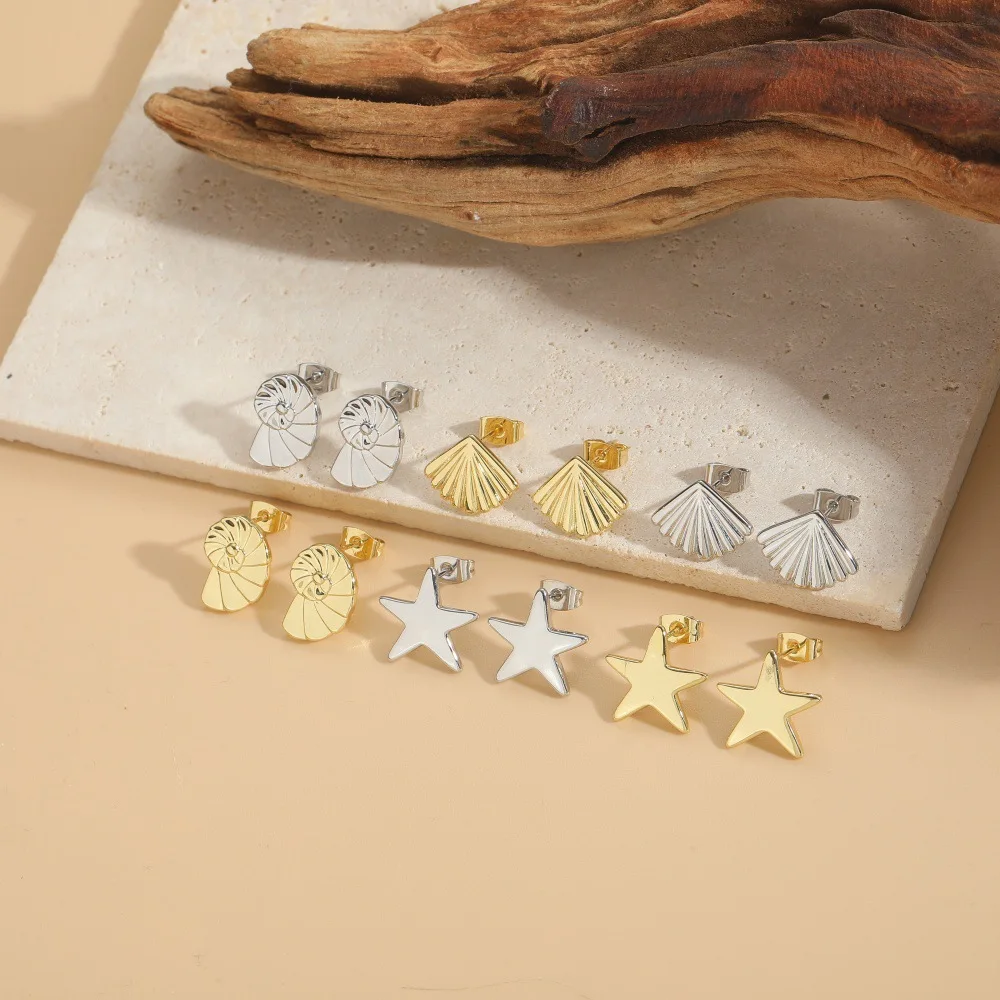 Vintage Gold Tone Copper Starfish Hoop Earrings with Wave Texture Bohemian Beach Jewelry for Women Gifts