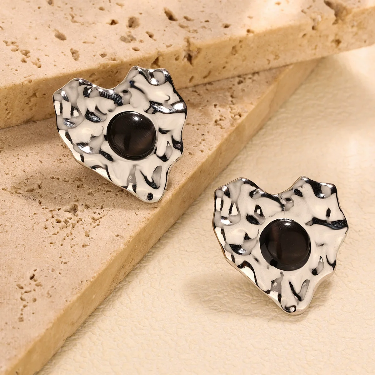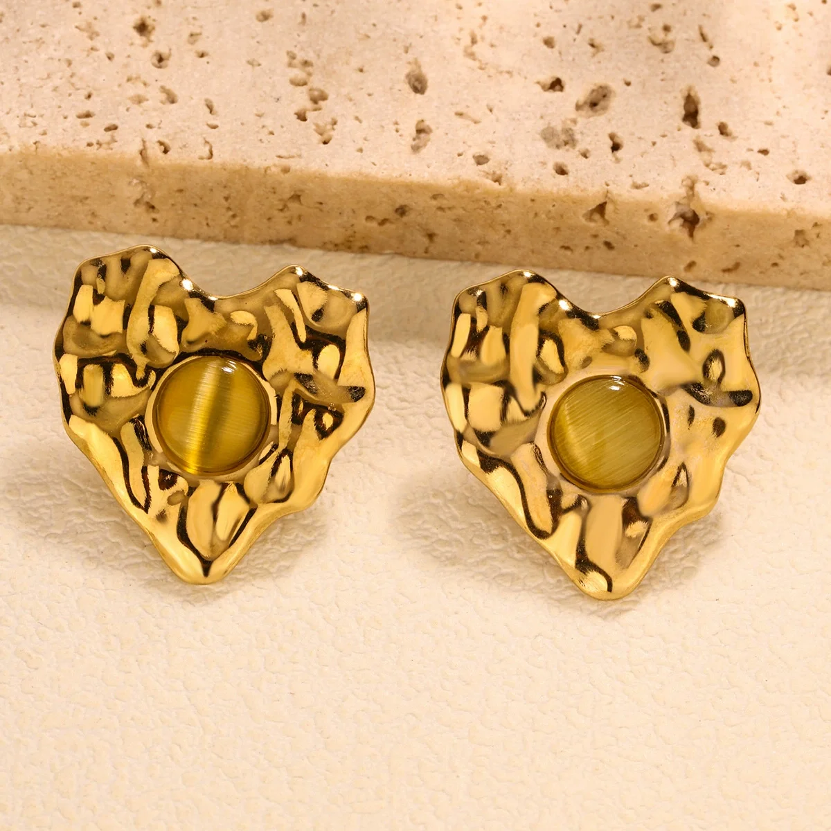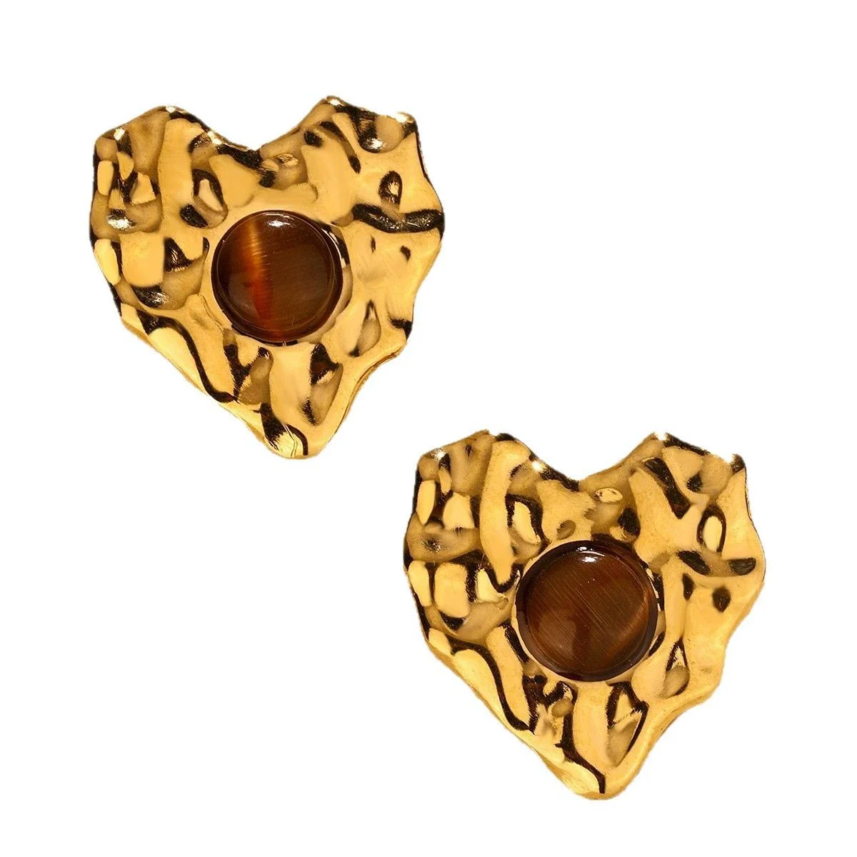Stainless Steel Heart Shape Oil-Drip Earrings18K Gold Plated Titanium Women's Fashion Jewelry
