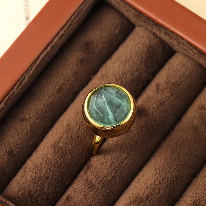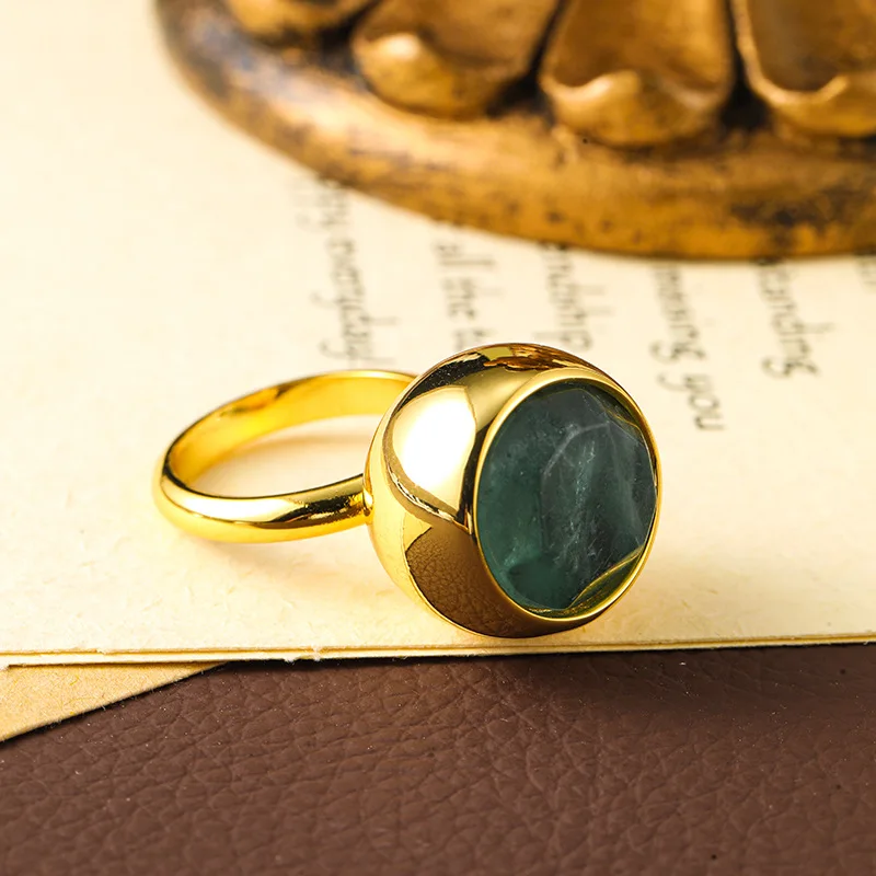 Fashion Copper 18K Gold Plated Natural Stone Ring Green Round Stone Rings for Women