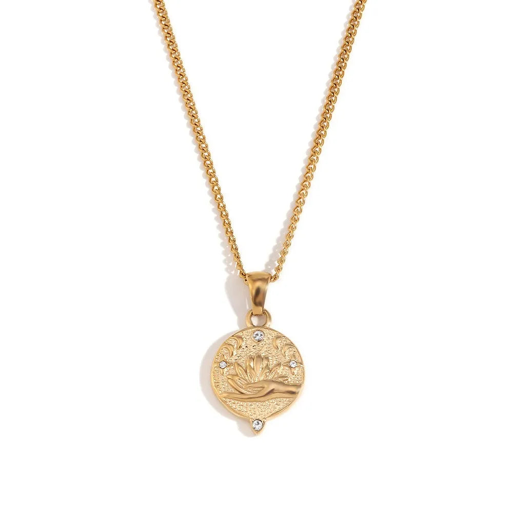 18K Gold Plated c Zodiac Necklace for Women Non-Tarnish Stainless Steel Pendant Mystic Astrology Jewelry Gift