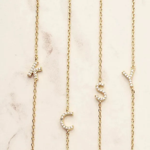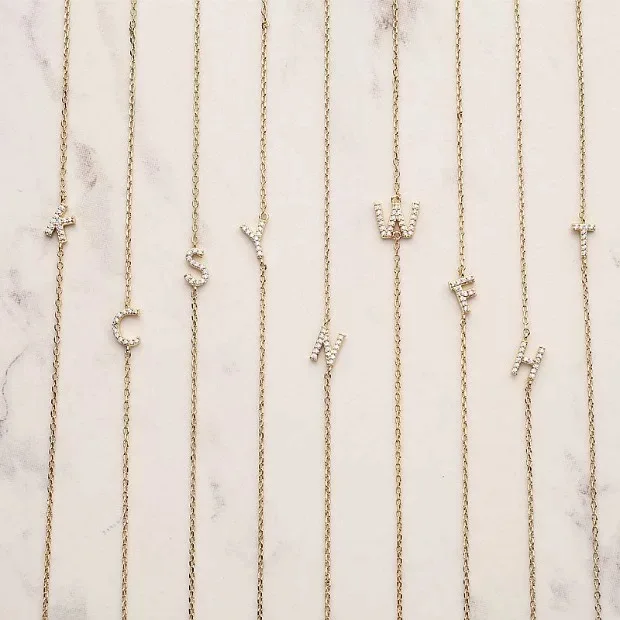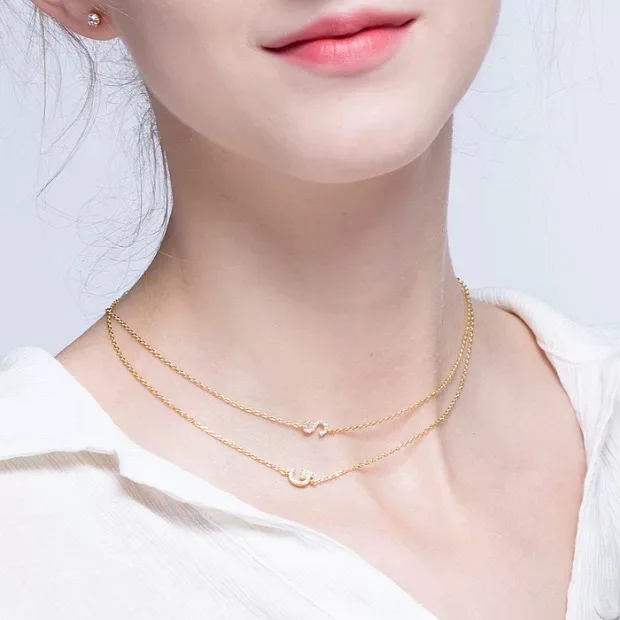 Wholesale Dainty Tiny Gold Plated Cubic Zirconia Choker S Alphabet Letter Charm Necklace Initial Necklace for Women