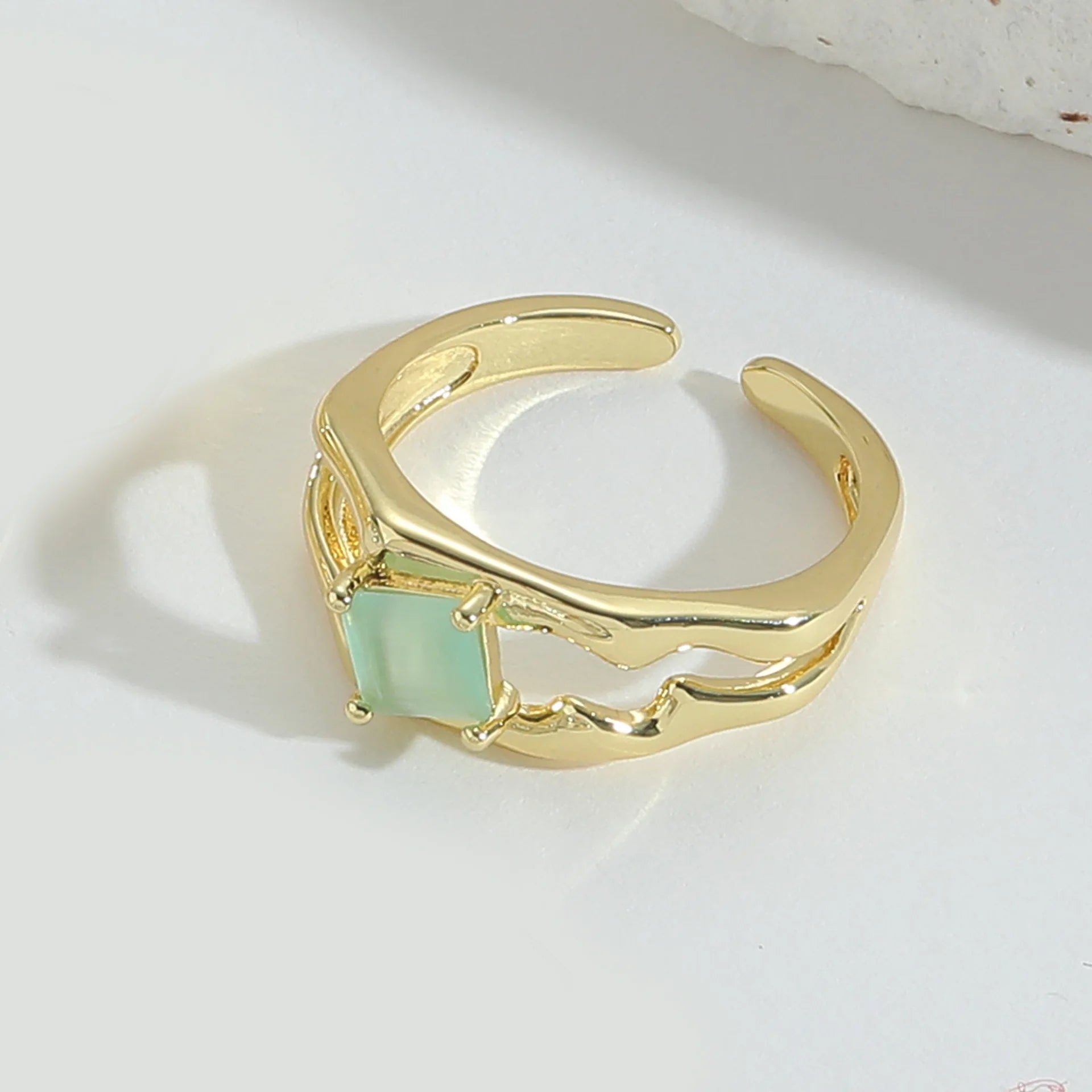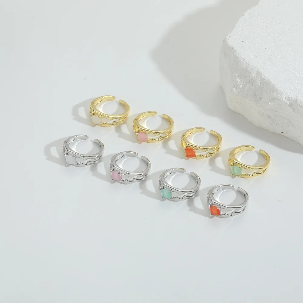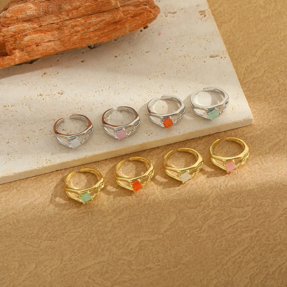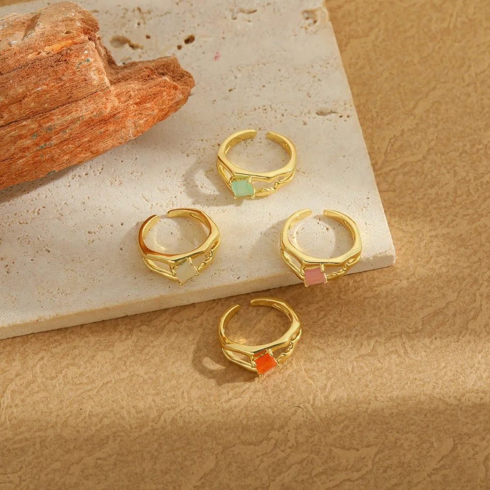 Fine Fashion Copper Gold Plated Women Opening Ring Minimalist Style Colourful Square Adjustable Finger Ring