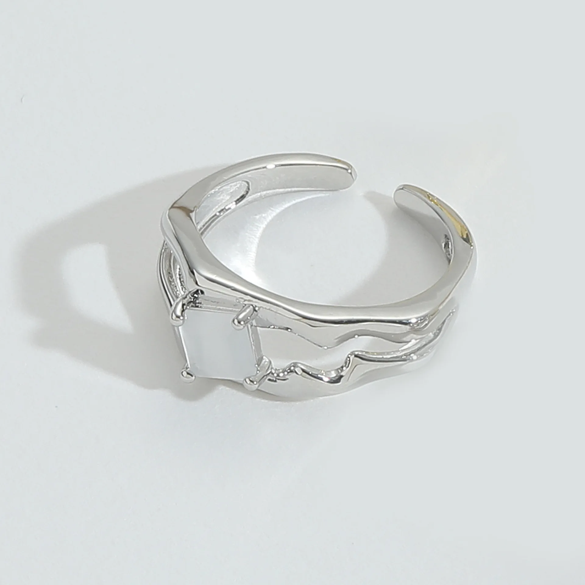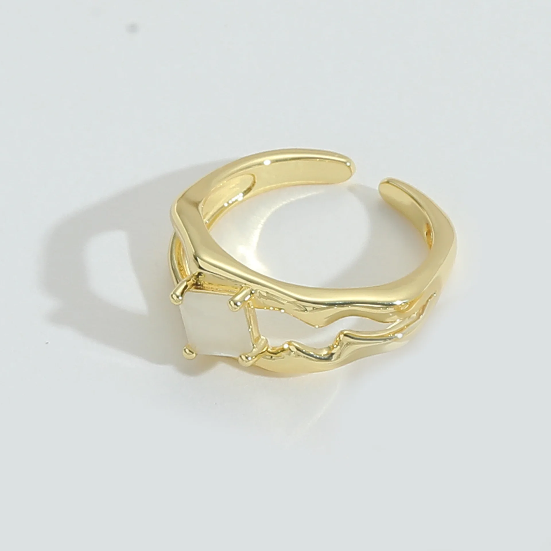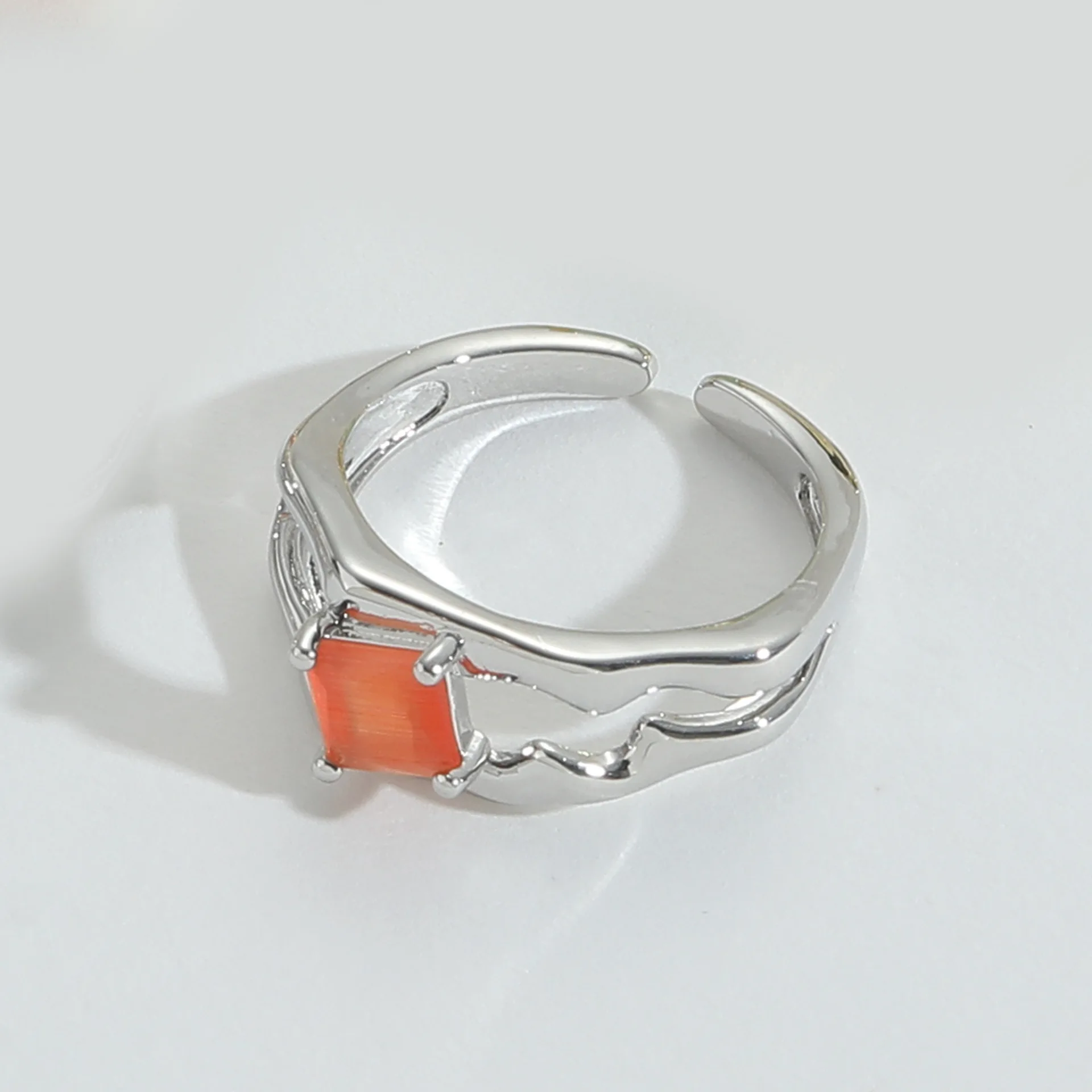 Fine Fashion Copper Gold Plated Women Opening Ring Minimalist Style Colourful Square Adjustable Finger Ring