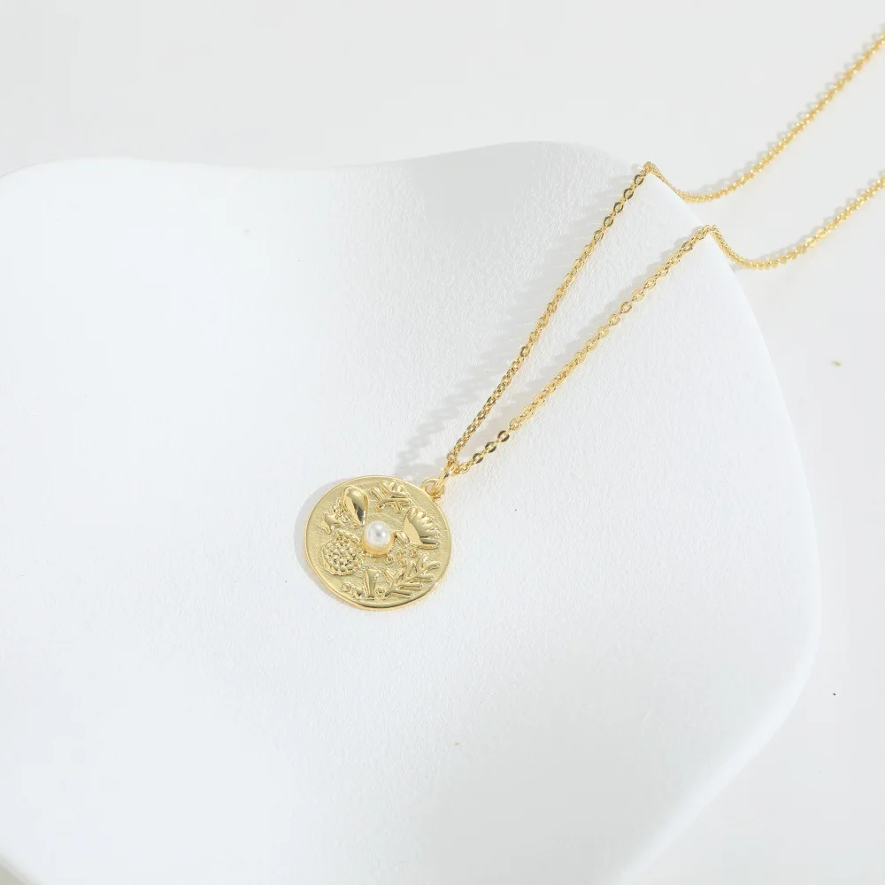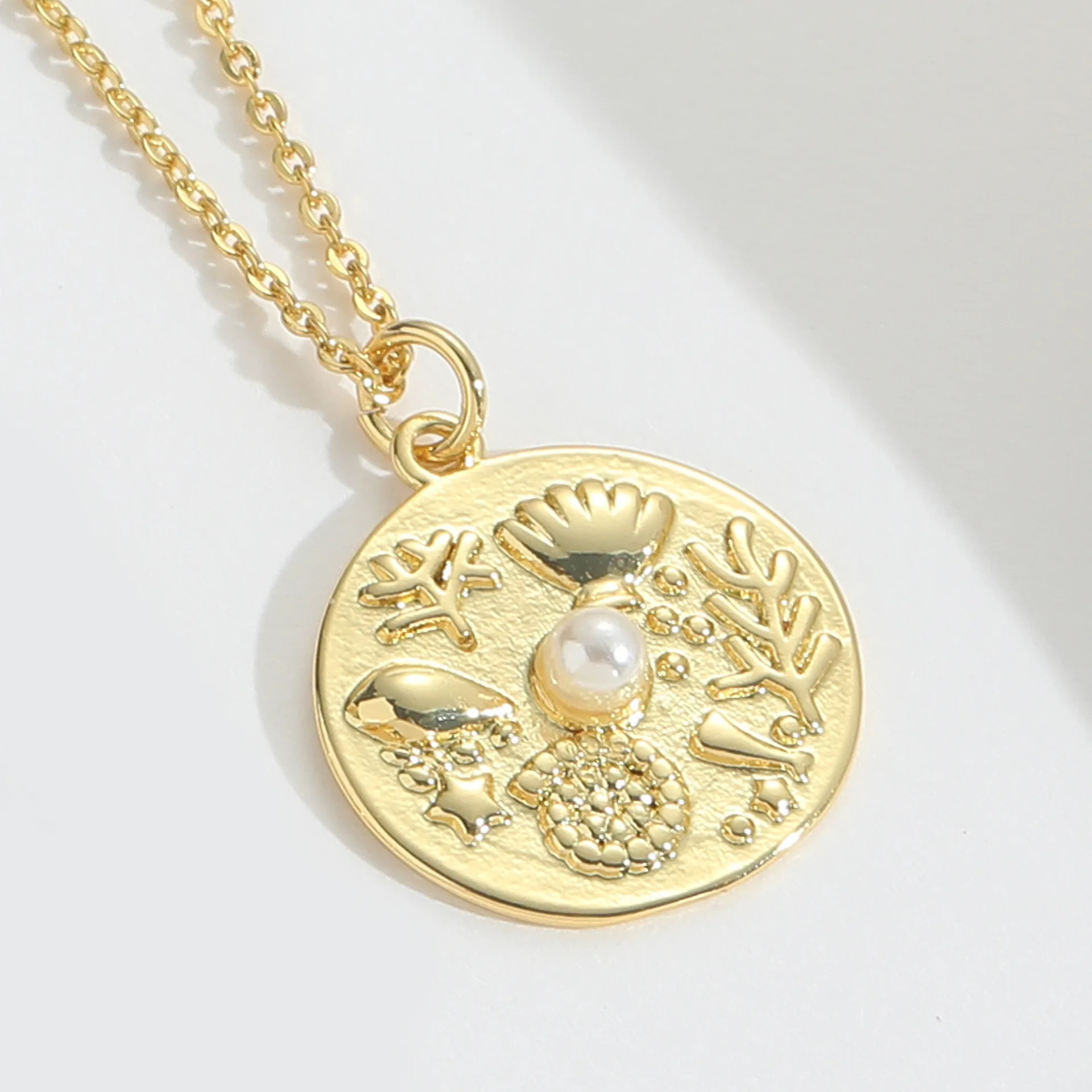 Exclusive Factory Direct 14K Gold Plated Copper Hammered Disc Necklace with Coin Charm for Women's Fashion and Casual Wear