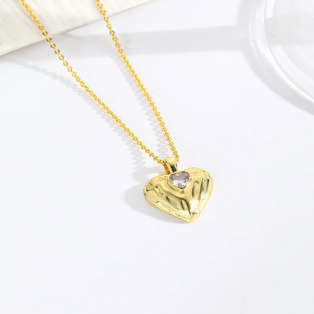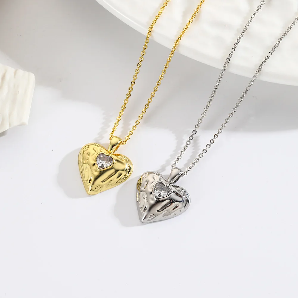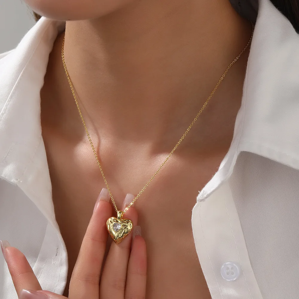 Valentine Day Gift 2025 Gold-Plated Heart Shape Pendant Necklace for Women's Vintage Zircon Colorfast Clavicle Chain Jewelry
