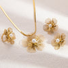 Elegant 18k Gold Plated Stainless Steel Pearl Flower Jewelry Set for Women Necklace Earrings Bracelet Gift for Her