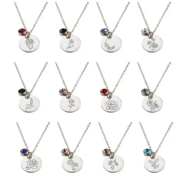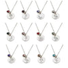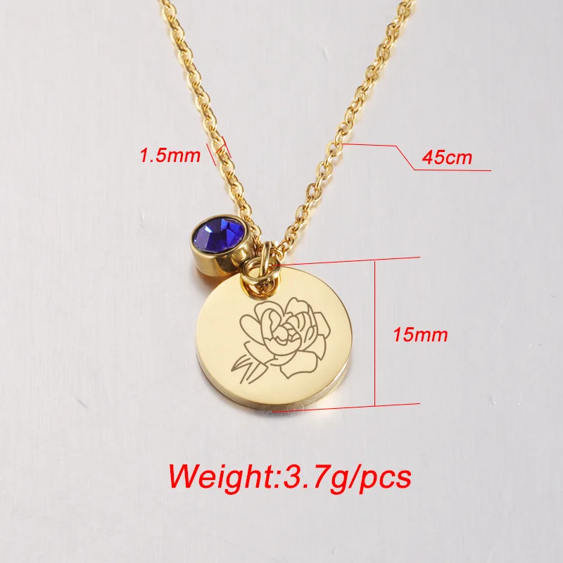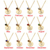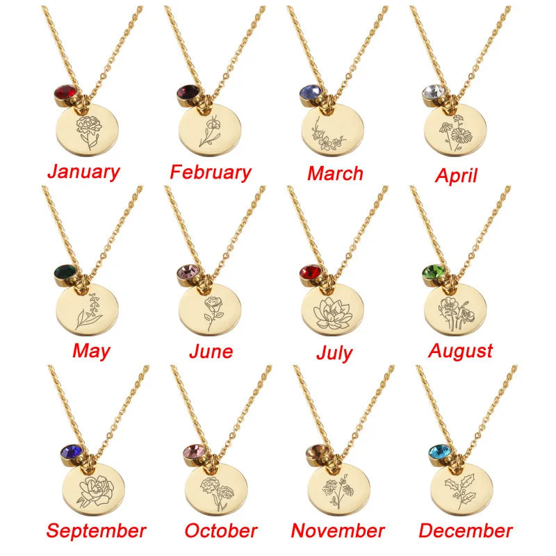 Personalized Birthstone Necklace for Women Stainless Steel Round Charm Pendant with Birth Month Flower