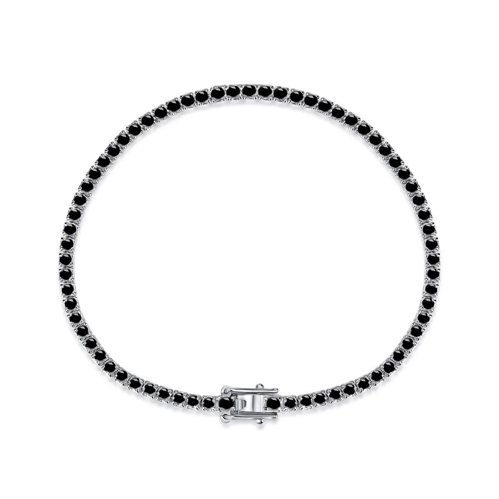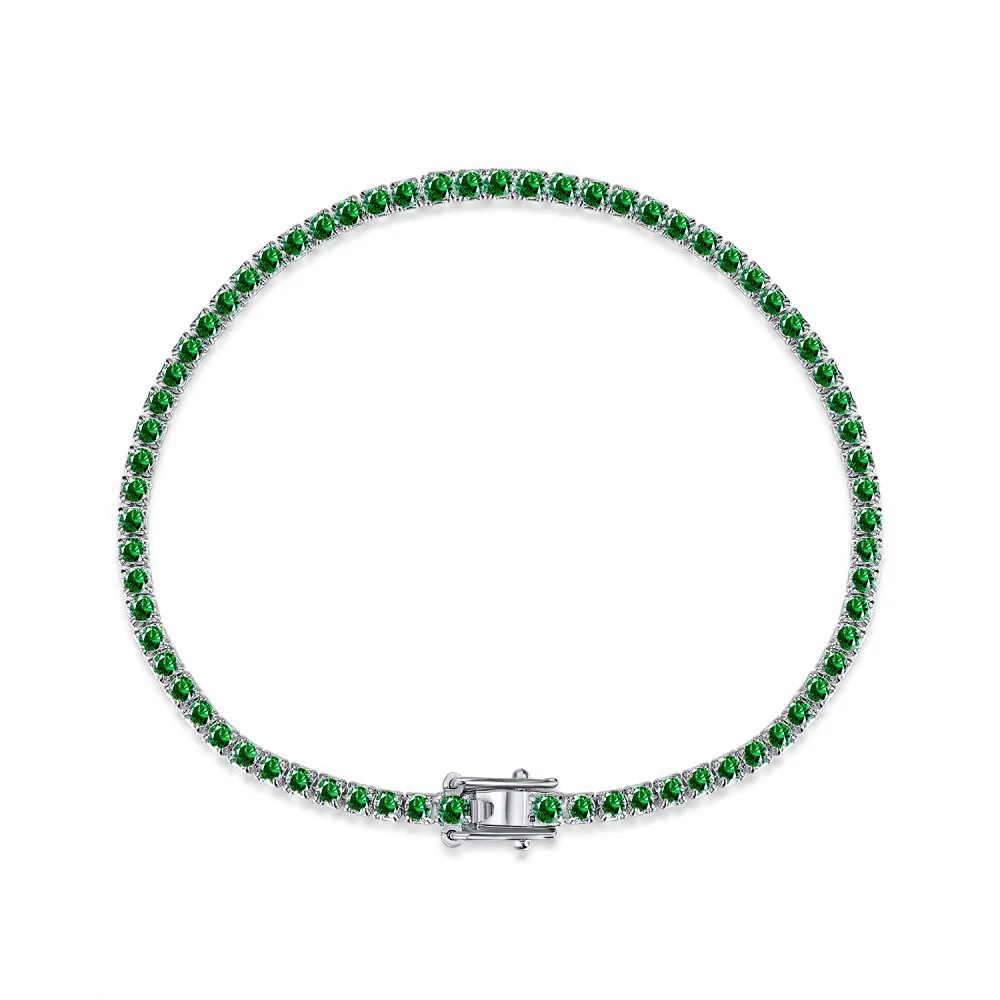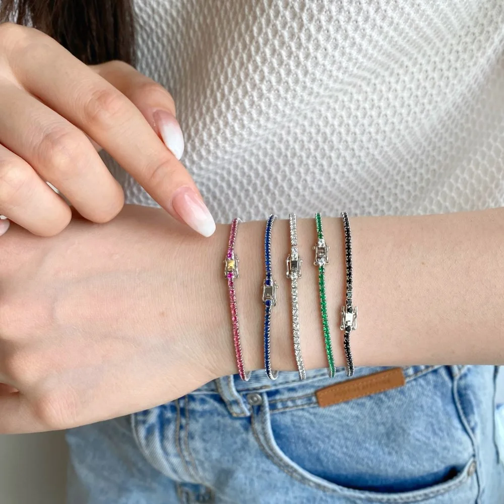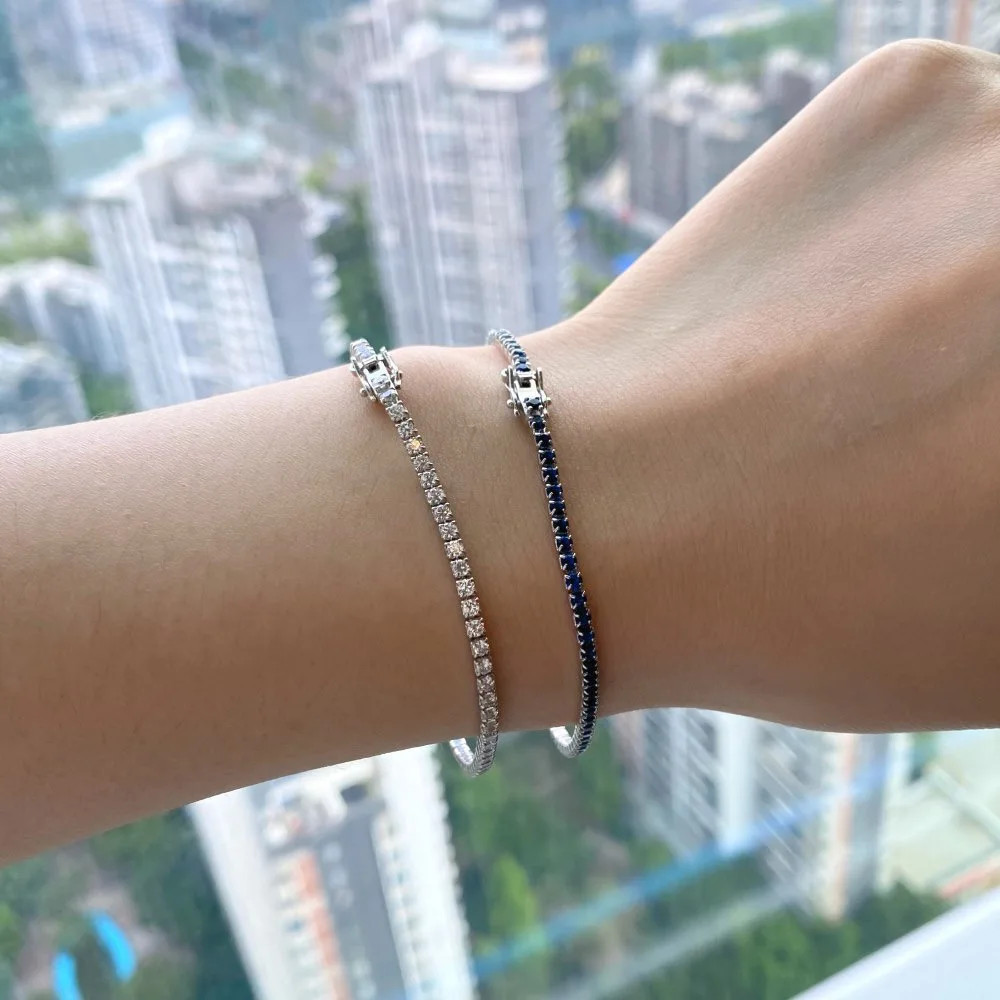925 Sterling Silver 2mm CZ Cubic Zirconia Sparkling Chain Bracelet for Women Adjustable Minimalist Jewelry for Birthday