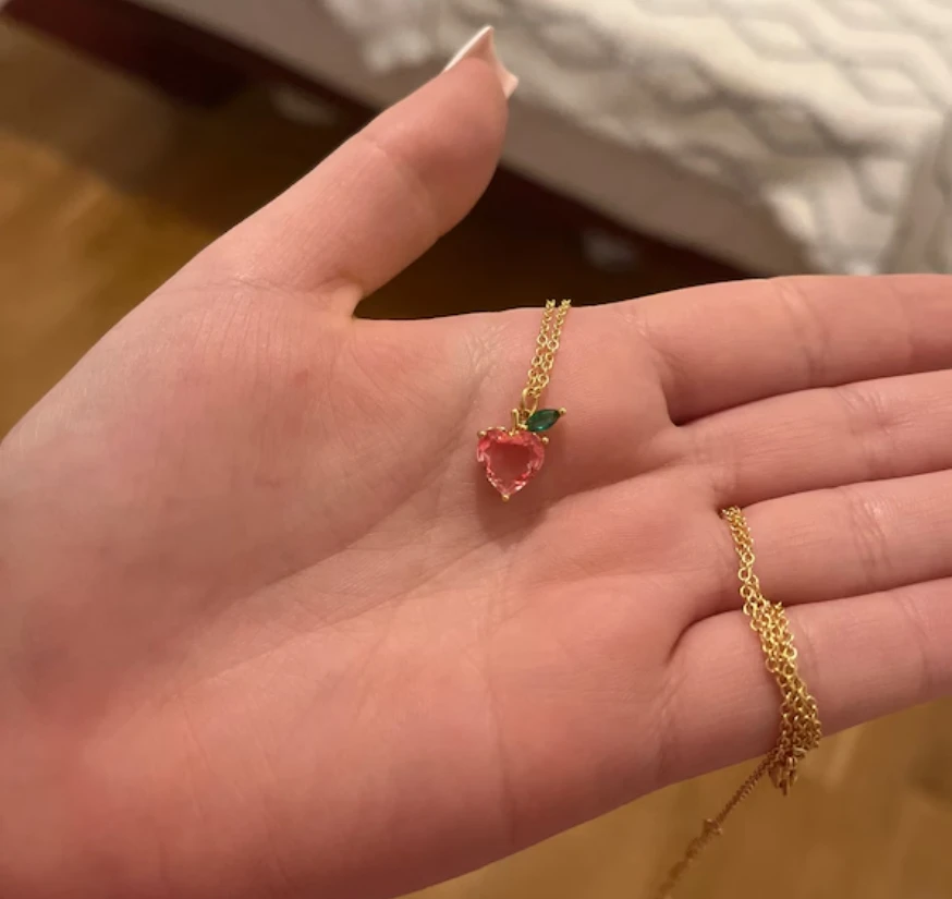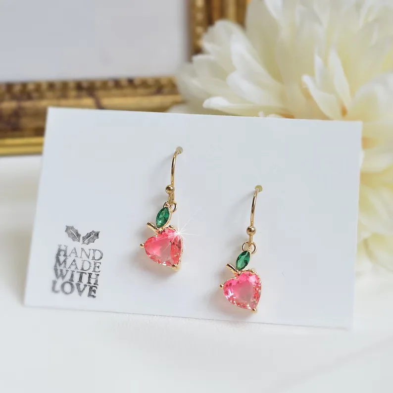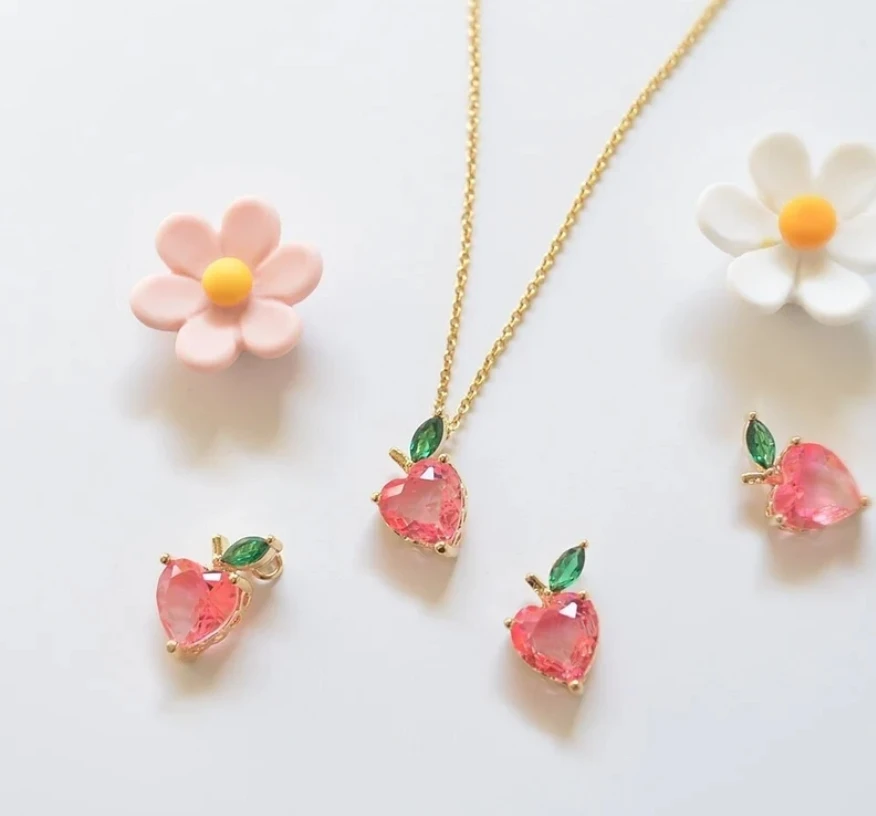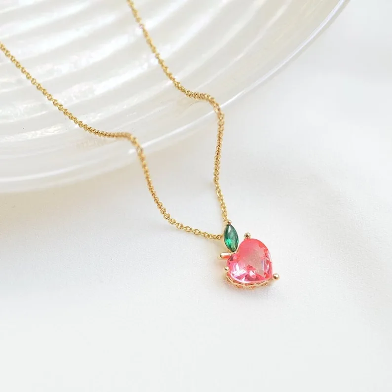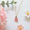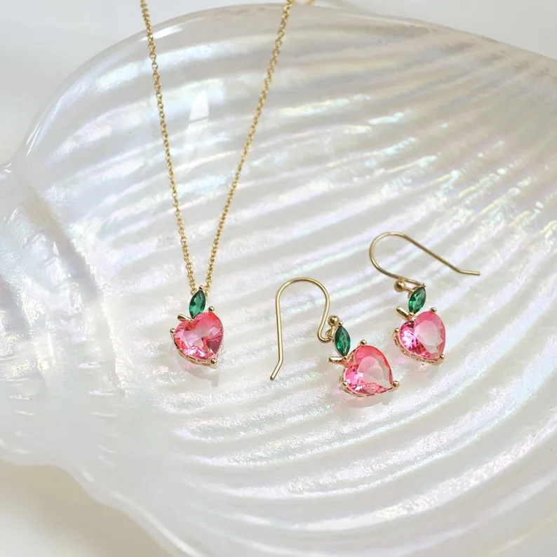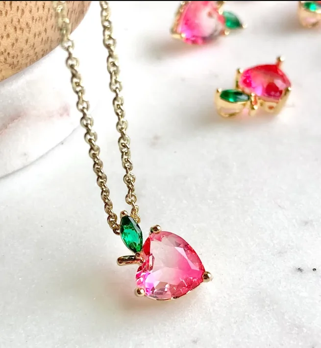 Fashion Pink Strawberry Pendant Necklace Glod Plated Cute Sweet Zircon Fruit Necklaces Earring Jewelry Set for Women Gift