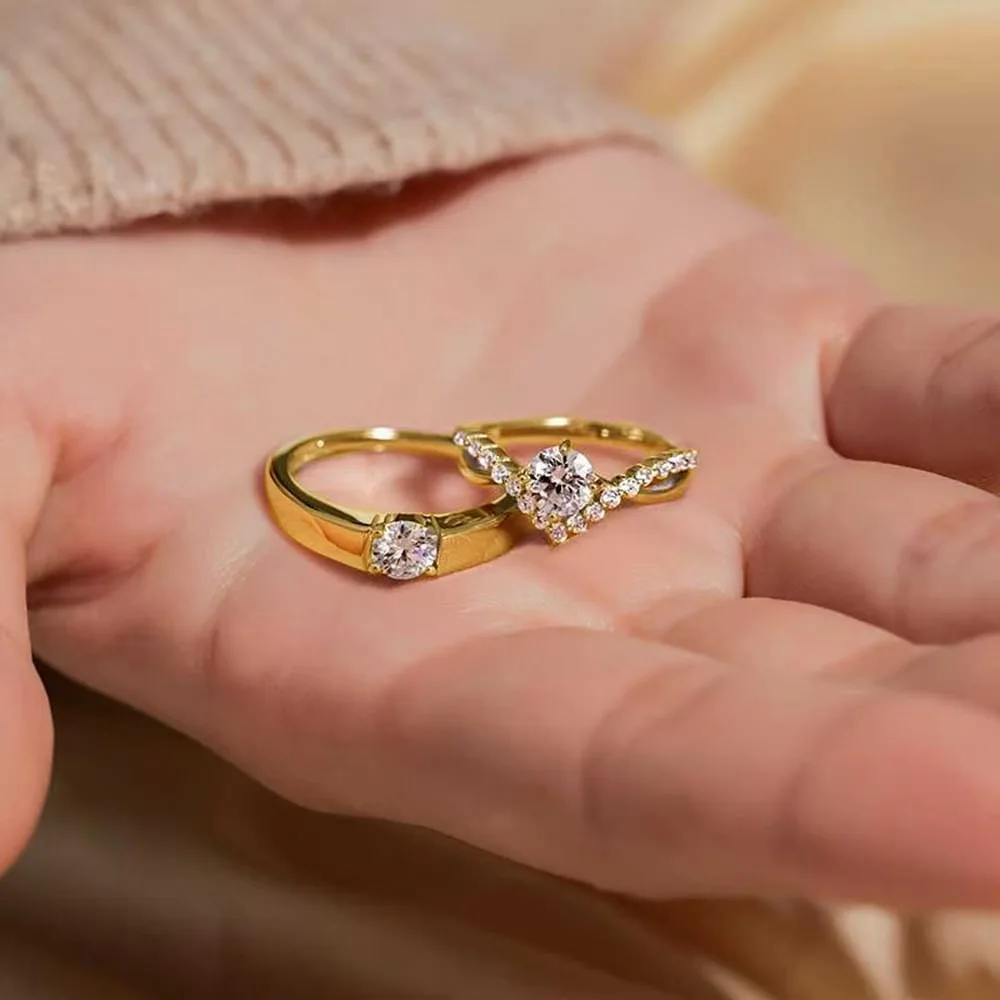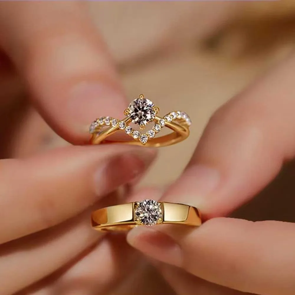 2PCS Matching Diamond Couple Rings for Women & Men Minimalist 18K Gold Plated Stackable Promise Rings for Lovers