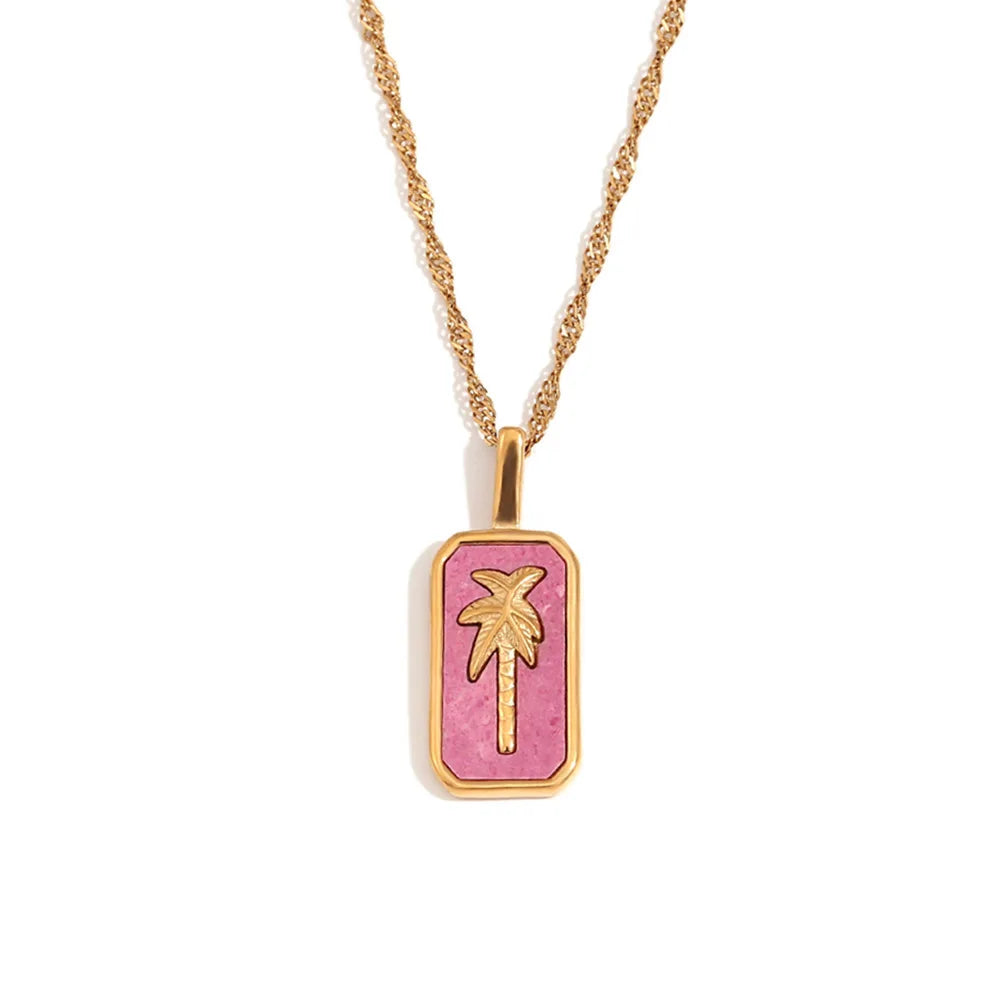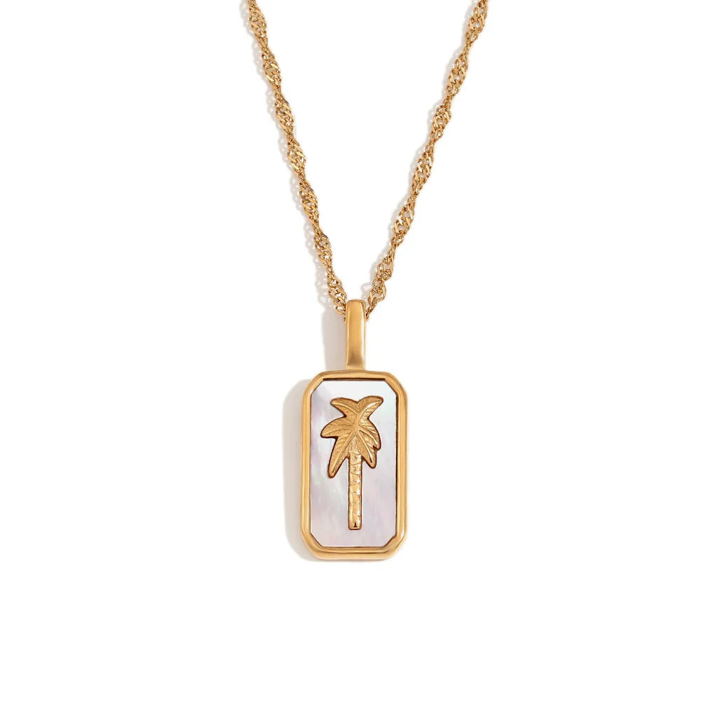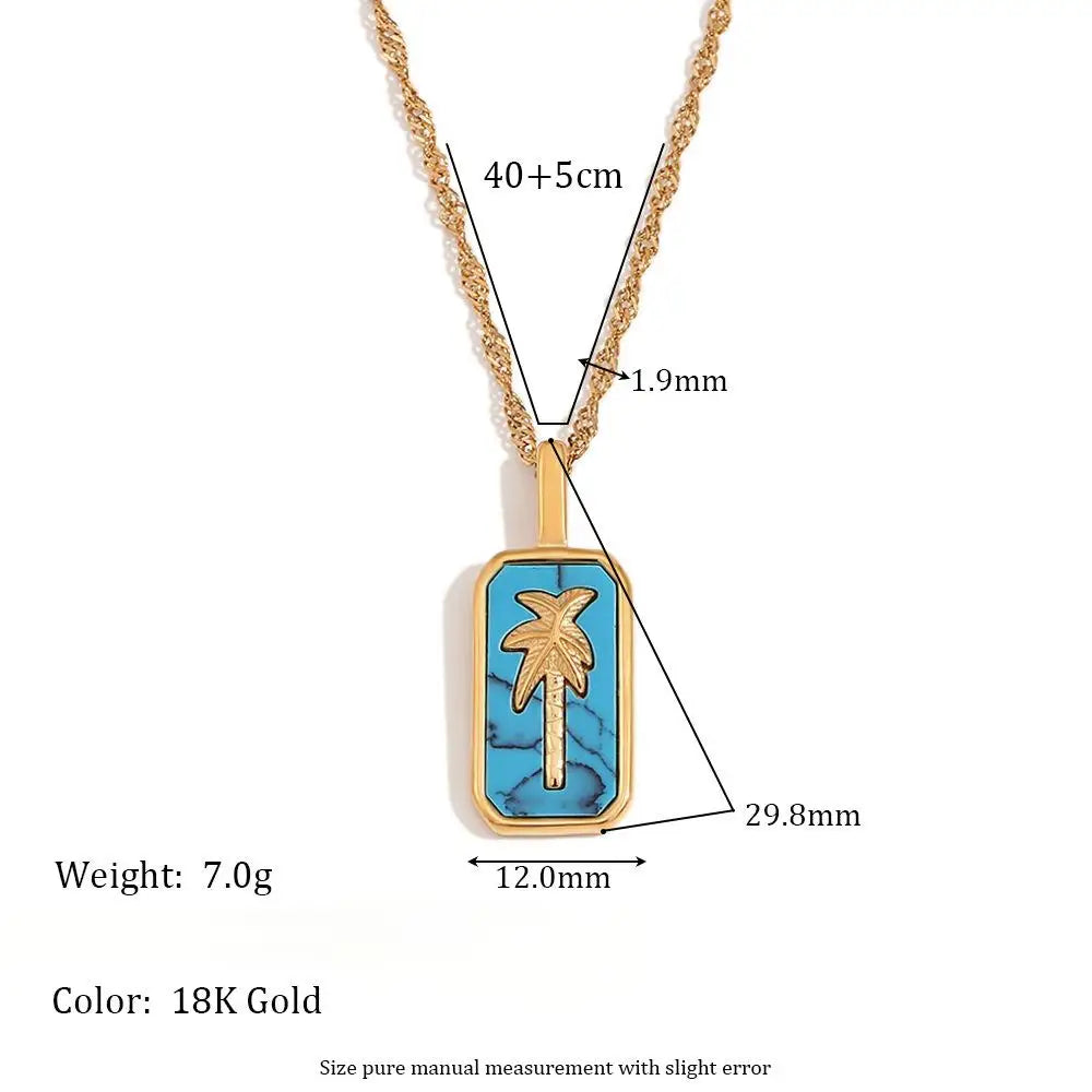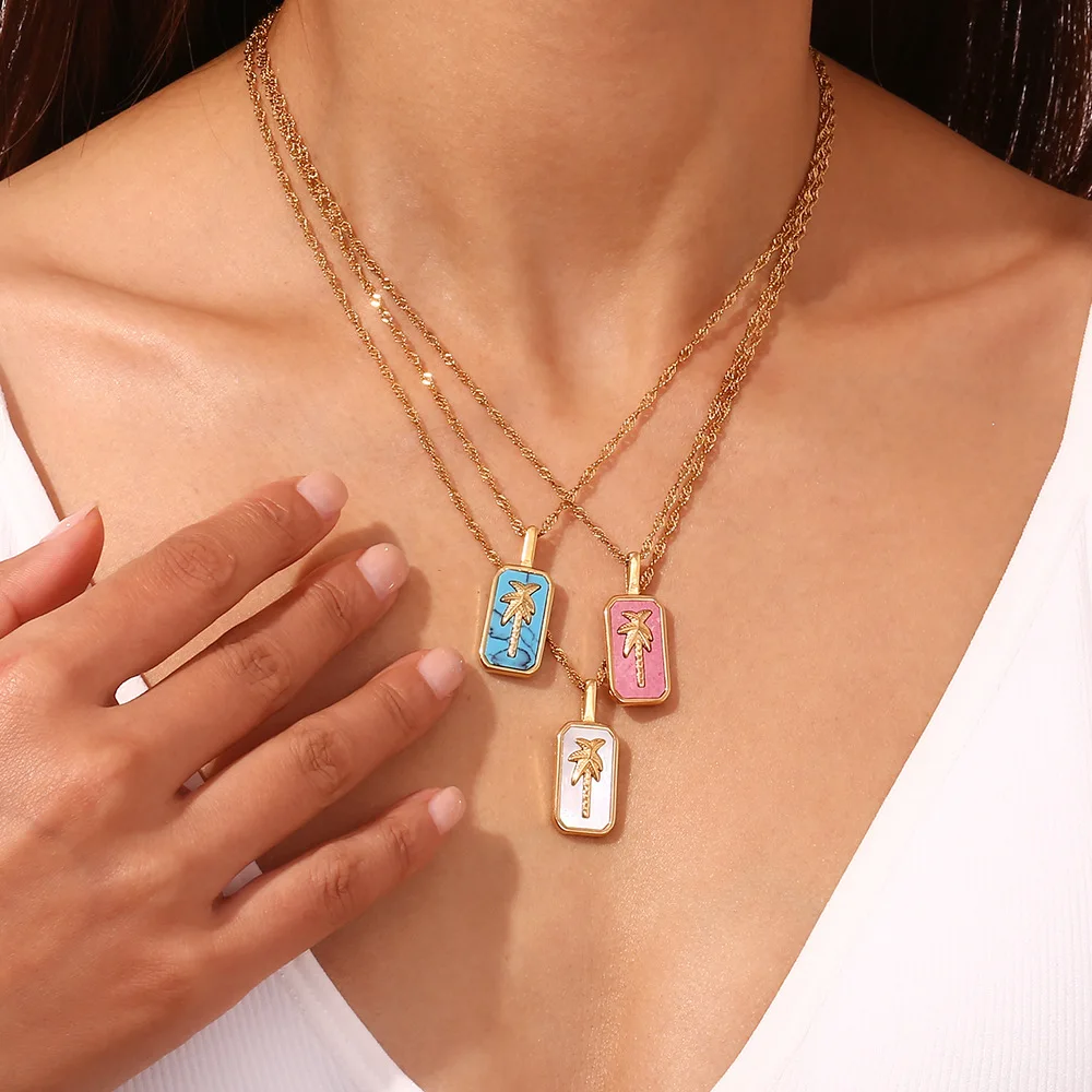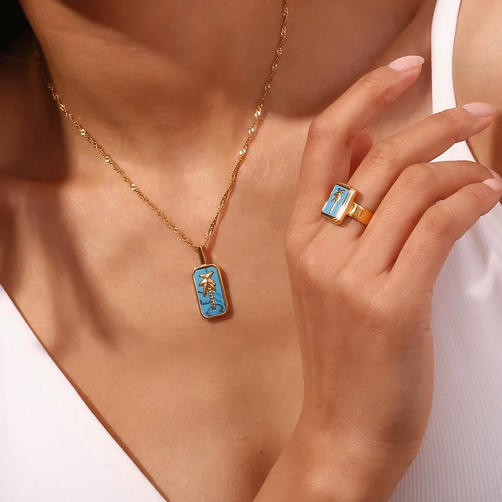Wholesale Stainless Steel Gold Charms Coconut Palm Tree Pendant Necklace and Ring Fashion Jewelry Sets for Women