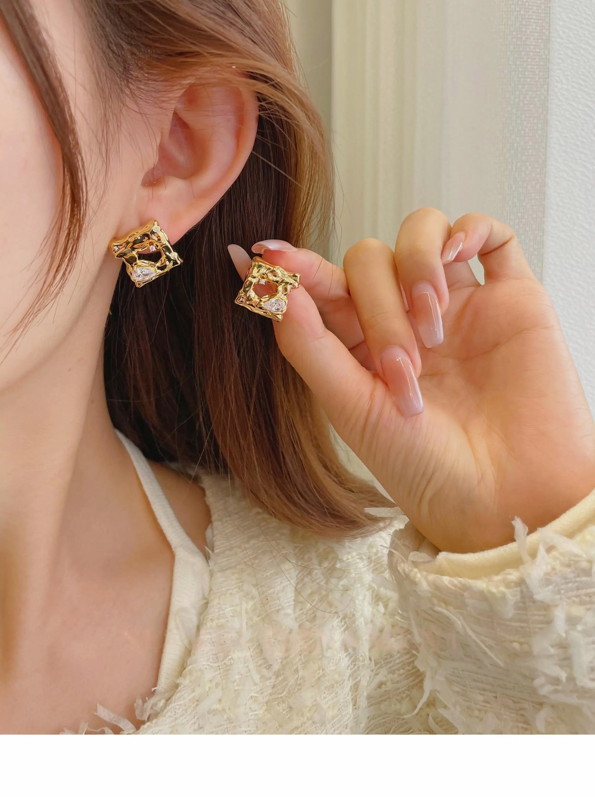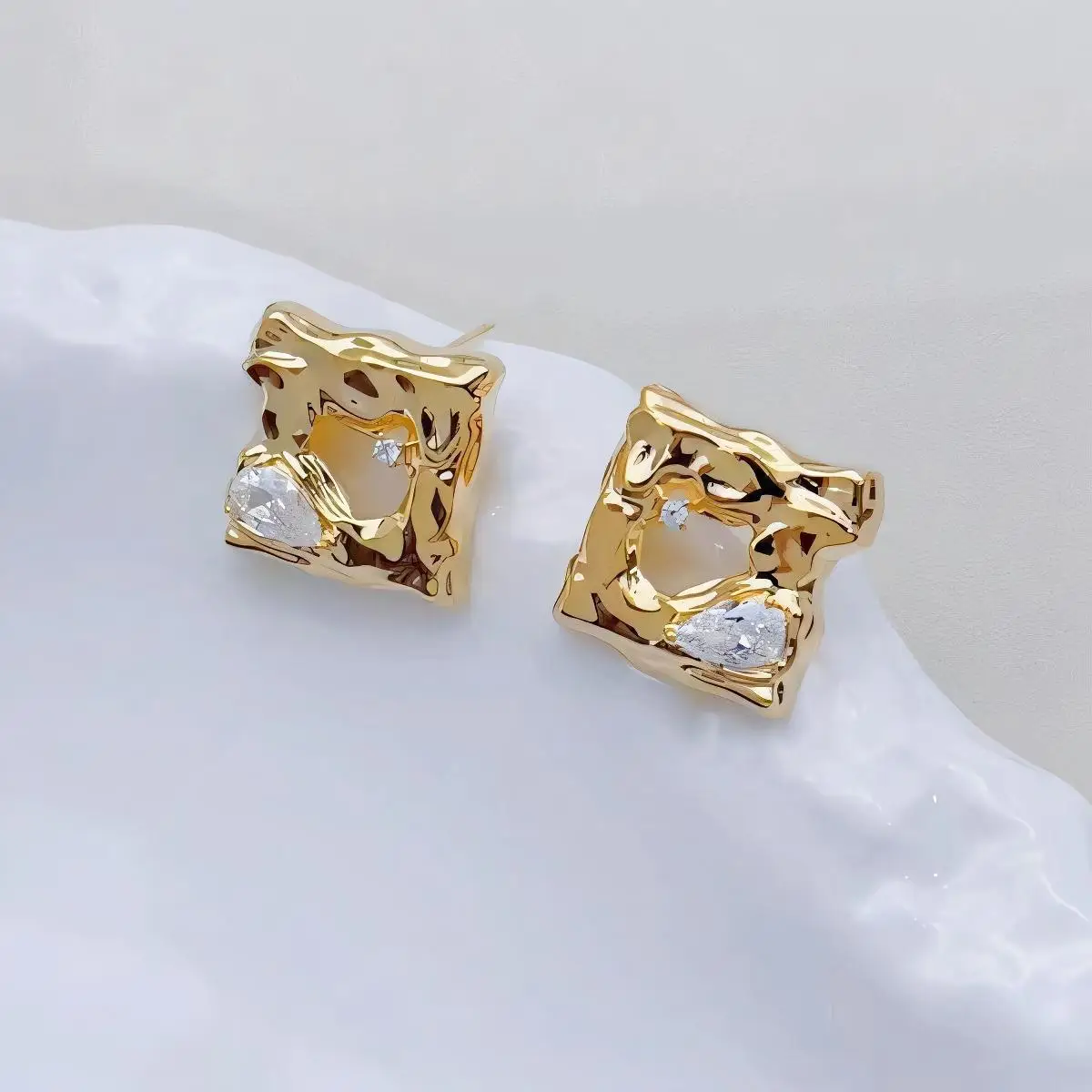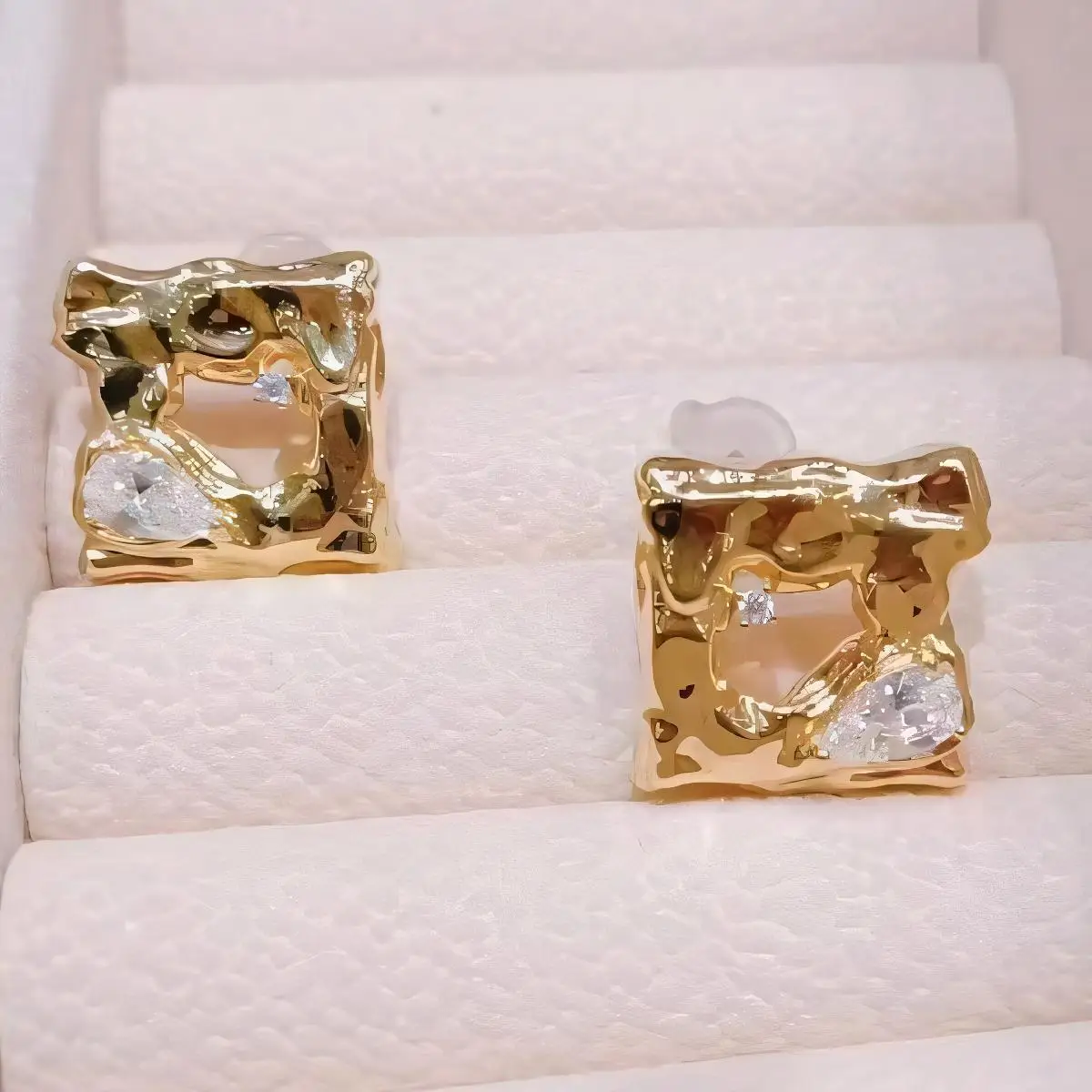 High Quality Geometric Large Square Gold Earrings Hollow Waterdrop Zirconia Earrings for Women