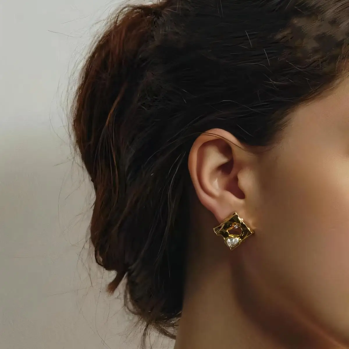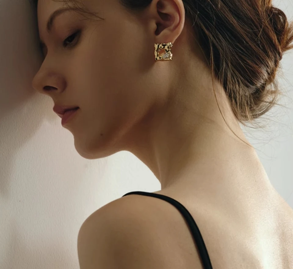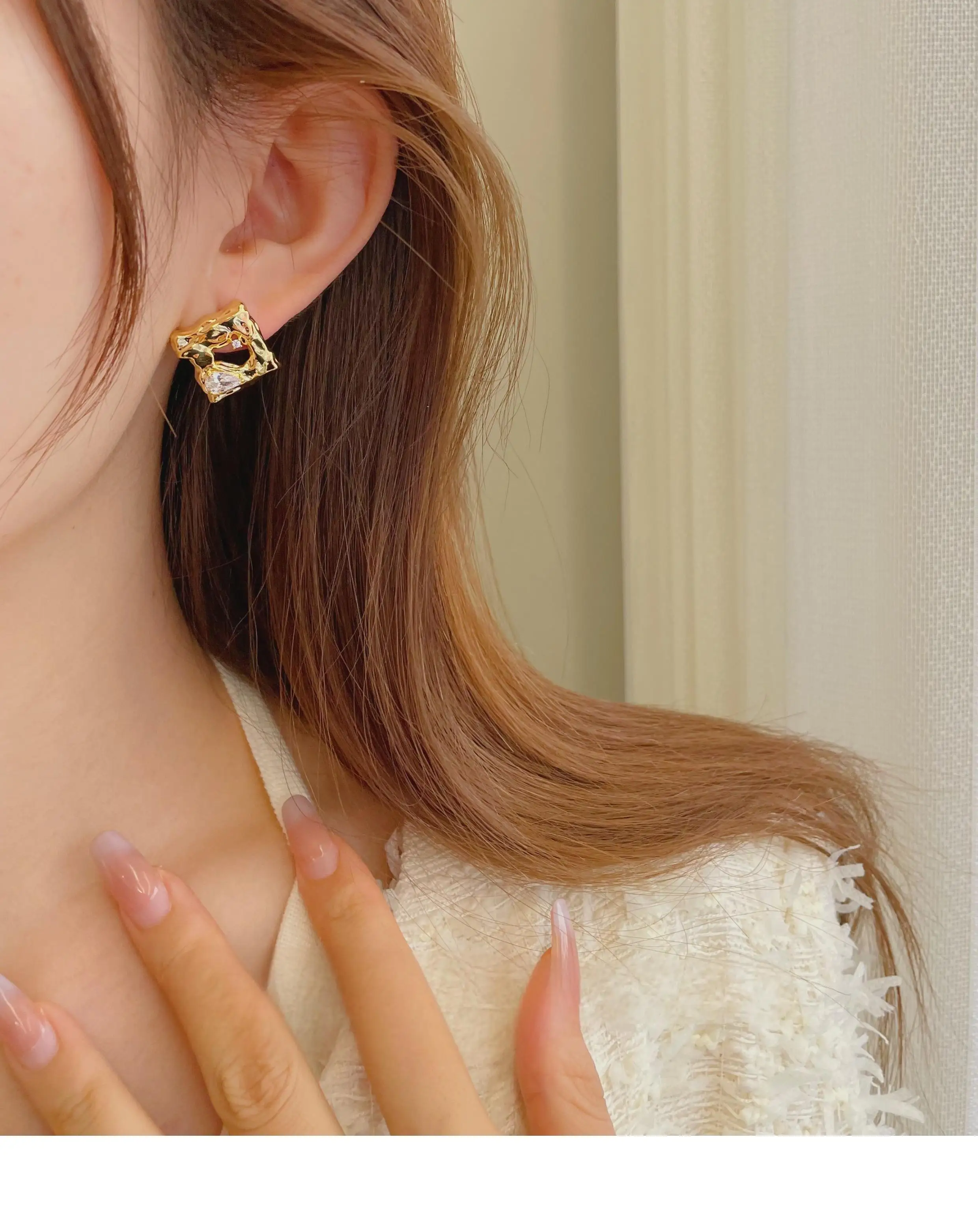 High Quality Geometric Large Square Gold Earrings Hollow Waterdrop Zirconia Earrings for Women