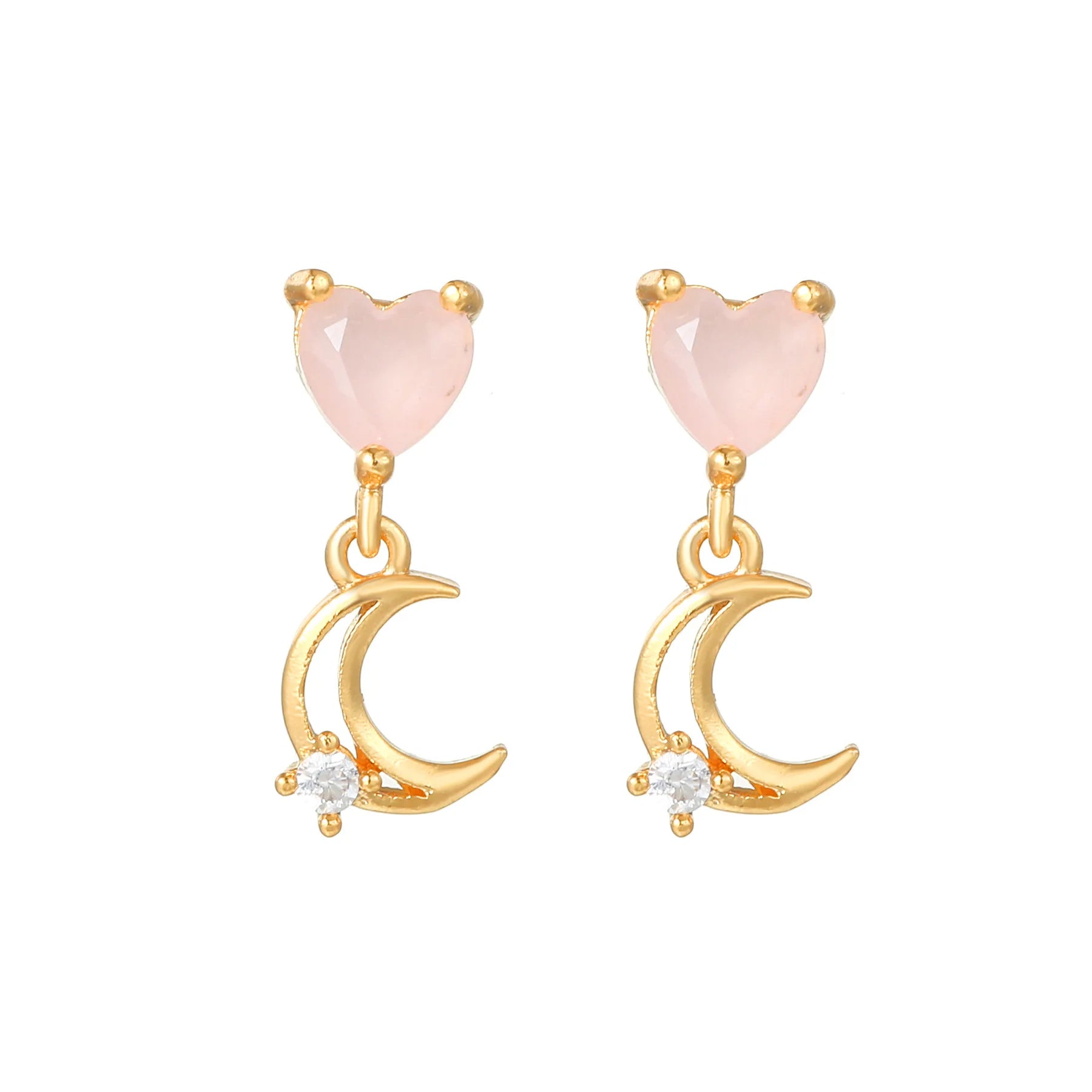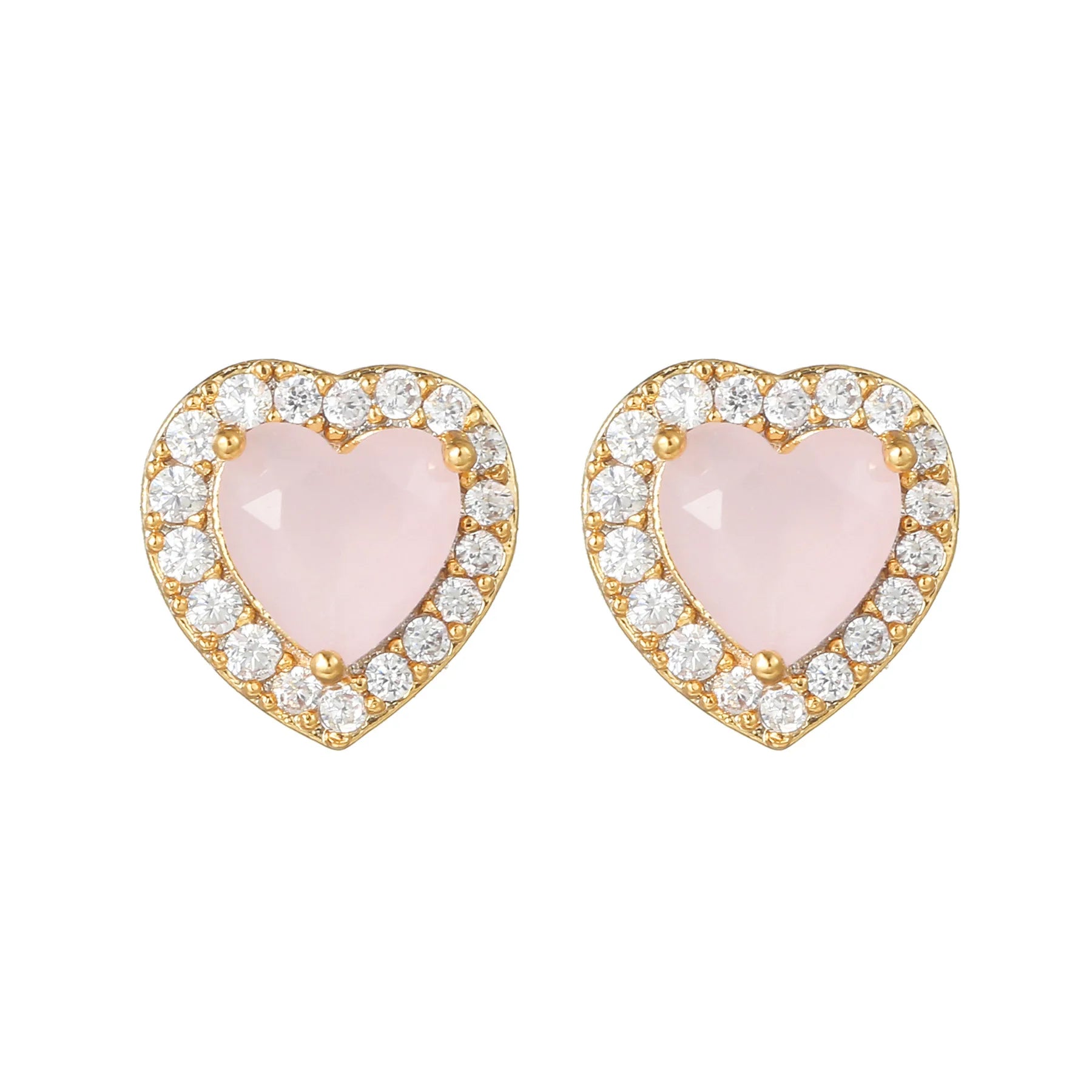 Minimalist 18K Gold Plated Fashion Stud Earrings Cute 925 Sterling Silver Needle Pink Heart Earrings for Women