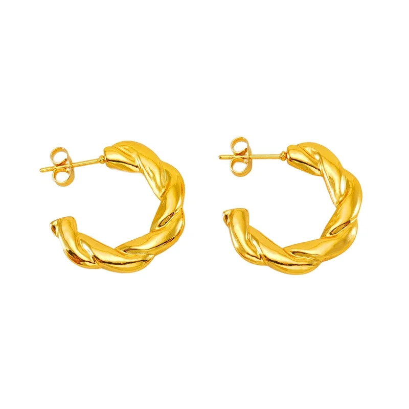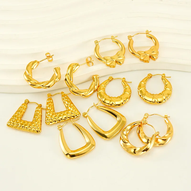 Vermeil Butterfly Hoop Earrings Trapezoid Twist Stainless Steel Design Lightweight Hypoallergenic Jewelry for Women