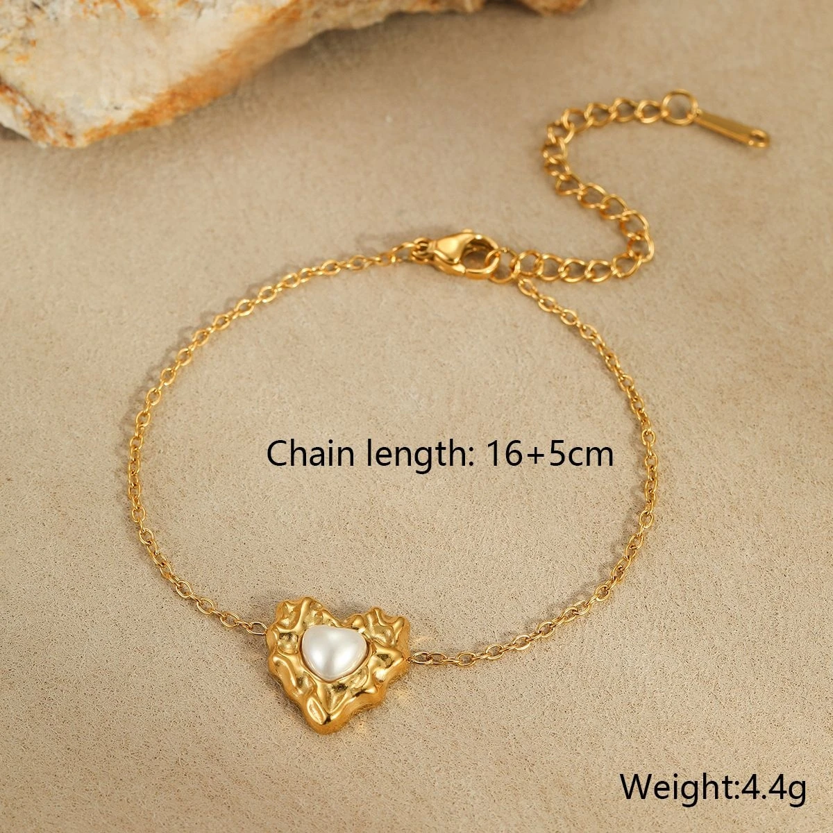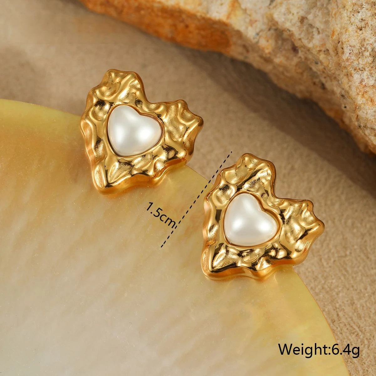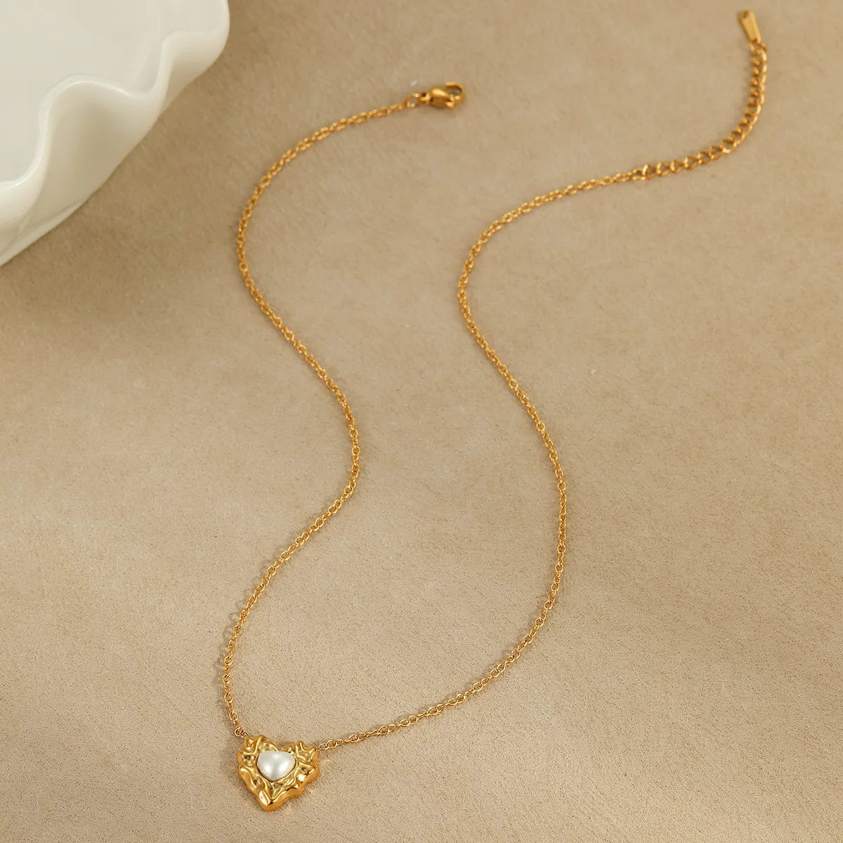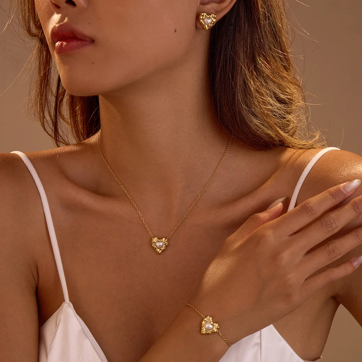 Womens 18k Gold PVD Pearl Jewelry Set Irregular Heart Necklace Bracelet Stud Earrings 3 Piece Stainless Steel Jewelry Set