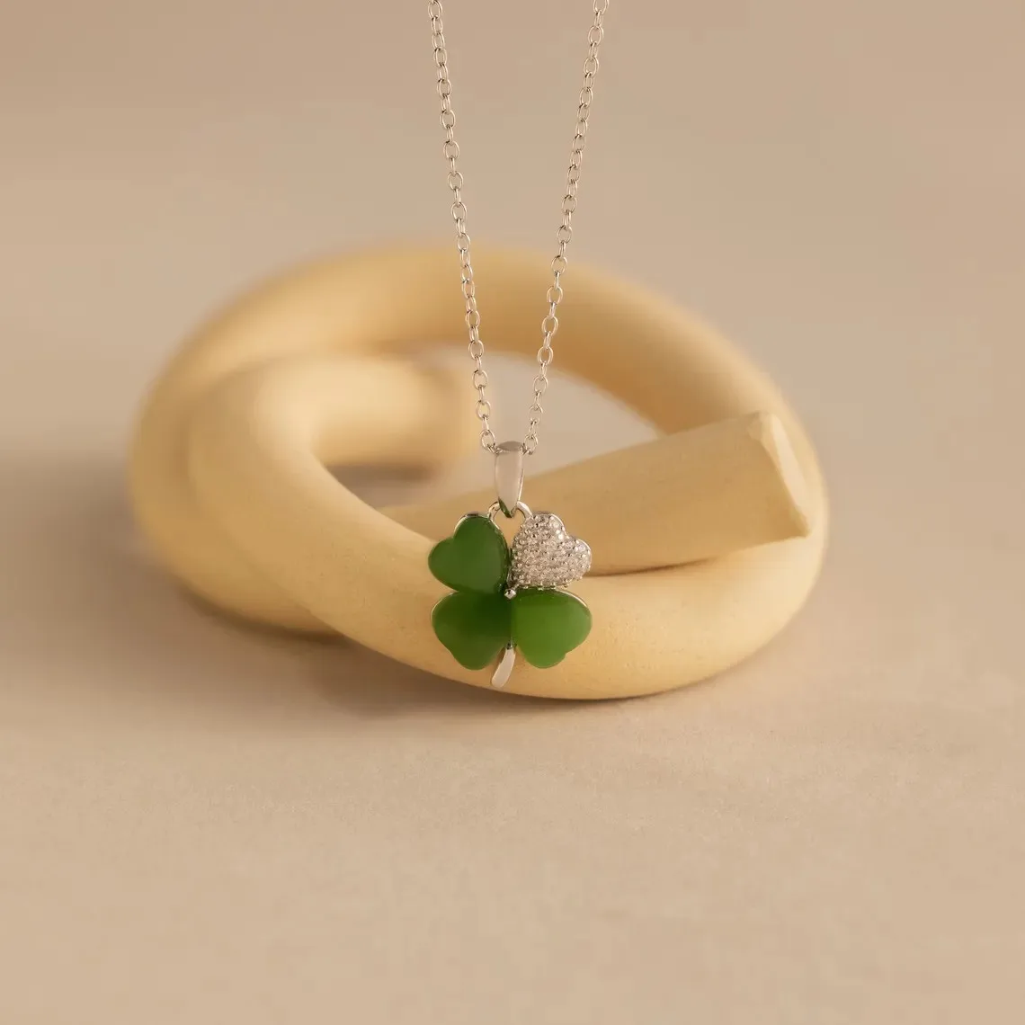Lucky Natural Stone Clover Necklace for Girls Minimalist 14k Gold Plated Crystal Pendant Friendship Jewelry Birthday Gift
