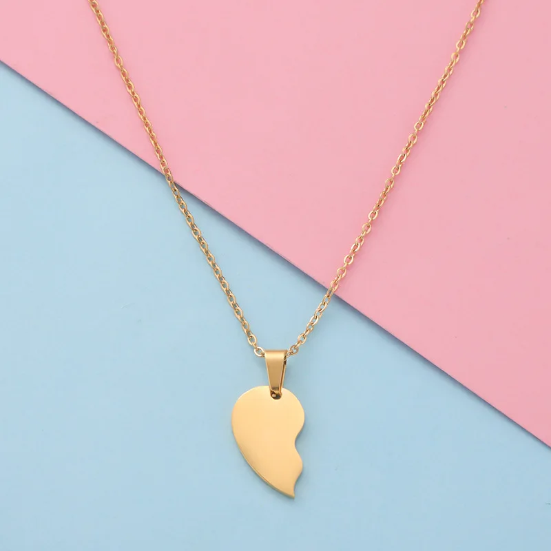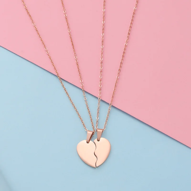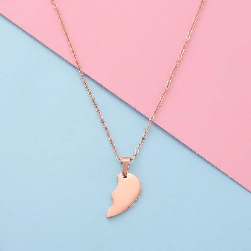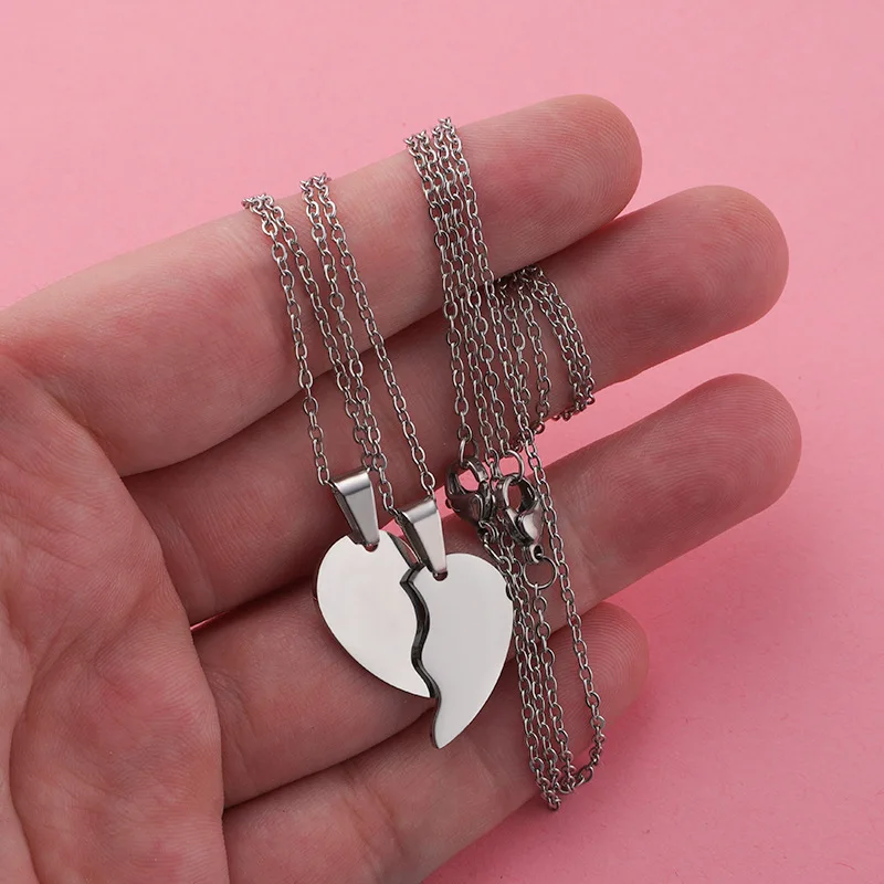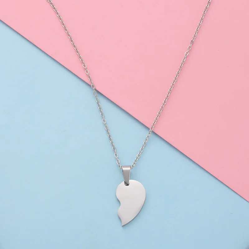 Couple's Half Heart Necklace in Stainless Steel with Fashionable Puzzle Design As a Preferred Valentine's Day Gift