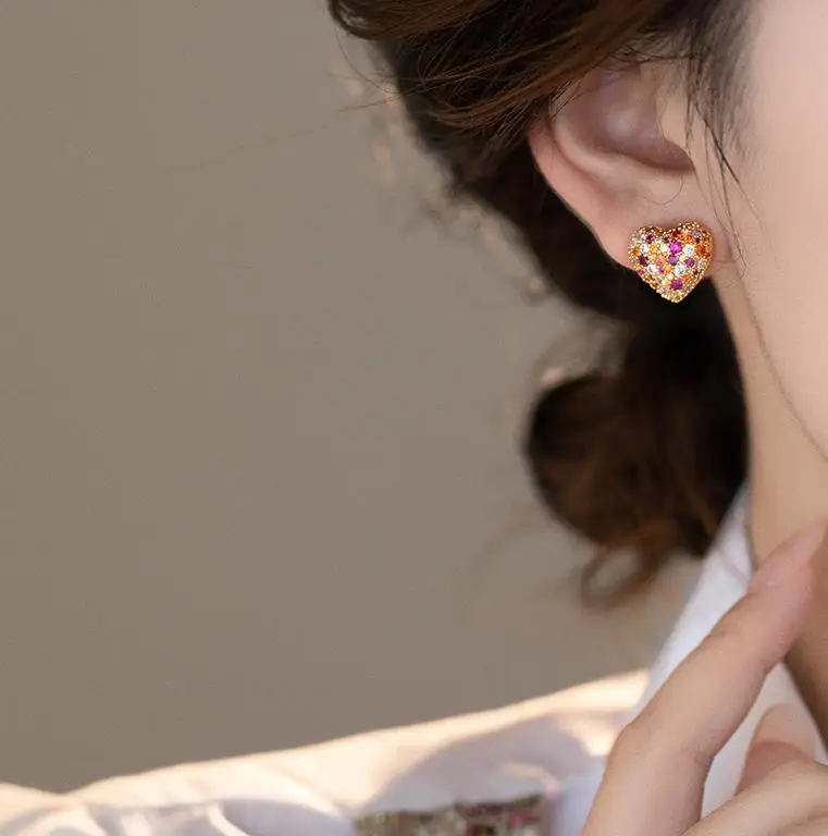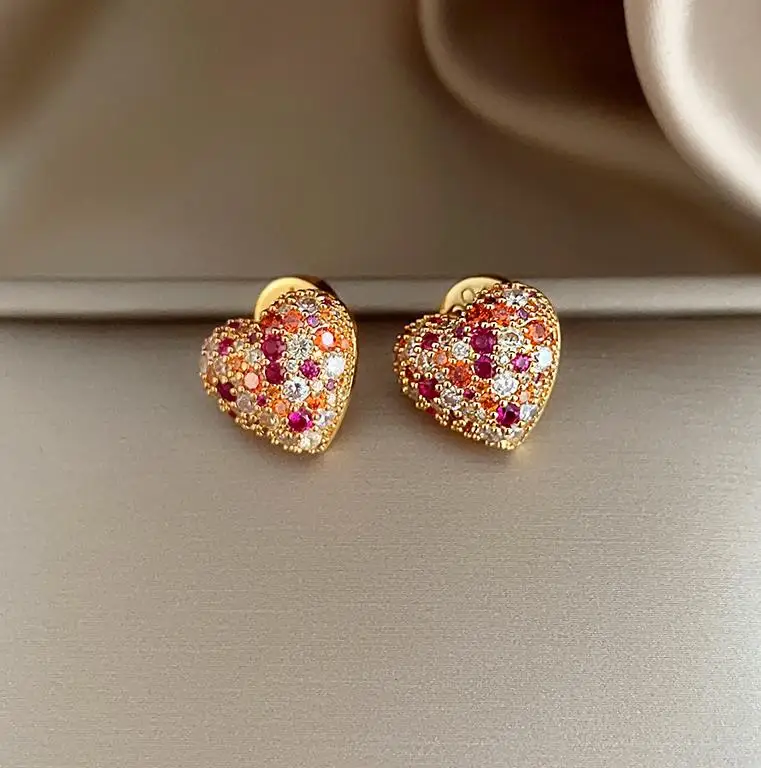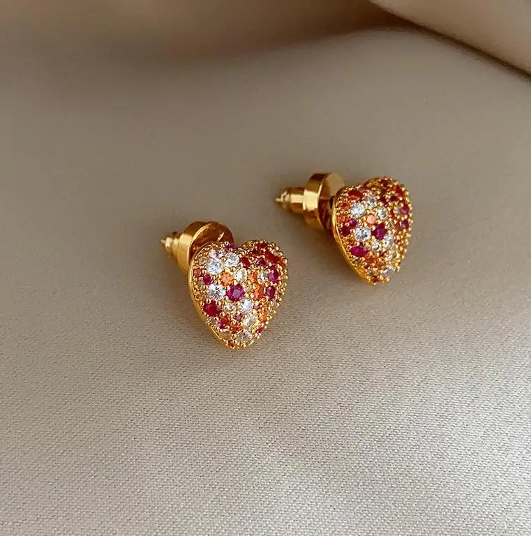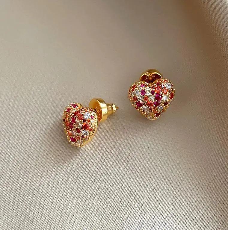 Elegant 18K Gold Plated Heart Stud Earrings With Cubic Zirconia for Women and Girls
