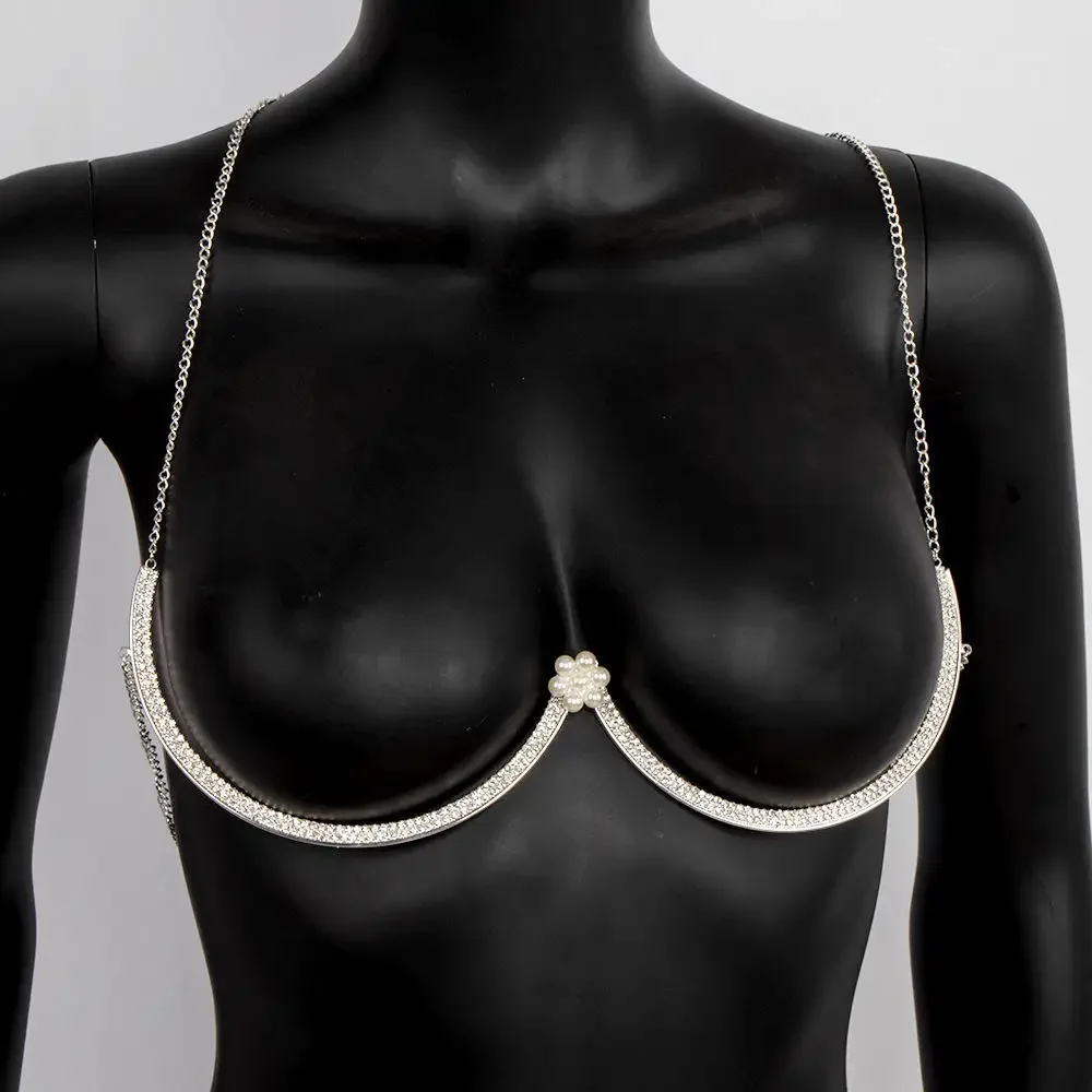 Hot Selling Flower Chest Chain Jewelry Women's Bikini Rhinestone Body Chain Fashion Body Jewelry Lingerie