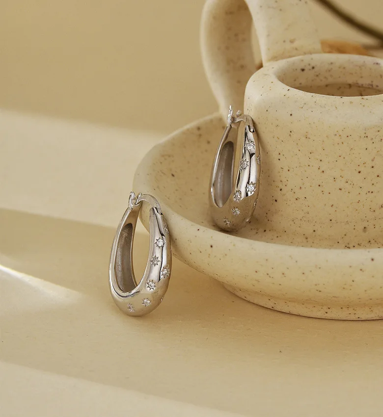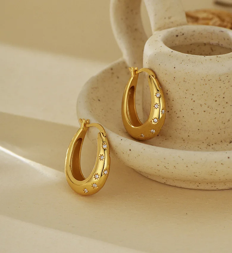 Fashion Earrings 20235 S925 Pure Silver Zircon Earrings 18K Gold Plated Star Hoop Earrings for Women Gift
