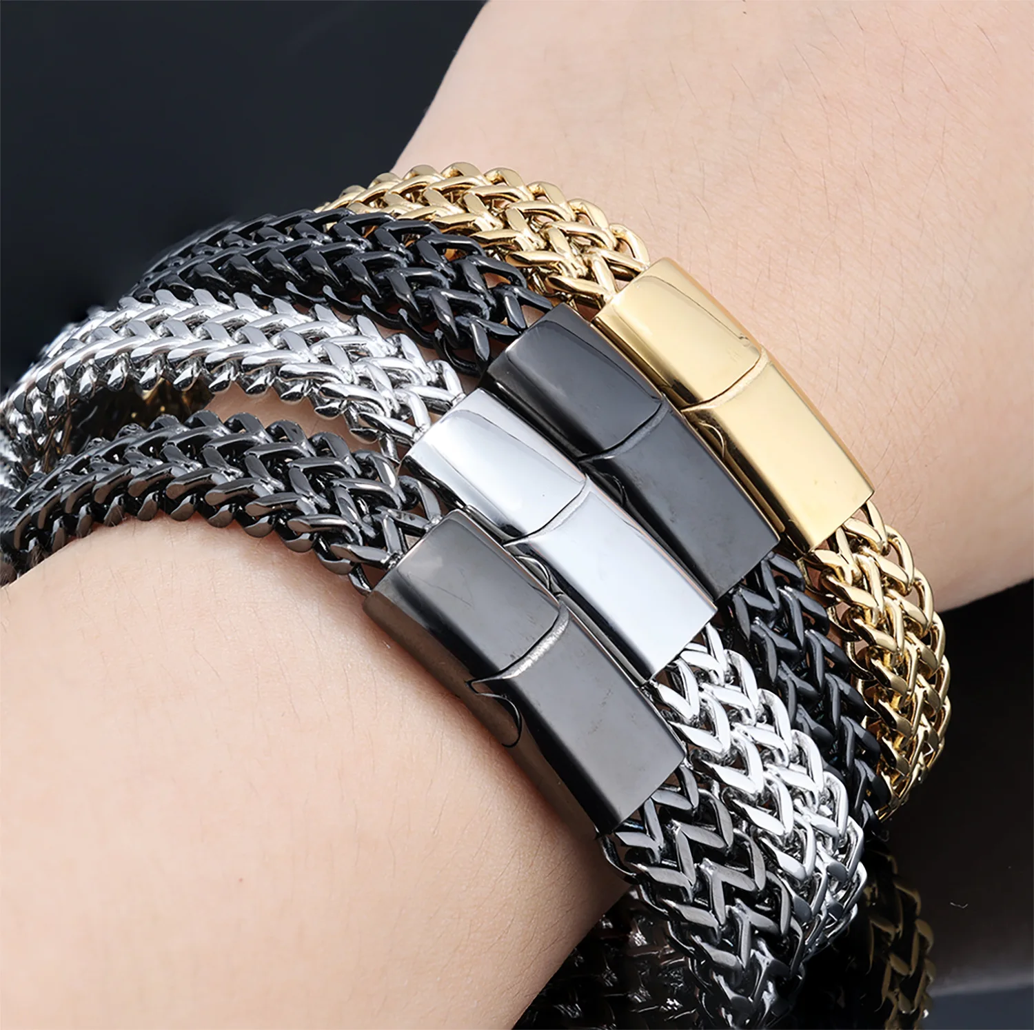 2025 New Hiphop Stainless Steel Double Sided 8x4mm Scale Chain Bracelet for Men Women Punk Unisex Export Wholesale